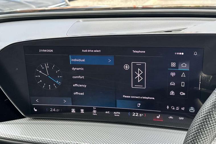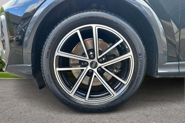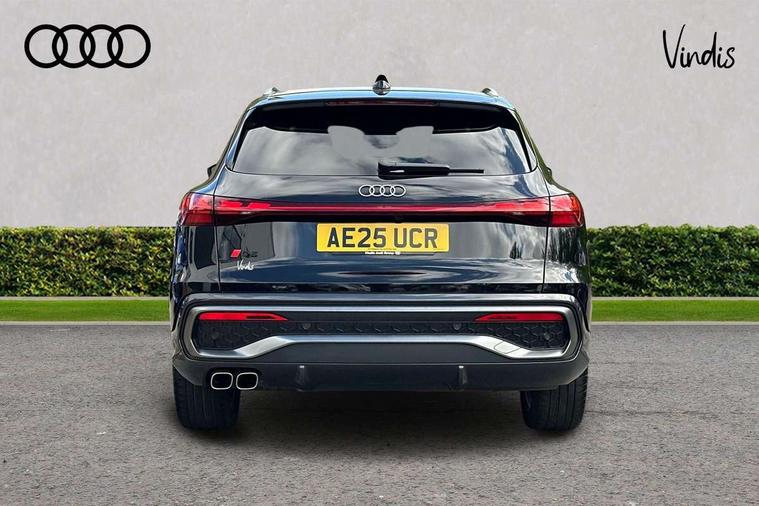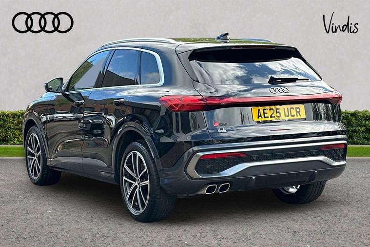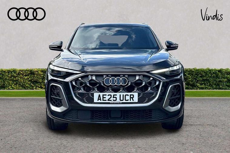 Adaptive cruise assist plus with steering intervention, Advanced driver attention alert, Audi application store, Audi connect emergency call and service, Audi digital key, Audi drive select, Audi smartphone interface, Audi virtual cockpit plus with 11.9" OLED colour display, Camera based traffic sign recognition, Fatigue monitor, Front cross traffic intersection assist, Garage door opener, Lane change assistant with exit warning system, rear cross traffic alert and rear turn assist, Lane departure warning with emergency assist, MMI 10.9" front passenger touch display, MMI navigation plus with high resolution 14.5" OLED touchscreen colour display, Park assist plus, Parking system plus with 360 display, PAS, Reversing camera, Swerve assist and turn assist, Top view camera, Traffic sign based speed limiter, Adaptive air suspension, 2 USB-C ports in both the front and rear, DAB Digital radio, Smartphone compartment with wireless charging, Acoustic glass for front door windows, Active digital light signatures - Six additional combinations of active daytime running light signature, Aluminium roof rails, Auto dimming rear view mirror, Body coloured door mirrors, Coming/leaving home lighting function, Digital OLED tail lights including communication light, Electrically adjustable heated and folding + automatically dimming exterior mirrors, Front and rear electric windows, Front door sill trims with aluminium inlays, illuminated with 'S' logo, Headlight cleaning system, Heated rear window, High beam assist, High gloss window surrounds, Inlay and front air inlets in matt anthracite chrome, Logo projection light in exterior mirrors, Matrix LED headlights, Privacy glass, Projection light for rear window, Radiator grille in phantom black, Rear and side windows with heat insulating glass, Rear honeycombe grille in matt black with inlay in matt anthracite chrome, Rear side wing doors, Rear wash/wipe, S Line badge on the front wings, S line bumpers in contrasting Volcano grey metallic paint finish, Towbar preparation, Windscreen with acoustic glazing, 3 rear head restraints, 3 seat bench in 2nd row, 3 spoke leather steering wheel with multi-function buttons with touch control, flattened on top and bottom, with S badging and contrast stitching, 4 way electric lumbar support for driver and front passenger, 40:20:40 split folding rear seat bench with centre armrest and cup holders, Comfort centre armrest, Deluxe 3 zone electronic climate control, Electric steering wheel adjustment, Electrically adjustable front seats with memory function for driver's side, Front and rear floor mats, Front sport seats with integrated head reastrains, Headlining in black cloth, Heated front seats, Heated outer rear seats, Heated steering wheel, i-Size child seat mounting on the front passenger side and i-Size and top tether on the outer rear seats, Interior trim in aluminium look, Luggage compartment lid, electrically opening and closing, Single front passenger seat, Softwrap in leatherette, Stainless steel pedals and footrest, Steering wheel grips in perforated leather and shift paddles, Twin leather upholstery, Ambient lighting package plus - Q5, Sound and Vision pack - Q5, Storage and luggage compartment pack - Q5, Vanadium pack - Q5, 3x3 point rear seatbelts, ABS, Acoustic vehicle alerting system, Convenience key with safelock, Driver and front passenger airbag with passenger airbag deactivation, Electric child safety locks, First aid kit with warning triangle and high visibility vests, Front emergency brake assist, Front side airbags with head airbag system and front interaction airbag, Hill hold assist, Occupant detection in rear seat area, Proactive passenger protection system for front, sides and rear, Side airbags in front and rear with head airbag system and front interaction airbag, Tyre pressure loss indicator, Anti theft alarm, Anti-theft wheel bolts, Remote control key with SAFELOCK and keyless go, Anthracite matt brushed aluminium inlays with linear embossing, Black dashboard with contrast stitching, Steel grey seat stitching, Upper and lower interior elements in artificial leather, 20" 5 twin spoke black metallic, gloss turned finish Audi Sport alloy wheels, Tyre repair kit,