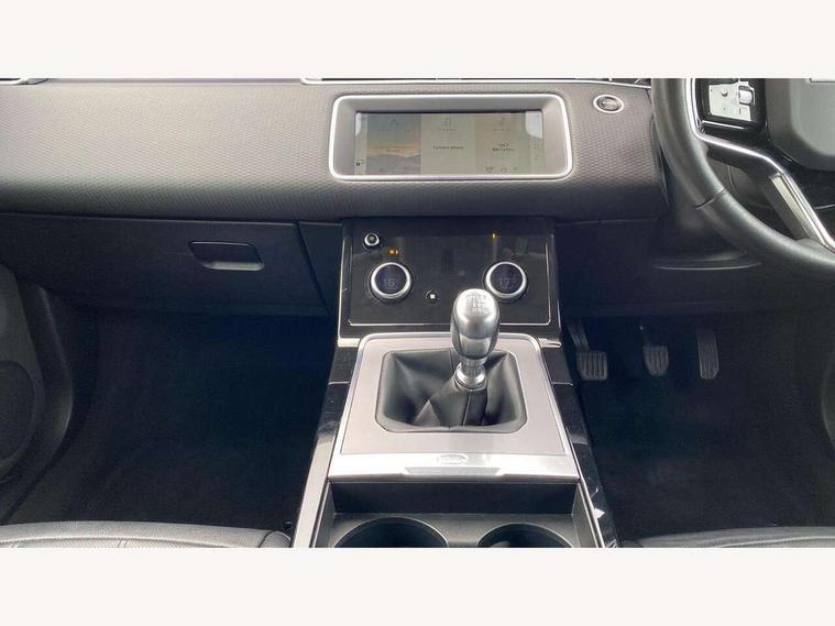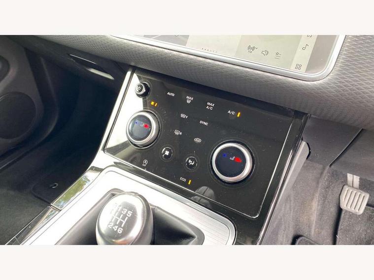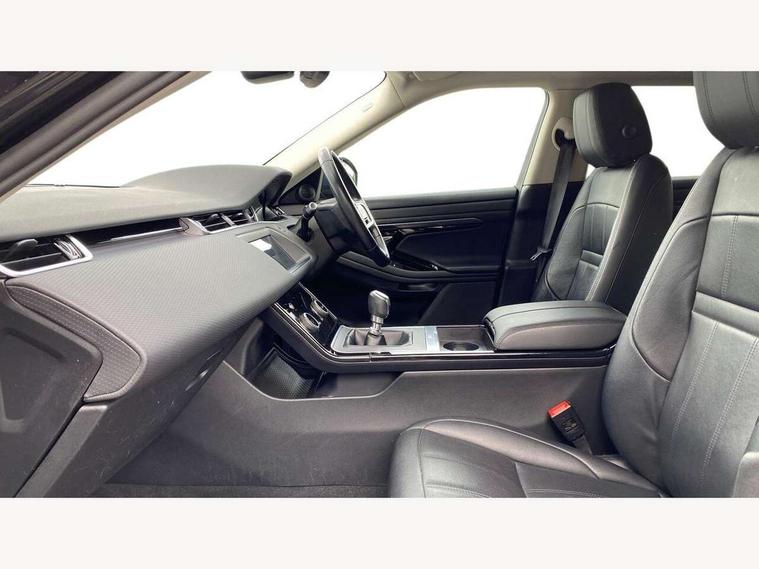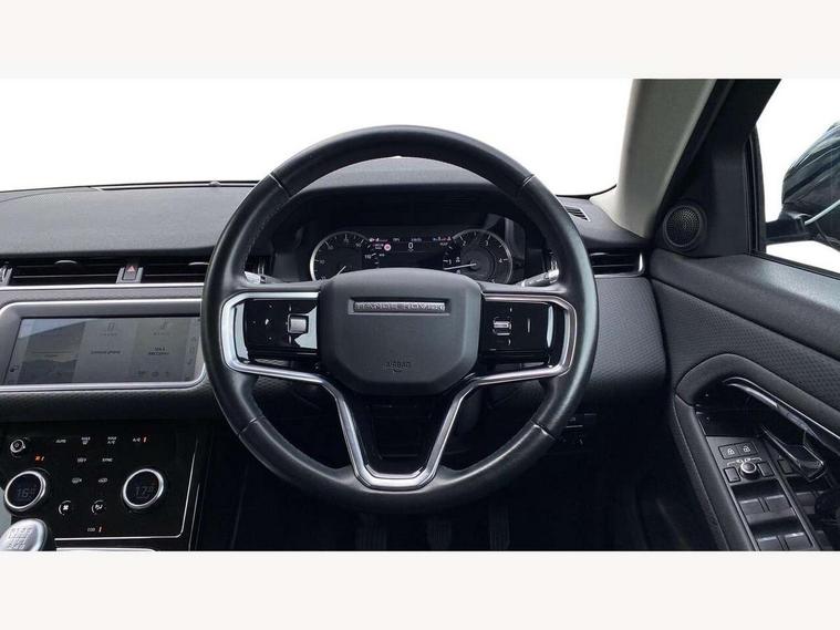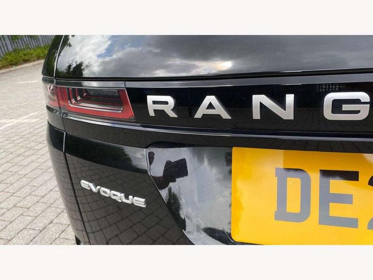 10" touch screen pro, 3D 360 degree surround camera, Android Auto, Apple car play, Bluetooth connectivity, Brake pad wear indicator warning light, Cruise control + speed limiter, Driver condition monitor, Electronic power assisted steering (EPAS), Front and rear parking aid, InControl remote, Land Rover InControl apps, Lane keep assist, Pivi pro connected includes upgraded infotainment, connected navigation pro, Nuance speech licence, Push button starter, Traffic sign recognition with adaptive speed limiter, Voice control system, Wade Sensing, Passive suspension, Digital Audio Broadcast radio-DAB, Steering wheel mounted controls, Electric windows with one touch open/close and anti trap, Evoque badge, Flush deployable exterior door handles, Heated rear window with timer, Heated washer jets, Heated windscreen, Power fold, auto-dimming, heated door mirrors with approach lights and auto dimming driver side, Rain sensing windscreen wipers, Rear fog lights, Tailgate spoiler, 40:20:40 split folding rear seats with centre headrest and armrest, Ambient interior lighting, Isofix system on outer rear seats, Overhead lighting console, Overhead stowage for sunglasses, Passive front head restraints, Rear air vents, Rear centre headrest, Sunvisors with illuminated vanity mirrors, Twin sliding front centre armrest, 3 rear 3 point seatbelts, Anti-lock braking system (ABS), Customer configurable autolock, DSC - Dynamic Stability Control, Electronic brake force distribution, Electronic parking brake, Electronic traction control, Emergency braking, Front and rear seatbelt reminder, Hill launch assist, Power operated child locks, Roll stability control, Six airbags - Driver and passenger airbags/driver knee airbag/front side airbag and curtain airbags, Tyre pressure monitoring system, Alarm, Immobiliser, Intrusion sensor, Locking wheel nuts,