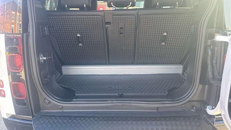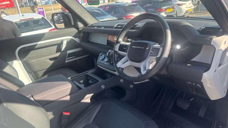 360 degree parking aid, 3D Surround Camera with 360 View, 180 Rear View, Front Traffic Detection, Forward Vehicle Guidance, Tow Hitch Assist and clear sight Ground View, Android Auto, Apple CarPlay, Assisted tailgate with soft close, Blind spot assist, Bluetooth system, Brake pad wear indicator, Clear exit monitor, Connected navigation pro, Driver condition monitor, Electric power assisted steering (EPAS), Lane keep assist, Push button start, Rear traffic monitor, Traffic sign recognition with adaptive speed limiter, Trip computer, Wade Sensing, 8 speed automatic transmission, All wheel drive system, Twin speed transfer box, DAB Radio (Digital Audio Broadcasting), Meridian 400w sound audio system with 11 speakers and subwoofer, Pivi pro connected, Automatic headlight levelling, Automatic headlights, Centre high mounted stop light, Electric heated/power fold door mirrors with approach lights and auto dimming driver side, Electric windows with one touch open/close and anti-trap, Follow me home lighting, Front fog lights, Heated rear window with timer, Heated windscreen, LED tail lights, Panoramic rear side glass, Privacy glass, Puddle lights, Rain sensing windscreen wipers, Rear fog lights, Rear wiper, Side hinged tailgate, Trailer stability assist, X-Dynamic badge, 12V power socket in loadspace, 3 seat bench in 2nd row, Alpine lights, Durable rubber cabin flooring, Durable rubber loadspace flooring, Footwell lights, Loadspace cover, Loadspace Hook, Multifunction steering wheel, Overhead stowage for sunglasses, Premium cabin lighting, Rear headrests, Rear ISOFIX, Rear reading lights, Single front passenger seat, Standard seat configuration, Storage glovebox, Sunvisors with illuminated vanity mirrors, Online pack with data plan - Defender, 5 x 3 point seatbelts, ABS, Brake hold function, CBC - (Cornering brake control), Customer configurable autolock, DSC - Dynamic Stability Control, EBD - Electronic brakeforce distribution, Electric parking brake (EPB), Emergency brake assist, Emergency braking, ESP + traction control, Front airbags with passenger seat occupant detector, HDC - Hill descent control, Hill launch assist, Low traction launch, Remote for (e-Call, Optimised assistance call, InControl app, Climate, beep and flash and door), RSC - Roll stability control, Seat belt reminder, TPMS (Tyre pressure monitoring system), Alarm, Immobiliser, Intrusion sensor, Keyless entry, Locking wheel nuts,