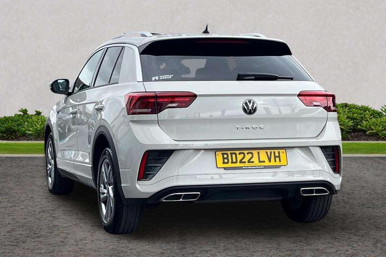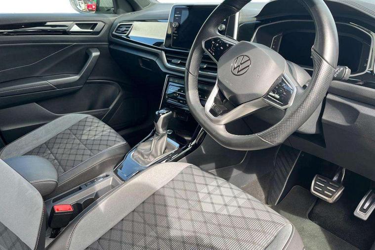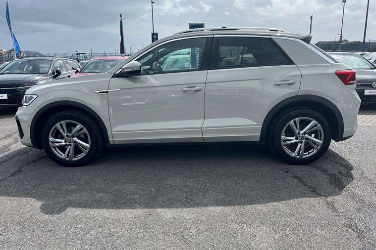 10.25" Digital cockpit pro, Bluetooth mobile phone interface, Driver alert system with fatigue detection, Driver tips and journey analysis, Emergency call service, Lane keeping system Lane Assist, Modified key software - reduce switch off time for key status change to Long no motion, Online services, Park assist including front and rear parking sensors, Service interval indicator, Tailgate/trunk lid release from outside, Think blue trainer driver tips and journey analysis, Warning sound and light for front seatbelts unfastened, Wireless app connect, Battery regeneration during braking, Start/stop function with battery regeneration, Diversity antenna for FM reception, Front and rear 6 speakers, Music playback - MP3, WMA and AAC files, Premium USB cable in choice of either Apple or Android smartphone compatibility, SD card slot, Simultaneous pairing of 2 compatible mobile devices, Title and cover art display, We Connect and We Connect Plus functionality, 3rd brake light, Auto dimming interior rear view mirror, Automatic hazard lights activation under emergency braking, Automatic headlight control with LED separate daytime running lights with coming/leaving home function, Extended roof spoiler, Exterior mirrors aspherical on driver side, convex on front passenger side, External USB type C socket and charging sockets, Front windscreen wiper with intermittent wipe and 4 position delay, Heated rear window, LED Plus headlamps, LED rear combination lamps, LED rear number plate lights, LED tail lamp rear comination lamps, Power windows with comfort operation and circuit breaker, R-Line design body coloured bumpers, Rain sensor, Rear exhaust tailpipe, Rear fog light on one side and reversing lights on both sides, Rear side wing doors, Rear wash/wipe with intermittent wipe setting, Remote electrically foldable door mirrors, puddle lights and reverse activated passenger's door mirror, 12V power socket in centre console, 3 rear head restraints, 3 seat bench in 2nd row, 4 load lashing points in luggage compartment, Air care climatronic air conditoning system with active combination filter and 2-zone temperature control, Black roof lining, Chrome plated radiator grille inserts, air vent surrounds and light switch surrounds, Door and side trim panel with leatherette insert, Drawer under drivers seat, Front + rear carpet mats, Front centre armrest, Front cupholders x 2, Front footwell illumination, Front reading light, Front scuff plates with R logo, Instrument lighting, white adjustable panel illumination, Interior ambient lighting and surround lighting, Interior light delay, Isofix child seat preparation, Leather gearshift handle, Load-through provision with cup holder when folded down ('Unsplit rear seat bench, split folding backrest, with centre armrest), Luggage compartment lighting, Single front passenger seat, Stainless steel pedals, Storage compartment in left and right luggage area, Storage compartment in rear doors, Storage compartments in driver and front passenger doors, Sunvisors with illuminated vanity mirrors, Variable boot floor, height adjustable and removable, Driver assistance pack without proactive passenger protection - T-Roc, 3 point height adj front seatbelts + pretensioners, 3 point seatbelts in outer rear with ECE label, ABS, Child locks on rear doors, Driver and front passenger airbag with front passenger airbag deactivation, Driver and front passenger safety-optimised head restraints, Drivers seatbelt reminder, Electronic parking brake, Electronic Stability Control (ESC) inc EDL (Electronic Differential Lock) and ASR (Traction Control), Front and rear passengers curtain airbag system including front side airbags, Front assist with city emergency braking and pedestrian monitoring, Front seat side impact airbags, Hill start assist, Predictive pedestrian protection, Rear disc brakes, Single tone horn, Tyre pressure loss indicator, Volkswagen roadside assistance, Alarm with interior protection, Anti-theft alarm system with interior monitoring, backup horn, and towing protection, Remote central locking with SAFELOCK, radio remote control with 2 remote control folding keys, Trims for alloy wheels,