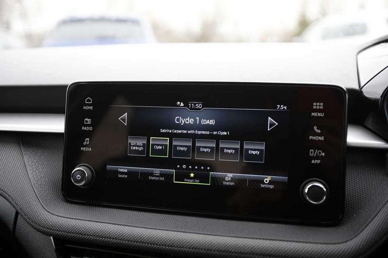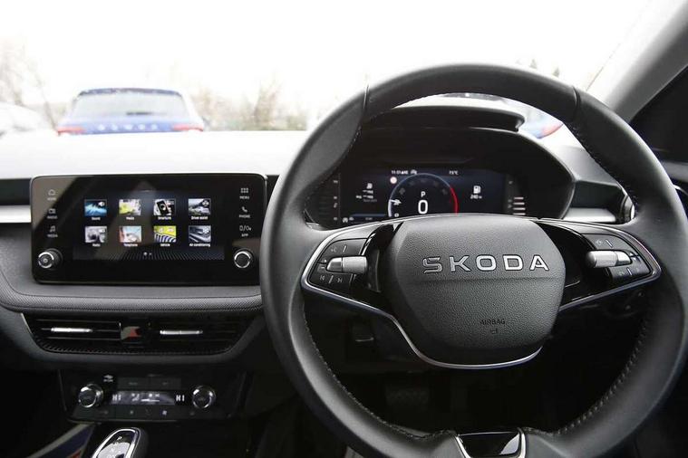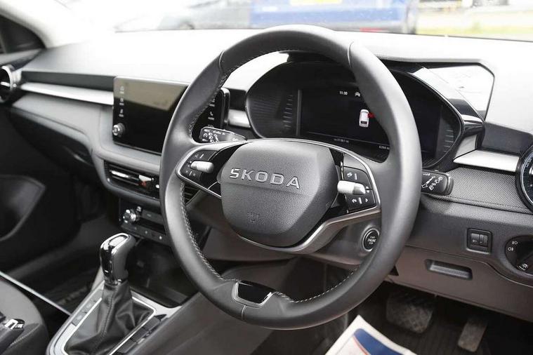 Advanced driver attention and drowsiness monitor, Bluetooth connection, Electromechanical power steering, Exterior temperature gauge, Service interval indicator, Traffic sign recognition, Virtual cockpit with 10.25" colour display, Wireless SmartLink for Apple CarPlay and Android Auto, 6 Speakers (4 in front and 2 in rear), Auxiliary socket for external MP3 player, DAB digital radio reception, Auto dimming rear view mirror, Body coloured bumpers, Door mirror integrated indicators, Front and rear electric windows, Front window wiper intermittent control, Headlight range control - Automatic, Ice scraper in fuel cap, LED daytime running lights with coming and leaving home feature, LED rear lights, Privacy glass, Rear LED fog light, Rear side wing doors, Rear window wiper with washing nozzles, Roof mounted spoiler, SKODA tailgate lettering in chrome, Third brake light, Unique dark chrome design logo on alloy wheels, 2 reading lights in front and 2 reading lights in rear, 3 rear headrests, Backrest split and folding, Central console with removable cup holder and storage box, Chrome handbrake release button, Dual zone air conditioning with climatronic electronic control, Fabric upholstery, Front centre armrest, Gearshift knob/handle in leather, Grain satin black interior door handles, Hand brake lever handle in leather, Height adjustable front headrests, Height adjustable front seats, Height adjustable steering wheel, ISOFIX and TopTether anchorage points to the outer rear seats, ISOFIX and TopTether on the front passenger seat, Luggage compartment lighting, Manually adjustable lumbar support in front seats, Pollen filter, Rear seat bench unsplit, Single front passenger seat, Skoda lettering on steering wheel, Storm grey headlining, Sun visors with mirror and airbag label on passenger side, Textile floor mats, Ticket holder, Umbrella in drivers door, 3-point height adjustable front seats belts with pretensioner and force limiter, Automatic warning lights in case of crash, Driver and passengers airbag with switch off function, e-Call+, ESC including ABS, MSR, ASR, EDS, HBA and XDS, Front and rear seat belt warning, FRONT ASSIST (AEB City and AEB Inter Urban), Front side airbags, Head airbags, Hill hold control, One tone horn, Pedestrian protection, Three rear 3-points safety seat belts with pretensioner and force limiter including stop function for outer rear seat belts, Tyre pressure monitoring system, Anti-theft alarm system including immobiliser, interior monitoring, backup horn, and towing protection, Central locking with radio remote control, interior controls, SAFE function and 2 foldable keys, Black painted air vents, Grain satin black central console cover, Metallic grey upper decorative trim, Satin black door and side trim panel in front, Textile Kota grey lower decorative inserts, Anti-theft wheel bolts protection, Super-low rolling resistance tyres,