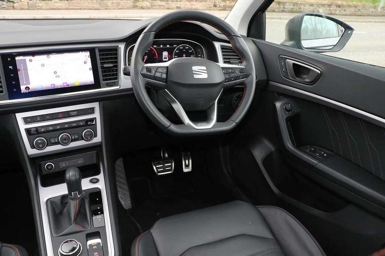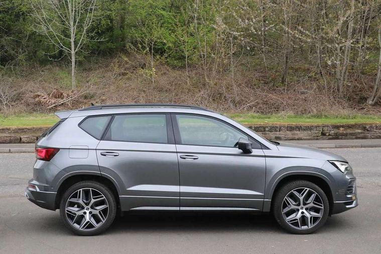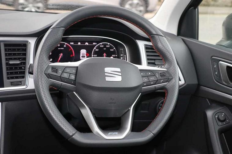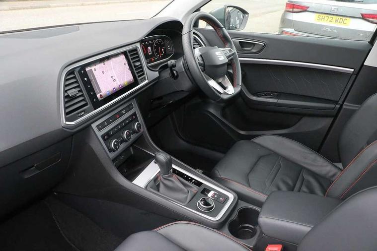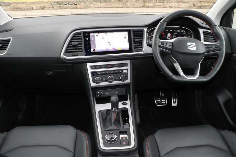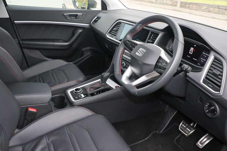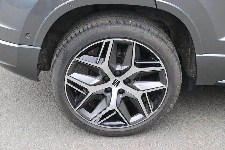 10" Digital cockpit, Cruise control system with speed limiter, E-call, Outside temperature gauge, Progressive power assisted steering, SEAT drive profile with driving experience button - Normal, Sport, Eco and Individual mode, gearshift, steering and throttle response, Self parking functionality (includes front and rear parking sensors), Start/stop system, Tailgate, Trip computer, wired and wireless full link smartphone integration, Wireless phone charger, Steering wheel mounted audio/phone controls, Black roof rails, Black side window trim, Body colour bumpers, Body coloured wheel arch surrounds, Chrome front grille frame, Dark tinted rear windows, Daytime running lights, Door mirrors with welcome light silhouette, Dynamic headlight range control with self adjusting whilst driving, Electric adjustable/heated/folding door mirrors, Front and rear electric windows, Full LED headlamps with lens and LED front fog lamps with cornering function, Illuminated aluminium front door sill, LED 3rd brake light, LED rear tail lights with dynamic indicators, Rear exhaust tailpipe, Rear fog lights, Rear side wing doors, Rear spoiler, Rear wash/wipe, Variable front intermittent wipers, 12v socket in front, 3 seat bench in 2nd row, 60/40 split folding rear seat, Aluminium pedals, Dual zone climate control, Electric adjustable driver seat with memory function, Front and rear head restraints, Front centre armrest, Front seat back storage pockets, Heated front seats, Height adjustable passenger seats with lumbar adjustment, ISOFIX points in outer rear seats with top tether anchorage points, Leather sports steering wheel and gear knob, Leather upholstery with front comfort seats, Manual lumbar support on driver seat, Rear armrest and easy back seat release mechanism from boot, Single front passenger seat, Steering wheel mounted gearshift paddles, Convenience pack - Ateca, Interior lighting pack - Ateca, Navigation system pack with DAB - Ateca, Safety and driving pack with attention and drowsiness assist - Ateca, 3x3 point rear seatbelts, ABS, Traction control system (TCS), Electronic stability control (ESC) and Electronic differential lock system (XDS), Airbags - Driver and front passenger airbag with deactivation, front side, two curtain and driver's knee airbags, Electric parking brake with auto hold function, Front and rear seatbelt reminder, Front assist with autonomous emergency braking, Hill hold control, Manual rear child locks, Single tone horn, Tiredness recognition system, Tyre pressure monitoring system, Alarm, Keyless entry, Locking wheel bolts, Remote central locking, Chrome interior detailing, 19" Exclusive machined alloy wheels with decorative inserts 36/7 in cosmo grey,