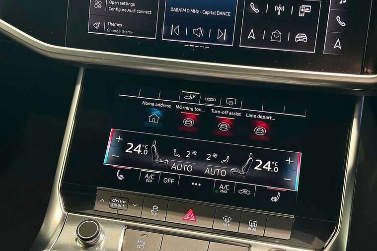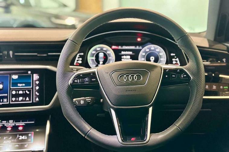 Audi connect safety and service (e-call), Audi connect with Amazon Alexa Integration, Audi drive select, Audi parking system plus - acoustic and visual park assist system for front and rear, Audi smartphone interface includes wireless Apple carplay/Android Auto, Audi virtual cockpit, Automatic start/stop system with coasting functionality, Bluetooth interface, Camera based traffic sign recognition, Electric boot lid release, Lane departure warning system, MMI navigation plus with 10.1" and 8.6" touch screens, Progressive steering, Rear view camera, Service interval indicator, Voice control system, 3 pin 10 amp domestic charging cable, 52 litre fuel tank, 7.4 kW onboard charger, Compact charging system, Hybrid propulsion system, Industrial connector CEE 32A, 230V, long and straight for the e-tron charging system, Mode 3 charging cable for public charging (AC), Sports suspension, Type 2 socket for AC charging, Audi front music interface, Audi sound system, Auxiliary input socket, DAB Digital radio, USB connection, Audi beam, Electric front/rear windows, Electrically adjustable heated and folding + automatically dimming exterior mirrors with memory function, Frameless auto dimming interior rear view mirror, Front intermittent wipers, Heat insulating darkened glass in side and rear windows, Heat insulating glass in windshield, LED rear lights with dynamic indicators, LED signature front daytime running light, LED third brake light, Matrix LED headlights, Matt black rear diffuser with diffuser strip and tailpipes in chrome, Matt black side air intake grille with inlay in matt aluminium, Omission of output/technology badging, Privacy glass, Radiator grille in anthracite black matt, single frame in chrome and horizontal struts in matt aluminium silver, Rain and light sensors, Rear boot, Rear side wing doors, 4 zone deluxe automatic climate control, 40/20/40 split folding 3 rear seat bench in 3 parts with rear centre armrest, Audi phone box light, Black cloth headlining, Electrically adjustable front seats including seat height, fore/aft position, backrest angle and 4-way lumbar with memory for driver's seat, Front and rear floor mats, Front centre armrest, Front head restraints, Heated front seats, Height/reach adjust steering wheel, Illuminated door sill trims with S logo, Illuminated sun visors with vanity mirrors, Leather gear knob, Rear headrests, Single front passenger seat, Stainless steel pedals and foot rest, Tool kit and car jack, Black styling package plus - A6 Black edition, LED Interior Ambient Lighting Pack - A6, Non smoking pack - A6, S line exterior style pack - A6, 3 point seatbelts on all seats, Airbags - Front side, front and rear including head, Audi pre-sense front, EBD - Electronic brakeforce distribution, Electromechanical parking brake, Electronic Stability Control (ESC) including ABS, ASR and EDL, Extended pedestrian protection measures, ISOFIX child seat mounting for front passenger seat and ISOFIX child seat mounting with Top Tether for outer rear seats, Manual child proof rear door locks, Seatbelt monitoring, Tyre pressure warning light, Warning triangle and first aid kit, Anti theft alarm with tow away protection, Anti-theft wheel bolts and wheel loosening detection, Immobiliser, Keyless Go, Remote central locking, Carbon twill inlays, Tyre repair kit,