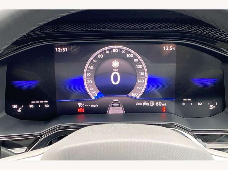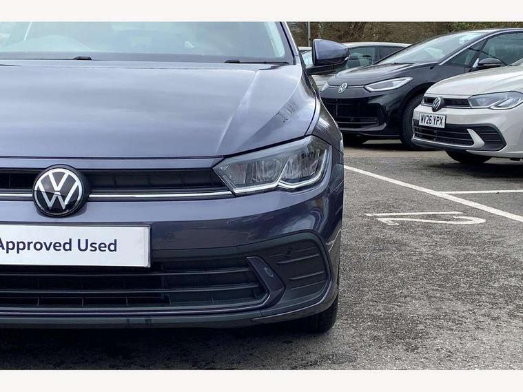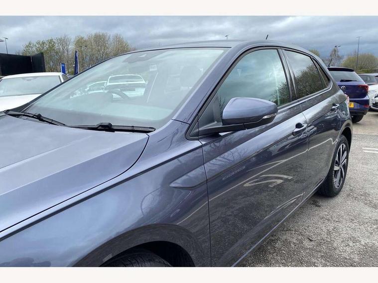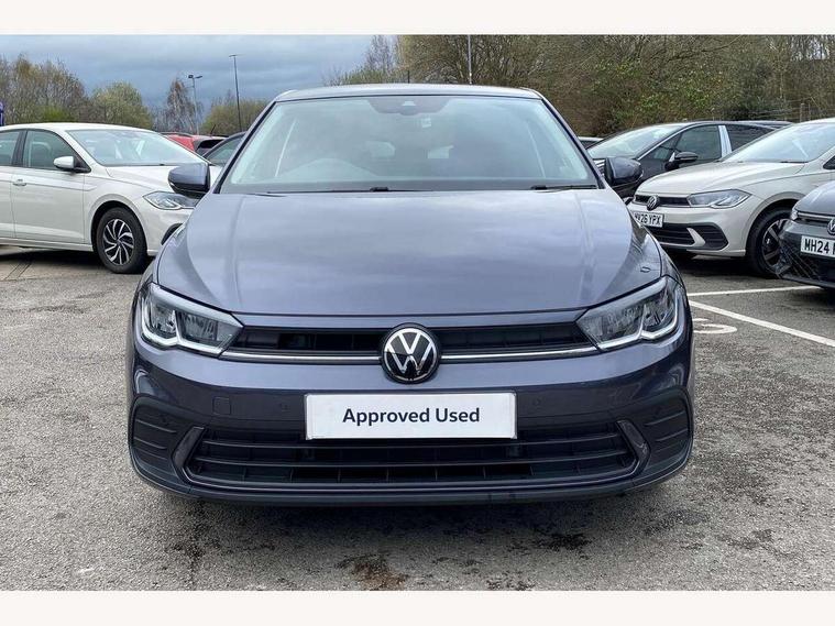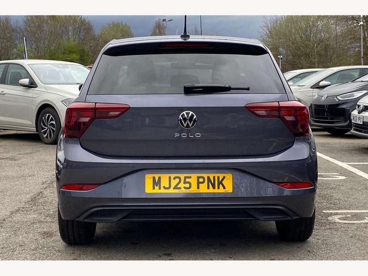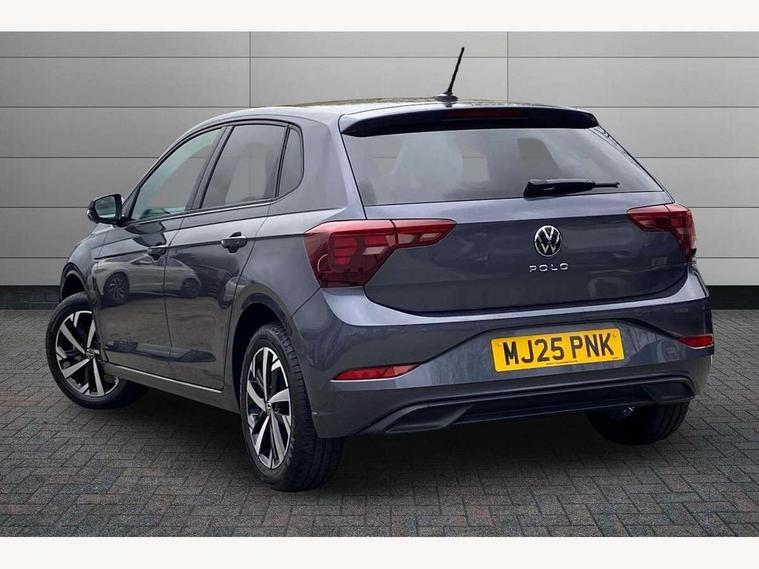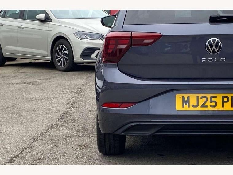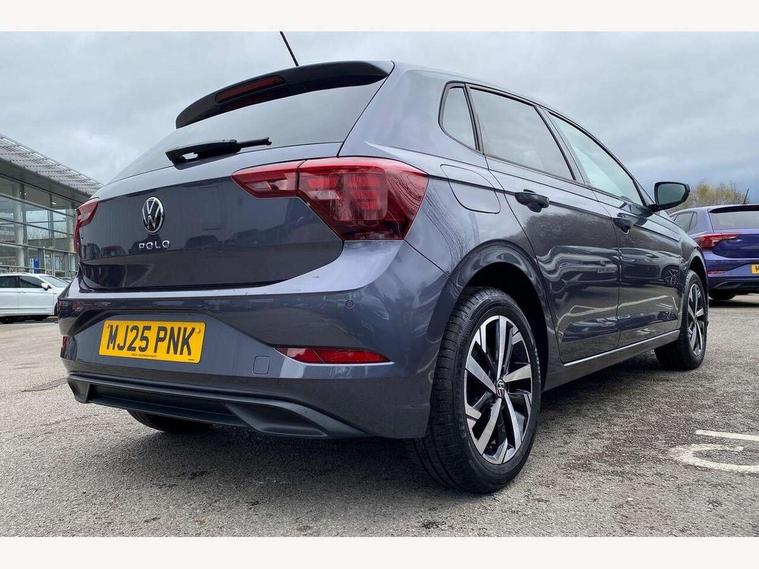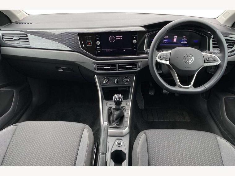 Adaptive cruise control without follow-to-stop and speed limiter, Advanced driver attention and drowsiness monitor, Bluetooth mobile phone interface, Dynamic road sign display, Emergency call service, Multifunction front facing camera for distance control, Park distance control, Power assisted speed sensitive steering, Preparation for navigation system with media and internet package, Preparation for We connect and We connect plus, Rear view camera, Speedo and rev counter, electronic odometer, trip, service interval display and exterior temperature gauge, Standard rear axle, Travel Assist - Lane keeping system and traffic jam assist, Travel assist including emergency assist, Trip computer, Warning signal and warning light for front and rear seatbelts not fastened, Washer fluid level indicator, Wireless app connect, Front wheel drive, Rear shock absorpion, Start-stop system with battery regeneration (recuperation - energy recovery during braking), DAB Digital radio, Diversity antenna for FM reception, Front and rear 6 speakers, Automatic dimming interior rear view mirror, Automatic headlight control with LED separate daytime running lights with coming/leaving home function, Body colour bumpers with chrome inserts, Body colour door handles, Body colour door mirrors, Electric front windows, Engine badge deletion, Headlight range adjustment, Heat insulating and laminated safety glass windshield, LED Headlights, LED rear combination lamps, Power folding adjustable/heated exterior mirrors and front passenger exterior mirror lowering function, Rain sensor, Rear electric windows, Rear fog light, Rear side wing doors, Rear tinted glass from B-pillar backwards approx 65% tinted, Rear windscreen washer and wiper with interval delay, Third brake light, 12V power socket in centre console, 2 front and 2 rear reading lights with switch off delay and dimmer, 2 USB-C ports in the front, 2 USB-C charging sockets on the center console in the rear, 3 rear head restraints, 60/40 split folding rear seat and rear seat bench not split, Ceramique roof lining, Chrome plated radiator grille inserts, air vent surrounds and light switch surrounds, Door and side trim panel, Driver and front passenger seat height adjustment, Driver/passenger sunvisors with illuminated vanity mirrors, Front centre armrest, Front seat backrest storage pockets, Front standard seats, Handbrake lever handle in leather, Hartley/Thomas cloth upholstery, Headliner in recycled material, Isofix child seat preparation easy-fit (for two outer rear seats, and front passenger seat) compatible with I-size, Leather trimmed gear knob, Luggage compartment cover, Luggage compartment lighting, Removable luggage compartment floor, Single front passenger seat, Standard climatic zones, Standard pedal cluster, Three spoke leather wrapped multifunction steering wheel, Light and vision pack - Polo, 3 point height adj front seatbelts + pretensioners, 3 point seat belt for centre rear seat, 3 point seatbelts, outer rear with ECE lable, ABS, Driver and front passenger airbag with front passenger airbag deactivation, Drivers and front passengers safety optimised head restraints, ESC (Electronic stability control) + EDL (Electronic Differntial lock) and ASR (Traction control), Extended and predictive pedestrian/ cyclist protection, Front assist with autonomous emergency braking (for Adaptive Cruise Control ACC up to 130 mph), Front curtain and side airbags with center airbag, Front disc brakes, Hill hold control, Manual child lock in rear doors, Rear drum brakes, Single tone horn, Tyre pressure loss indicator, Alarm with interior protection, Anti-theft alarm system with interior monitoring, backup horn, and towing protection, Anti-theft wheel bolts, Electronic engine immobiliser, Lava stone black gloss/matt decorative inserts in dash and front door panels, 16" Torsby alloy wheels, Low rolling resistance tyres,