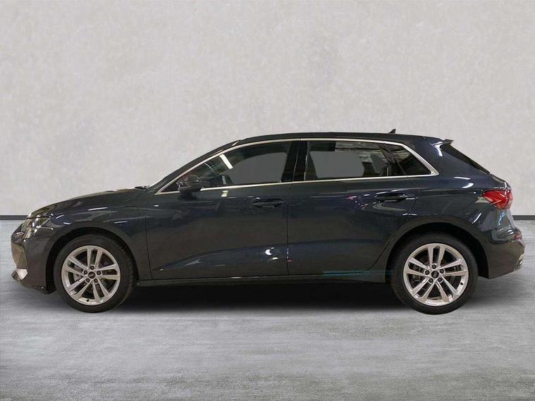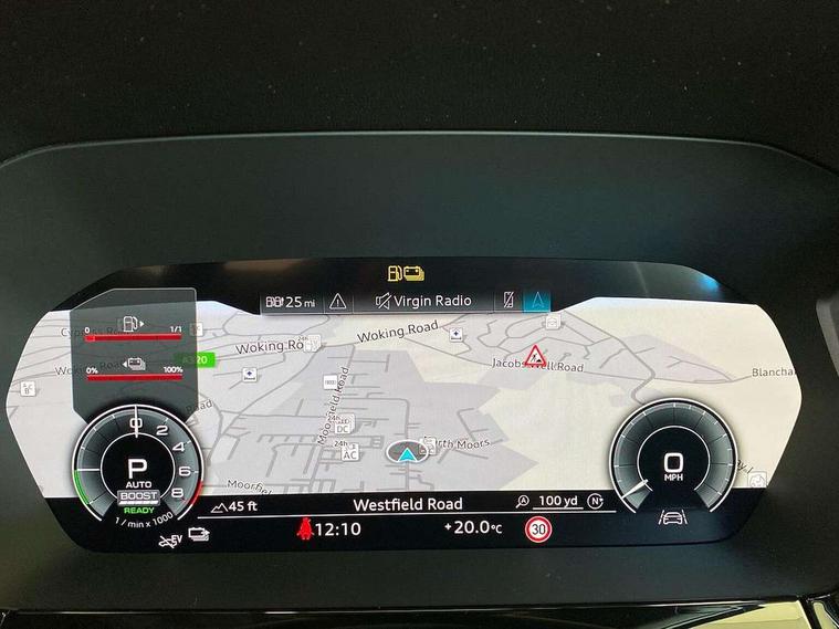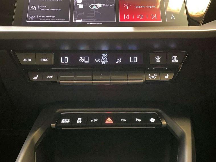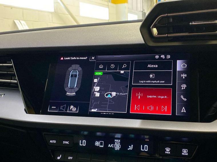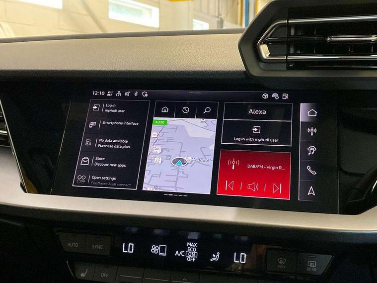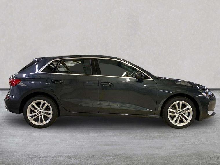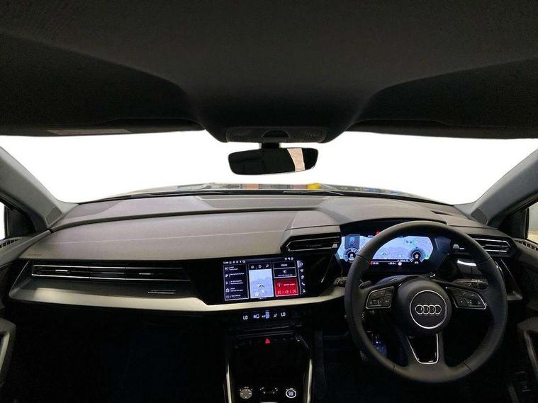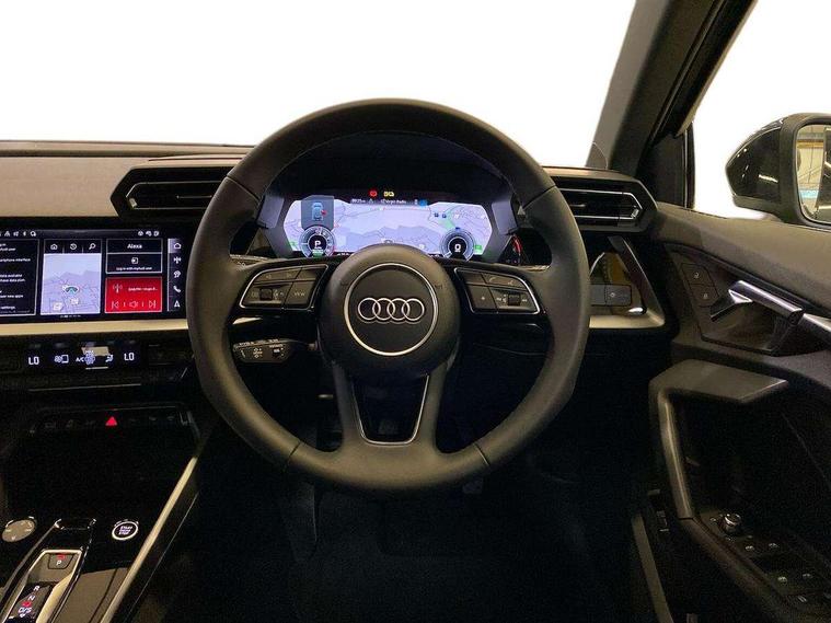 Adjustable speed limiter, Audi drive select, Audi smartphone interface with app store includes wireless Apple carplay, Android auto and Amazon alexa integration, Audi virtual cockpit plus - 12.3" full HD resolution dynamic digital instrument cluster, Automatic start/stop system with recuperation, Bluetooth interface, Camera based traffic sign recognition, Collision avoidance assistant, Cruise control, Distraction and Fatigue warning, e-Call (emergency call), Electromechanical power speed sensitive steering, Emergency assist, Lane departure warning system, MMI Navigation Plus with high resolution 10.1" colour touch screen display, Park Assist with parking system Plus, Service indicator, Trip computer, Voice control system with natural language interaction, 3 pin 10 amp domestic charging cable, CCS socket for DC charging, Charging cable for public charging, mode 3 (type 2), 32 A, Compact charging system, Industrial connector CEE 32 A, 230 V, length 1.6 m, Standard suspension, Type 2 socket for AC charging, Audi Phonebox light with wireless charging, Audi sound system - 10 loudspeakers including centre loudspeaker and subwoofer, DAB Digital radio, USB ports with charging function in the rear, 3rd brake light, Acoustic glass windscreen, Aluminium window trim, Auto dimming frameless rear view mirror, Body colour exterior mirrors, Body colour roof spoiler, Dipped beam, main beam, position light and turning light, Electrically adjustable/heated/folding/auto dimming door mirrors with integrated LED indications + kerb view function for passenger side, Exterior model badging, Front electric windows, Front radiator grill in high gloss dark chrome, Front side air inlets in grained matt black with silver frame, Heat insulating glass windscreen, LED daytime running lights, LED headlights and halogen rear lights, Light and rain sensors, Rear diffuser and grill in grained matt black with silver frame, Rear electric windows, Rear side wing doors, Rear window, rear door windows and rear side windows in clear glass, Rear wiper, 12V socket and storage compartment in front centre console, 3 seat bench in 2nd row, 3 spoke leather multifunction steering wheel with gear shift paddles, 3-zone deluxe automatic air conditioning, 4 way electrically adjustable lumbar support for driver and front passenger, 60/40 split folding rear seat bench, Black front and rear floor mats, Convenience auxiliary air conditioning, Front and rear headrests, Front centre armrest, Front door sill trims with aluminium inlay, Heated front seats, Height and reach adjustable steering wheel, Manual boot compartment lid, Manually adjustable front seats, Routine cloth upholstery with front sports seats, Seat side bolsters, Single front passenger seat, Steel grey cloth headlining, Aluminium interior elements pack - A3, LED interior lighting pack -A3, 3x3 point rear seat belts, Acoustic vehicle alerting system, Driver and front passenger airbag with passenger airbag deactivation, Electronic Stabilisation Control (ESC) including ABS, ASR and EDL, First aid kit with warning triangle and 2 safety vests, Front side airbags with head airbags and interaction airbag, Hill hold assist, Pre-sense front with pedestrian and cyclist detection, Seatbelt monitoring, Tyre pressure loss indicator, Anti theft alarm, Anti-theft wheel bolts, Electronically operated child locks, Immobiliser, Remote central locking with safelock, Black dashboard, Inlays in volcano grey fine paint finish, Tyre repair kit,