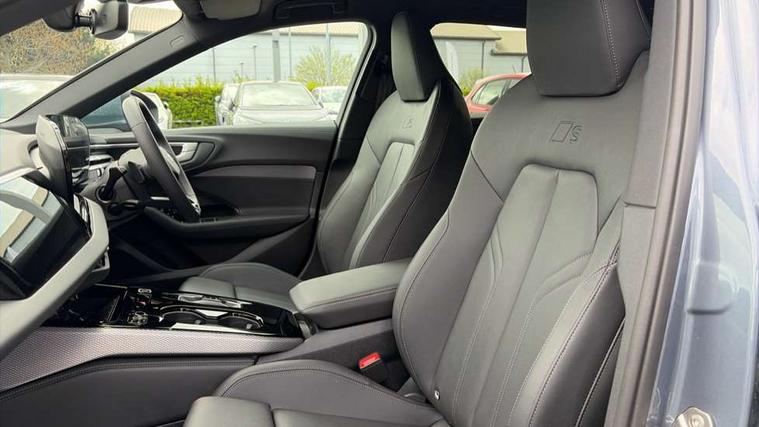 Adaptive cruise control, Advanced driver attention and fatigue montior, Audi application store, Audi assistant, Audi connect emergency call and service, Audi drive select, Audi virtual cockpit plus with 11.9" OLED colour display, Automatic start/stop system with coasting functionality, Camera based traffic sign recognition, Intersection assist, Lane departure warning, MMI navigation plus with high resolution 14.5" OLED touchscreen colour display, Park assist plus, Parking system plus with 360 display, Progressive steering with servotronic, Rear view camera, Smartphone interface, Swerve assist and turn assist, Traffic sign based speed limiter, Sports suspension lowered by 20mm, 2 USB-C ports in both the front and rear, Audi sound system impressive sound with 8 loudspeakers including centre speaker and subwoofer, 6-channel amplifier with a total output of 180 watts, DAB digital radio reception, Smartphone compartment with wireless charging, Aluminium roof rails, Aluminium window trims, Auto dimming rear view mirror, Body colour door mirrors, Door mirrors - electrically adjustable, heated, folding and auto dimming on both sides, Front and rear electric windows, Front door sill trims with aluminium inlays, illuminated with 'S' logo, High beam assist, LED headlights Plus incl. digital daytime running lights, turning light, all-weather light, motorway light, manouevring light and intersection light, LED rear lights pro incl. dynamic rear indicators and illuminated light strip with animated coming and leaving home function, LED third brake light, Privacy glass, Rear and side windows with heat insulating glass, Rear side wing doors, Rear wash/wipe, S Line badges on the front wings, S line bumpers, radiator grille and diffuser in phantom black and diffuser insert in matt anthracite, White rhombus logo projection light in exterior mirrors, Windscreen with acoustic glazing, 3 rear headrests, 3 seat rear bench, 3 spoke leather steering wheel with multi-function buttons with touch control, flattened on top and bottom, with S badging and contrast stitching, 3-zone automatic climate control, 40:20:40 split folding rear seat bench with centre armrest and cup holders, Comfort front centre armrest, Front and rear floor mats, Front seats with manual adjustment for position and 4-way electric lumbar support, Front sport seats with integrated headrest and S embossed logo, Headlining in black cloth, Heated front seats, i-Size child seat mounting on the front passenger side and outer rear seats, i-Size and top tether on the outer rear seats, Luggage compartment lid, electrically opening and closing, Manual steering column height and depth adjustment, Single front passenger seat, Stainless steel pedals and footrest, Steering wheel grips in perforated leather and shift paddles, Ambient lighting package plus - A5, 3x3 point rear seat belts, Driver airbag, Electric child safety locks, First aid kit with warning triangle and vests, Front emergency brake assist, Front passenger airbag, Front passenger airbag deactivation, Front side airbags with head airbag system and front interaction airbag, Hill hold assist, Seat belt monitoring with rear seat occupant reminder, Tyre pressure loss indicator, Anti theft alarm, Anti-theft wheel bolts, Keyless Go, Accent surfaces and control buttons in gloss black, Black dashboard with contrast stitching, Inlays in matt brushed aluminium with linear embossing, anthracite, Softwrap in leatherette with contrast stitching, Upper and lower interior elements in leatherette, Tyre repair kit,
