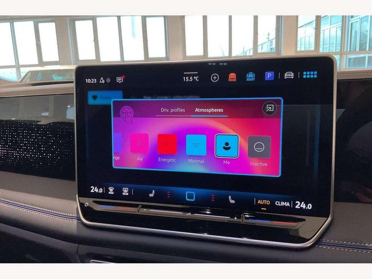 Adaptive cruise control (ACC), Advanced driver attention and drowsiness monitor, Bluetooth mobile phone interface, Digital Cockpit Pro - 10.25" high resolution dash display screen with customisable menus and information, Driving profile selection, Dynamic road sign display, E-Sim card for online connectivity, Easy Open and Close Electric tailgate with virtual pedal activation, eCall emergency call service, Extended safety system (proactive passenger protection system), Front Assist - Autonomous emergency braking with pedestrian and cyclist monitoring, IDA voice assistance with ChatGPT, Inductive smartphone charging without external antenna connection, Lane change system, Side assist, Rear traffic alert and Exit warning system, Multifunction front facing camera, Navigation system, Oncoming vehicle braking when turning including swerve support, Park assist plus with park distance control, Power assisted steering with speed sensitive, Start/stop system with regenerative braking, Tailgate/trunk lid unlocking from outside, Warning signal and warning light for front and rear seatbelts not fastened, Wireless App-Connect, Front shock absorption, Front wheel drive, 12.9" infotainment display, Digital radio reception (DAB), Diversity antenna for FM reception, 3D rear combination light special signal pattern, Ambient lighting with logo projection, Auto dimming interior rear view mirror, Automatic headlight control system, Body coloured door handles, Chrome moldings on the side windows, Coming/leaving home lighting function, Dynamic headlight range control with dynamic cornering light, Exterior mirrors convex on the left and aspherical on the right, Heat insulating glass in side and rear windows, Heat insulating windshield, High Beam Assist, automatic sensing for switching between dipped and main beam, High level 3rd brake light, Highway light, Illuminated door handle recesses, Illuminated lightline between headlamps, Illuminated logo front and rear, Laminated safety glass windshield, LED headlamps, LED separate signature day time running light, Poor weather light, Rain sensor windscreen wipers, Rear fog light on one side, reversing light on both sides, Rear side wing doors, Rear wiper, Remote electrically foldable door mirrors, puddle lights and reverse activated passenger's door mirror, 12V outlet in center console rear and in luggage compartment, 12V socket in centre console, 2 USB-C ports in the front, 2 USB-C charging sockets on the centre console in rear, charging capacity up to 45 W, 230V socket in luggage compartment, 3 bench rear seats in 2nd row, Air care climatronic 3 zone air conditioning system with rear air conditioning control panel, Black roof lining, Brushed stainless steel pedals, Carpet mats, front and rear, Centre console with illuminated storage compartment with sliding cover and two drinks holders, Chrome elements on the mirror switch and power window switches and door pulls, Door and side trim panel insert in Art velour, Drivers seat with manual adjustment of seat travel and height and backrest angle with thigh support longitudinally sliding, Front centre armrest, Front integrated head restraints, Front massage seats, Front scuff plates in aluminium, Front seats with manual height adjustment, Greyson sports cloth upholstery with inner side bolsters in artvelours, Interior ambient lighting with 30 colour options, ISOFIX anchors for child seats on outer rear seats and front passenger seat compatible with i-Size, Leather wrapped heated multifunction steering wheel with touch control and paddle shift, Mechanical rear seat release, Power adjustable lumbar support in front, Rear bench seat, split folding, longitudinally movable and folding with load-through hatch and centre armrest, Safety optimised front head restraints, Single front passenger seat, Sports comfort seats in front, Sun visors with illuminated vanity mirrors, Three rear head restraints, 3 point seat belt for centre rear seats, 3 Point seat belts in front with pretensioners, 3 point seatbelts in outer rear with ECE label, Driver and front passenger airbag with front passenger airbag deactivation, Electronic parking brake with auto hold, First aid kit with warning triangle and safety vest, Front and rear curtain airbags, Front centre airbag, Front disc brakes, Hill start assist, Manual child proof rear door locks, Rear disc brakes, Rear side airbags, Two tone horn, Tyre pressure monitoring system, Alarm with interior protection, Central locking system keyless entry, Interior door handle in matte chrome, Soul instrument panel,