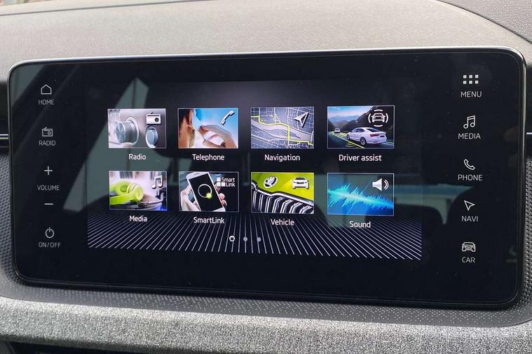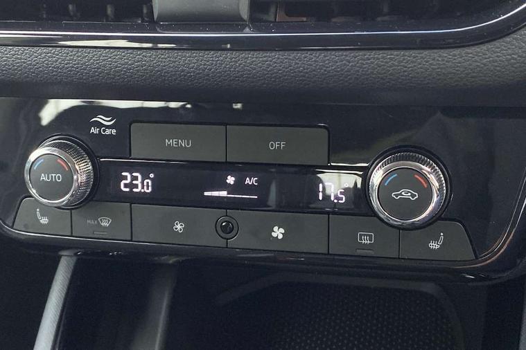 Advanced driver attention and drowsiness monitor, Bluetooth, e-Call (emergency call), Front assist system, PAS, Rear parking sensors, Rear view camera, Speed limiter, Tailgate, Traffic sign recognition, Virtual Cockpit - 10.25" digital display, Wireless smartlink, 4 USB C ports, 8 Speakers, 9.2" Skoda navigation display, DAB radio, Auto dimming rear view mirror, Automatic headlight control with manual coming and leaving home feature, Automatic intermittent wipers, Black window frames, Body colour bumpers, Body colour door mirrors and handles, Chrome moulding around grille, Front and rear electric windows, Full LED headlights, Heated rear window, LED 3rd brake light, LED daytime running lights, LED front turning lights, LED high beam, LED low beam, Rear LED fog light, Rear side wing doors, Rear wiper, Tinted windows, Unique dark chrome design logo on alloy wheels, 12V socket in luggage compartment, 3 seat bench in 2nd row, Black / Grey armrest stitching, Black hotstamping, Cargo elements, Chrome inner door handles, Door inserts in satin black, Driver and passenger sun visors with vanity mirror, Dual zone climate control, Front and rear roof lights, Front centre armrest, Front head restraints, Glasses storage in roof liner, Height adjustable driver seat, Height adjustable passenger seat, Ice scraper, Illuminated glove compartment, Inner circulation control with pollen filter, ISOFIX for front passenger seat, Isofix preparation for back seats, Leather gearknob and handbrake lever, Loft cloth upholstery, Luggage net under rear parcel shelf, Manual lumbar support for front seats, Net package and top tether hooks in boot space, Pocket on the back of both front seats, incl. mobile phone pockets, Single front passenger seat, Skoda lettering on steering wheel, Textile floor mats, Third rear headrest, Ticket holder, Top tether for front passenger seat, Umbrella in driver's door, 3x3 point rear seatbelts, ABS, Child locks, Curtain airbags and front side airbags, Disc brakes, Driver and front passenger airbags, ESP, Hill hold control, Manual leather parking brake, One tone horn, Passenger airbag switch off function, Seatbelt reminder for driver and front passenger, Tyre pressure monitoring system, Anti theft alarm system with interior monitoring, backup horn and towing protection, Anti-theft wheel bolts, Remote central locking with 2 remote folding keys, SAFE function for remote central locking, Decord pad, door inserts Kota uni,