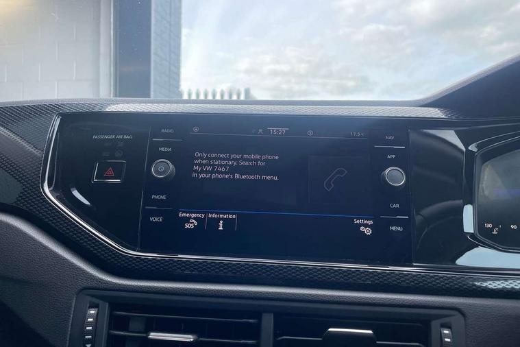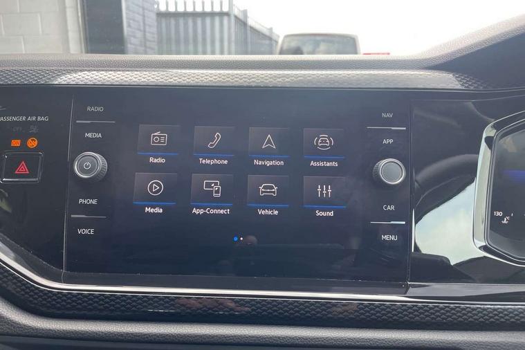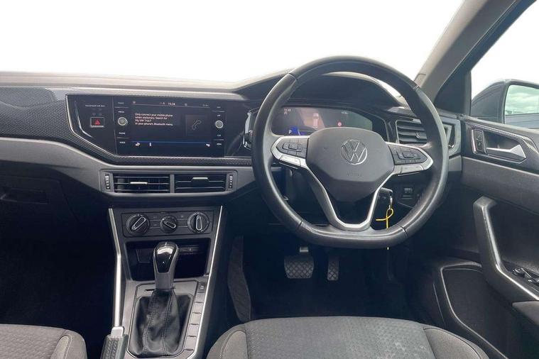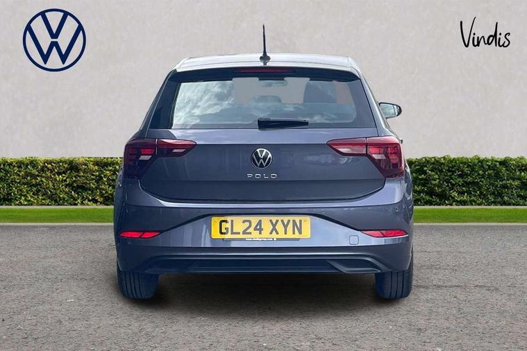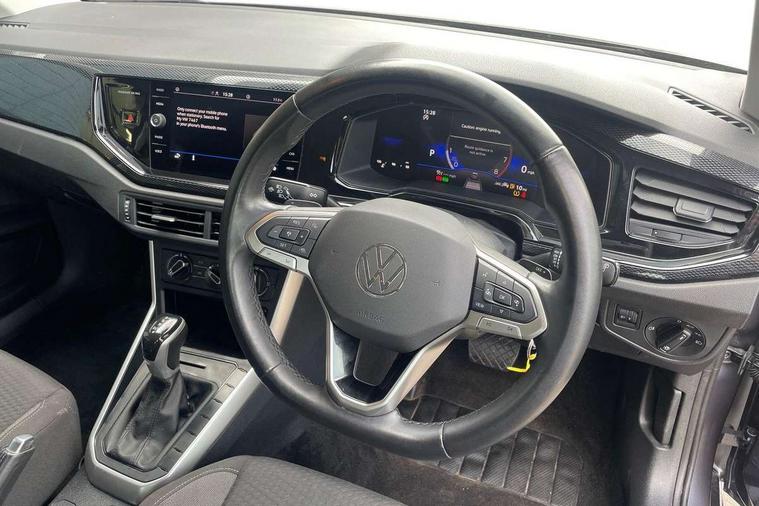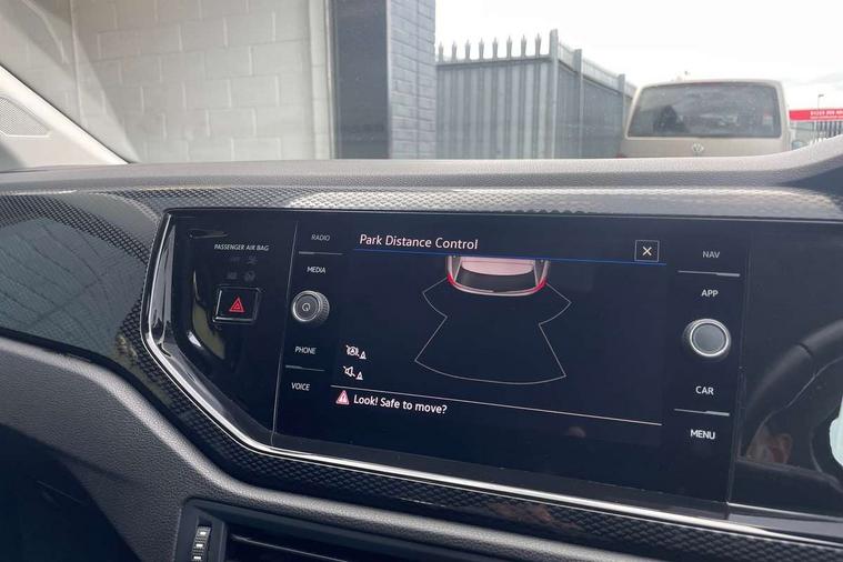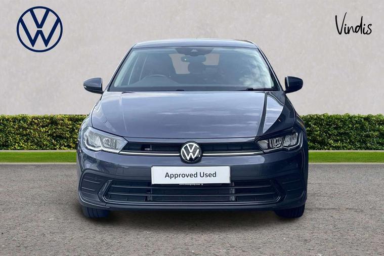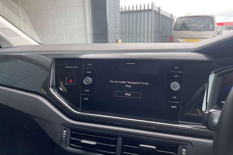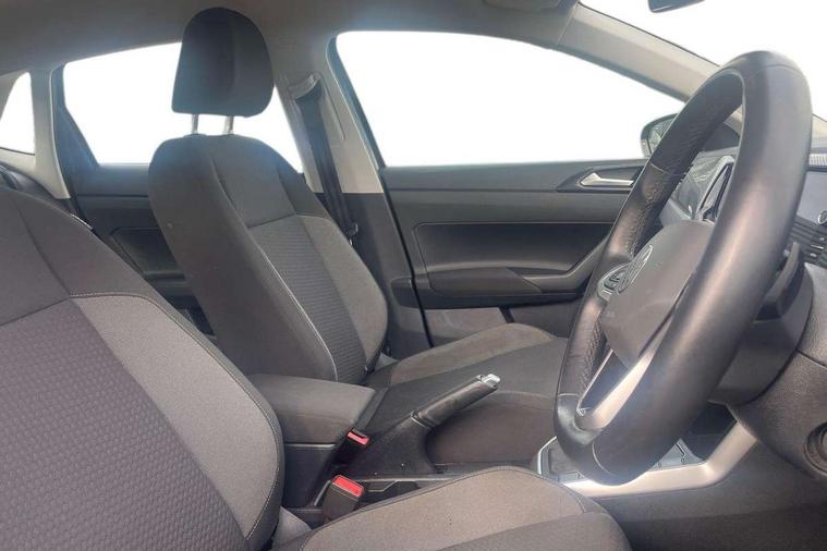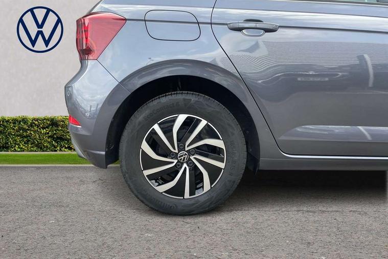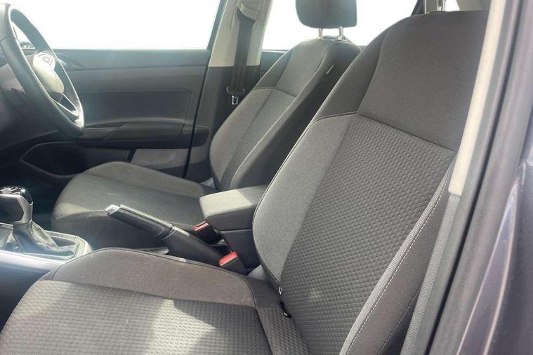 Adaptive cruise control with follow-to-stop and speed limiter, Advanced driver attention and drowsiness monitor, Bluetooth mobile phone interface, Dynamic road sign display, Emergency call service, Power assisted speed sensitive steering, Preparation for navigation system with media and internet package, Preparation for We connect and We connect plus, Speedo and rev counter, electronic odometer, trip, service interval display and exterior temperature gauge, Standard rear axle, Travel Assist - Lane keeping system and traffic jam assist, Travel assist including emergency assist, Trip computer, Warning signal and warning light for front and rear seatbelts not fastened, Washer fluid level indicator, Wireless app connect, Front wheel drive, Rear shock absorpion, Start-stop system with battery regeneration (recuperation - energy recovery during braking), DAB Digital radio, Diversity antenna for FM reception, Automatic dimming interior rear view mirror, Automatic headlight control with LED separate daytime running lights with coming/leaving home function, Body colour bumpers with chrome inserts, Body colour door handles, Body colour door mirrors, Electric front windows, Engine badge deletion, Headlight range adjustment, Heat insulating and laminated safety glass windshield, Heat insulating darkened glass in side and rear windows, Heat insulating glass windscreen, LED Headlights, LED rear combination lamps, Power folding adjustable/heated exterior mirrors and front passenger exterior mirror lowering function, Rain sensor, Rear electric windows, Rear fog light, Rear side wing doors, Rear windscreen washer and wiper with interval delay, Third brake light, 12V power socket in centre console, 2 front and 2 rear reading lights with switch off delay and dimmer, 2 USB-C ports in the front, 2 USB-C charging sockets on the center console in the rear, 3 rear head restraints, 60/40 split folding rear seat and rear seat bench not split, Ceramique roof lining, Chrome plated radiator grille inserts, air vent surrounds and light switch surrounds, Door and side trim panel, Driver and front passenger seat height adjustment, Driver/passenger sunvisors with illuminated vanity mirrors, Front centre armrest, Front seat backrest storage pockets, Front standard seats, Handbrake lever handle in leather, Hartley/Thomas cloth upholstery, Headliner in recycled material, Isofix child seat preparation easy-fit (for two outer rear seats, and front passenger seat) compatible with I-size, Leather trimmed gear knob, Luggage compartment cover, Luggage compartment lighting, Removable luggage compartment floor, Single front passenger seat, Standard climatic zones, Standard pedal cluster, Three spoke leather wrapped multifunction steering wheel with shifting paddles, Light and vision pack - Polo, 3 point height adj front seatbelts + pretensioners, 3x3 point rear seatbelts, ABS, Driver and front passenger airbag with front passenger airbag deactivation, Drivers and front passengers safety optimised head restraints, ESC (Electronic stability control) + EDL (Electronic Differntial lock) and ASR (Traction control), Extended and predictive pedestrian/ cyclist protection, Front assist with autonomous emergency braking (for Adaptive Cruise Control ACC up to 130 mph), Front curtain and side airbags with center airbag, Front disc brakes, Hill hold control, Manual child lock in rear doors, Rear drum brakes, Single tone horn, Tyre pressure loss indicator, Alarm with interior protection, Anti-theft alarm system with interior monitoring, backup horn, and towing protection, Anti-theft wheel bolts, Electronic engine immobiliser, Lava stone black gloss/matt decorative inserts in dash and front door panels, Low rolling resistance tyres,