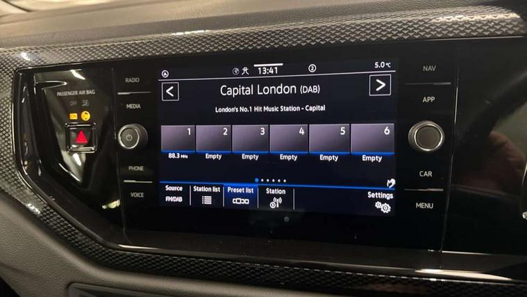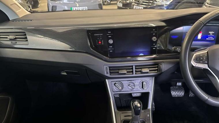 Advanced driver attention and drowsiness monitor, Bluetooth mobile phone interface, Dynamic road sign display, Emergency call service, Multifunction front facing camera for distance control, Park distance control, Power assisted speed sensitive steering, Predictive adaptive cruise control without follow-to-stop and speed limiter, Preparation for navigation system with media and internet package, Preparation for We connect and We connect plus, Rear view camera, Speedo and rev counter, electronic odometer, trip, service interval display and exterior temperature gauge, Standard rear axle, Travel Assist - Lane keeping system and traffic jam assist, Travel assist including emergency assist, Trip computer, Warning signal and warning light for front and rear seatbelts not fastened, Washer fluid level indicator, Wireless app connect, Front wheel drive, Rear shock absorpion, Start-stop system with battery regeneration (recuperation - energy recovery during braking), DAB Digital radio, Diversity antenna for FM reception, Front and rear 6 speakers, Automatic dimming interior rear view mirror, Automatic headlight control with LED separate daytime running lights with coming/leaving home function, Body colour bumpers with chrome inserts, Body colour door handles, Body colour door mirrors, Electric front windows, Engine badge deletion, Headlight range adjustment, Heat insulating and laminated safety glass windshield, LED Headlights, LED rear combination lamps, Power folding adjustable/heated exterior mirrors and front passenger exterior mirror lowering function, Rain sensor, Rear electric windows, Rear fog light, Rear side wing doors, Rear tinted glass from B-pillar backwards approx 65% tinted, Rear windscreen washer and wiper with interval delay, Third brake light, 12V power socket in centre console, 2 front and 2 rear reading lights with switch off delay and dimmer, 2 USB-C ports in the front, 2 USB-C charging sockets on the center console in the rear, 3 rear head restraints, 60/40 split folding rear seat and rear seat bench not split, Ceramique roof lining, Chrome plated radiator grille inserts, air vent surrounds and light switch surrounds, Door and side trim panel, Driver and front passenger seat height adjustment, Driver/passenger sunvisors with illuminated vanity mirrors, Front centre armrest, Front seat backrest storage pockets, Front standard seats, Handbrake lever handle in leather, Hartley/Thomas cloth upholstery, Headliner in recycled material, Isofix child seat preparation easy-fit (for two outer rear seats, and front passenger seat) compatible with I-size, Leather trimmed gear knob, Luggage compartment cover, Luggage compartment lighting, Removable luggage compartment floor, Single front passenger seat, Standard climatic zones, Standard pedal cluster, Three spoke leather wrapped multifunction steering wheel with shifting paddles, Light and vision pack - Polo, 3 point height adj front seatbelts + pretensioners, 3 point seat belt for centre rear seat, 3 point seatbelts, outer rear with ECE lable, ABS, Driver and front passenger airbag with front passenger airbag deactivation, Drivers and front passengers safety optimised head restraints, ESC (Electronic stability control) + EDL (Electronic Differntial lock) and ASR (Traction control), Extended and predictive pedestrian/ cyclist protection, Front assist with autonomous emergency braking (for Adaptive Cruise Control ACC up to 130 mph), Front curtain and side airbags with center airbag, Front disc brakes, Hill hold control, Manual child lock in rear doors, Rear drum brakes, Single tone horn, Tyre pressure loss indicator, Alarm with interior protection, Anti-theft alarm system with interior monitoring, backup horn, and towing protection, Anti-theft wheel bolts, Electronic engine immobiliser, Lava stone black gloss/matt decorative inserts in dash and front door panels, 16" Torsby alloy wheels, Low rolling resistance tyres,