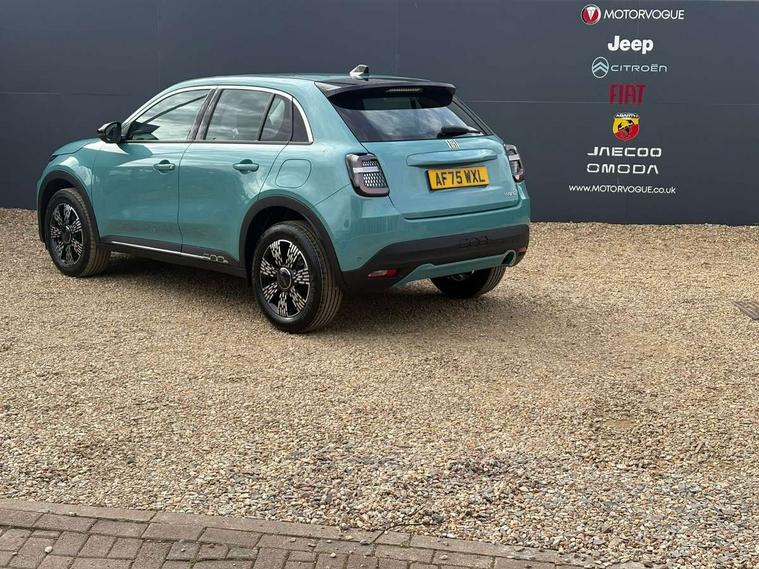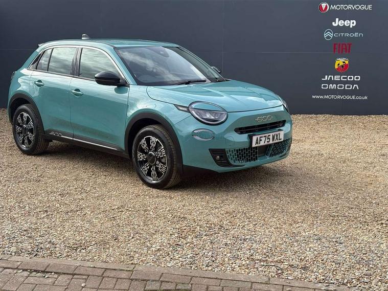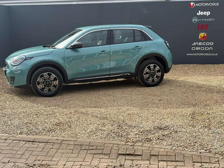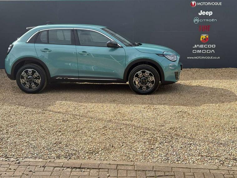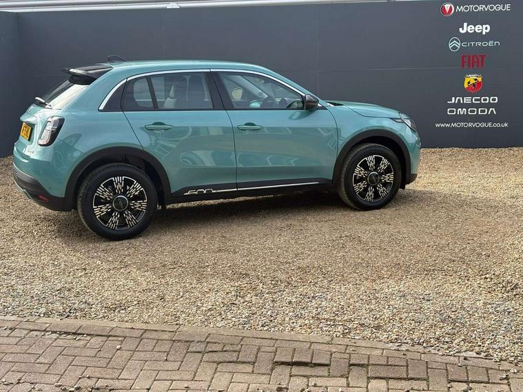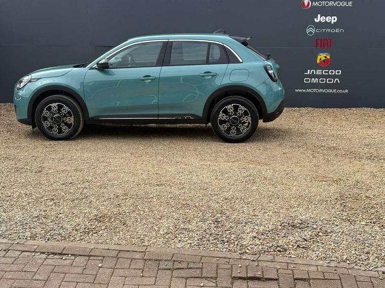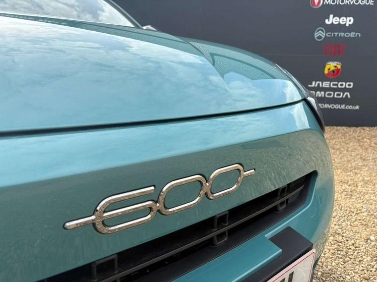 7" TFT digital cluster, Bluetooth connectivity, BSRF connectivity box, Connected services, Cruise control, Drowsy driver detection, Emergency E-call assist, Engine emission level default, GSR II step 1, Intelligent speed assist, Lane keeping assistant (LKA), Odometer, Power assist steering, Rain and dusk sensors, Rear parking sensors, Traffic sign recognition, Wireless apple car play/android Auto, Without drive mode selector, L2-AGM 12V battery, 1st Row USB type-A and USB type-C, 4 speaker audio system, Radio, Uconnect infotainment 10.25" touchscreen with DAB, All power windows express Up/Down, Auto dimming frameless rear view mirror, Automatic headlights, Body coloured door handles, Chrome day light openings, Electric adjustable door mirrors, Exterior chrome accents, Front and rear Chromed 600 logo, Gloss black finish B pillar, Gloss black shark fin antenna, Glossy black door mirrors, Heated windscreen wiper blade area, LED 3rd brake light, LED daytime running lights, LED Fog lamps with cornering function, LED front signature lighting, LED front turn indicators and position lights, LED rear lights, LED rear signature lighting, LED reflector headlamps, Matt black side skirts with 600 chromed logo, Rear bumper embossed 600 logo, Rear roof spoiler, Rear side wing doors, Rear wiper, 2 Spoke synthetic leather steering wheel with audio control, 3 rear headrests, 3 seat bench in 2nd row, 4 way manually adjustable passenger seat, 6 way manually adjustable drivers seat, Auxilliary 12V power socket, Body colour dashboard fascia, Chrome interior door handles, Dark metachrome dashboard ring, English handbook, Front centre armrest, Front headrests, Front passenger grab handle, Front seatback pockets, ISOFIX attachment on front passenger and rear passenger seats, Manual climate control, Metachrome central compartment bezel, Monogram fabric upholstery, Paddle shifts, Partial body cover for shipment, Predisposal for accessory upgrade to default tunnel pad cover (dedicated prnd bezel), Rear seat 40/60 split, Single front passenger seat, Smart 15L storage central tunnel with tunnel pad cover, Sunvisor label ciao Fiat, Sunvisors with vanity mirrors, 3x3 point rear seatbelts, 6 airbags, ABS, Autonomous Emergency Brake (AEB) & Vulnerable Road User (VRU) Protection, Child locks on rear doors, Electronic parking brake with auto hold, ESC (Electronic Stability Control), Front passenger airbag deactivation, Seatbelt reminder and pretensioners for all seats, Anti-theft volumetric alarm, Anti-theft wheel bolts, Keyless Go, 17" Diamond cut alloy wheels, Fix and go puncture repair kit,