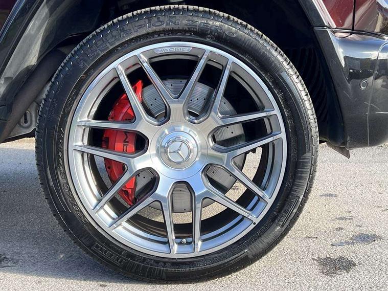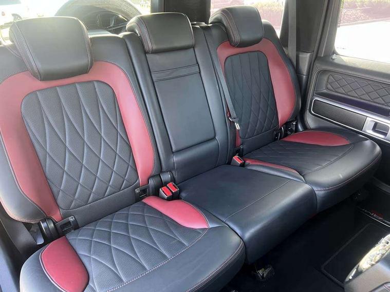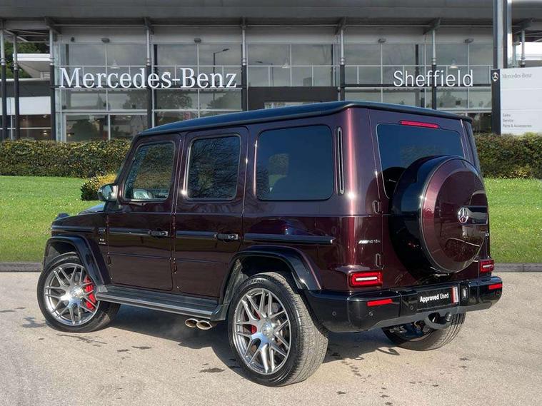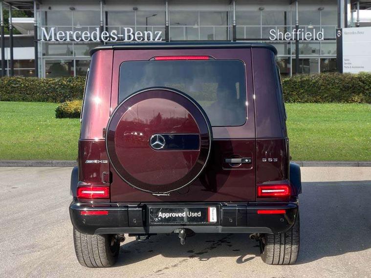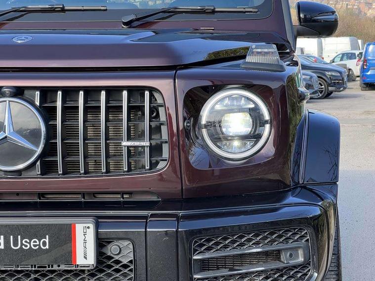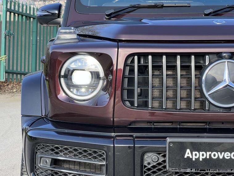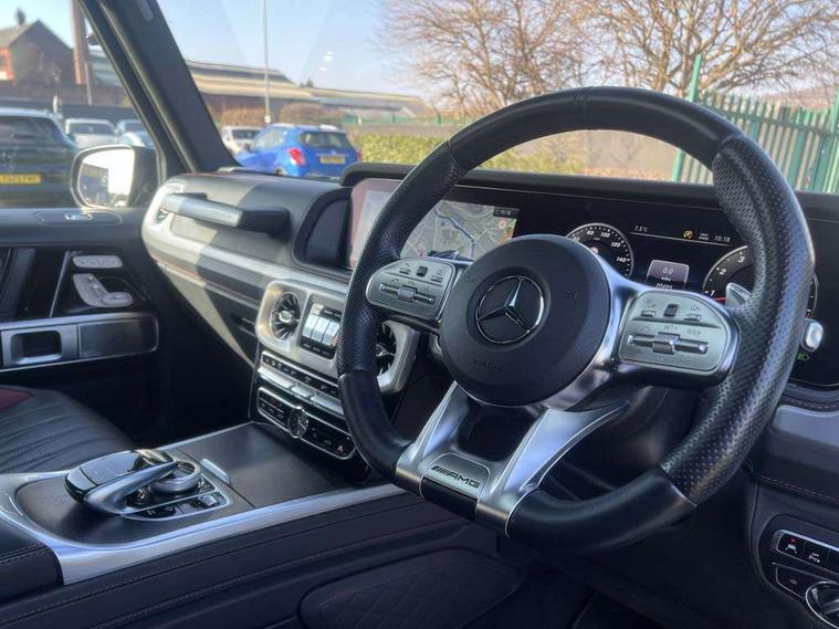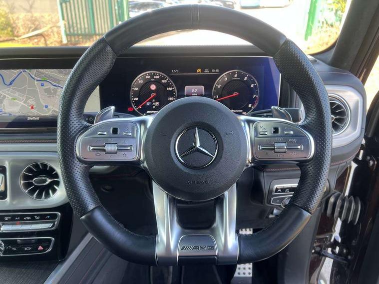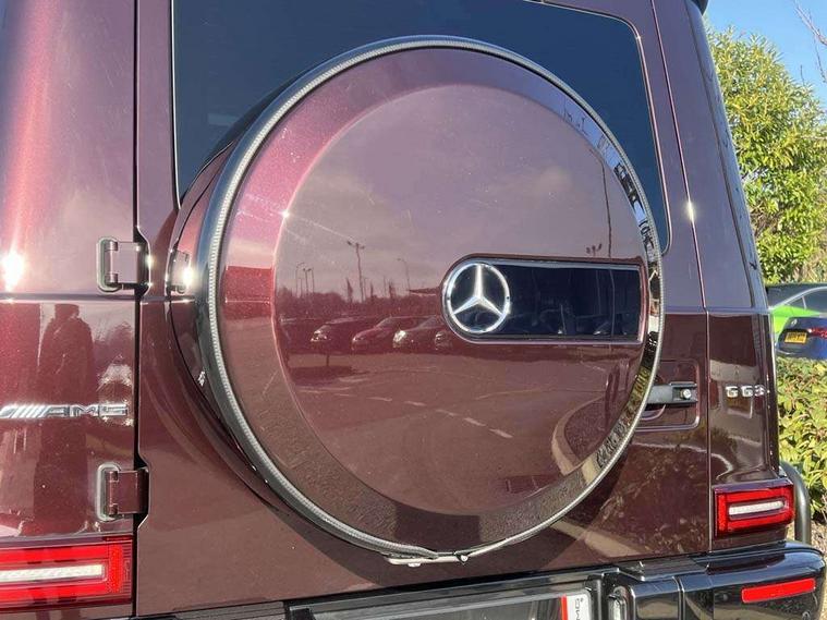 360 degree parking camera, Active lane keep assist, AMG DYNAMIC SELECT with ECO start/stop and 5 modes (comfort, slippery, sport, sport+ and manual), AMG instrument cluster with dual bonded 12.3" widescreen displays, AMG specific IWC design analogue clock, Attention assist, Bluetooth interface for hands free telephone, COMAND online HDD Nav with media interface, radio/CD/DVD/MP3, 12.3" screen, linguatronic voice control, Communications module (LTE), Mercedes connect me, Mercedes-Benz emergency call, Parking assistance PARKTRONIC, PAS, Preinstallation for rear seat entertainment, Service indicator (ASSYST), Smartphone integration with Apple CarPlay and Android auto, Touch pad controller for COMAND online, Traffic sign recognition, Trip computer, 4MATIC permanent four wheel drive, AMG Ride Control suspension, AMG SPEEDSHIFT 9G Tronic sports transmission with cruise control and variable speed limiter, Differential lock, Electronic selectable low range gearing, Low range gear reduction (Electronically selectable while driving), Petrol Particulate Filter, Aux-in socket, Burmester surround sound system with 16 speakers, DAB digital radio module, 3rd brake light, Adaptive highbeam assist plus - automatic low high beam switching, AMG bodystyling with exclusive Mercedes AMG G 63 front aprons with cooling air intakes and AMG flared wheel arches in vehicle colour, AMG performance exhaust system, selectable , left and right two chrome trimmed twin tailpipes, Automatic headlamp activation, Automatically dimming rear view mirror, Dark tinted heat insulated glass, Door mirror memory, Door mirrors - Electrically adjustable/heated/integrated indicators, front area lighting and automatically dimming driver's mirror, Electric sunroof sliding, with one-touch opening, Front and rear electric windows, Heated windscreen, LED daytime running lights, LED tail lights, Multibeam LED headlights with anti-dazzle feature, Privacy glass - Dark glass from B-pillar backwards, Rain sensor windscreen wipers, Rear side wing doors, Rear wiper, Running boards, Stainless steel spare wheel cover, Tail lights featuring LED technology, Trailer coupling with ESP trailer stabilisation, V8 BITURBO lettering, 1/3 to 2/3 split folding rear seats, 12V socket in centre console, rear and load compartment, 2 cup holders in front and rear, 3 seat bench in 2nd row, 3 spoke flat bottom AMG Performance steering wheel in nappa leather, Ambient lighting with 64 colours and projection of brand logo, AMG floor mats with AMG lettering, AMG metal badge on front seat backrest, AMG steering wheel buttons, Centre armrest between front seats with integrated stowage compartment, Designo dinamica microfibre roof lining in Black, Door centre panels, door trim, armrests in doors with nappa leather, Electric front headrests with memory, Electric front seats with memory function, Electrically adjustable steering column, with automatic adjustment for entry/exit, Front centre armrest with storage compartment, Heated front seats, Heated rear seats, Heated steering wheel, Illuminated AMG door sill panels in brushed stainless steel, Ionisation of interior air including fine particle activated charcoal filter system, Load protection net, Luggage compartment cover, Memory for steering wheel, Rear head restraints, Rubber mat for load compartment, Silver air vents, Silver chrome steering wheel trim with AMG lettering + silver aluminium shift paddles + 12 o clock marking and touch control buttons, Single front passenger seat, THERMOTRONIC automatic climate control, Driving assistance pack - G Class, Stowage space pack - G class, 3x3 point rear seatbelts, ABS with Brake Assist, Active brake assist, Adaptive brake with hold finction, priming and dry parking in the wet, Airbags - windowbags, AMG high performance braking system with internally ventilated and perforated brake discs, Driver/Front Passenger airbags, Electronic four wheel traction control, ESP with ASR, Front side airbags, Hill start assist, i-Size and ISOFIX rear child restraint system, Pre-safe system for anticipatory occupant protection, Rear door child safety locks, Rear side airbags, Red painted AMG brake calipers, Seat belts, 3-point design in black, Seatbelt pretensioners, Tyre pressure monitoring system, Anti-theft alarm system/interior protection with tow-away protection and interior monitoring systems, Immobiliser, Keyless Go access/ignition system, Remote central locking, G manufaktur black piano lacquer trim, Full size spare wheel,