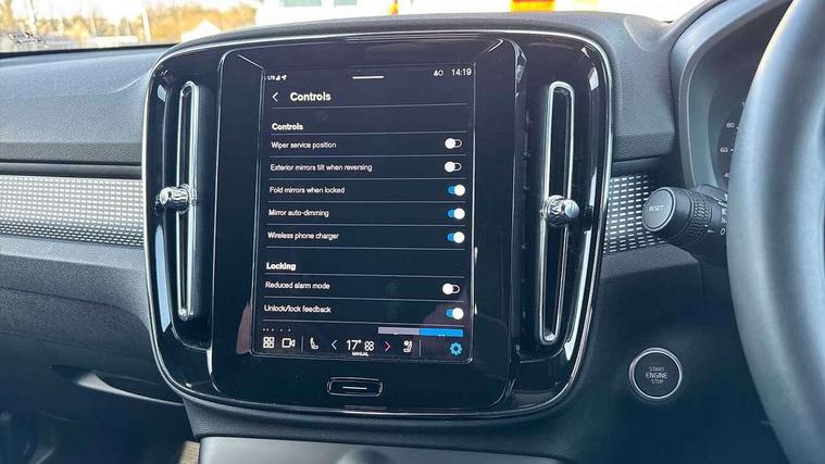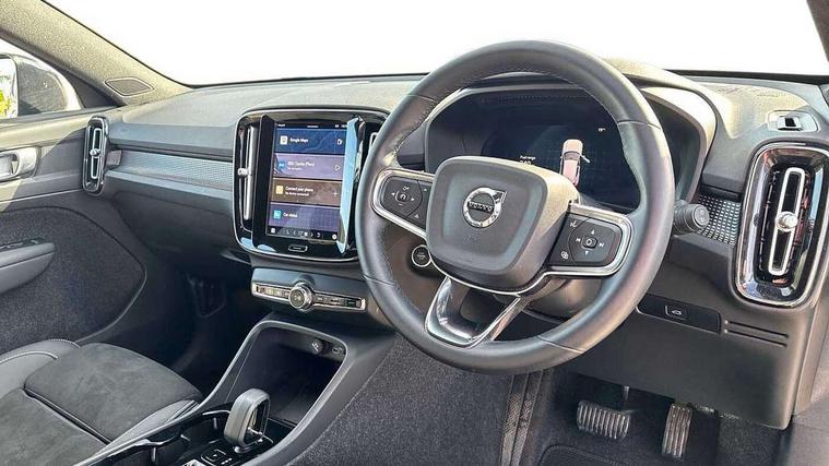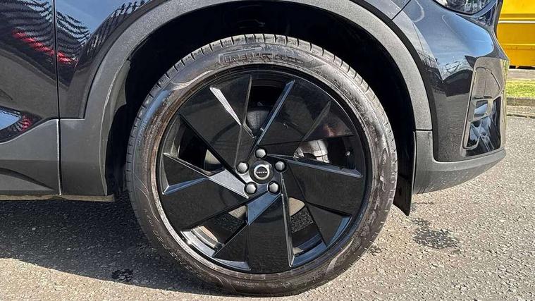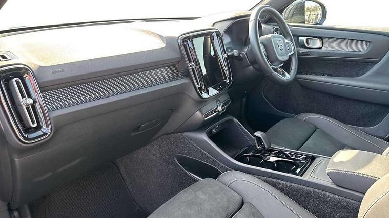 12.3" Progressive Driver Display, 9" centre console portrait touch screen, Adjustable steering wheel force, Android auto (Wired), Apple carplay (wired), Bluetooth handsfree system, Driver alert control, Driver assistance (pilot assist and adaptive cruise control), Driver awareness - Blind spot information system with steer assist, cross traffic alert with autobrake and rear collision warning and mitigation, E-call, Front park assist, Google automotive services - Enabled entertainment apps, navigation with google maps, voice recognition with google assistant, Hands free power tailgate, Intelligent speed assistance, Lane keeping aid, Oncoming Lane Mitigation, Rear park assist, Speed sensitive steering, Volvo cars services with app - Driving journal, emergency and breakdown call, engine remote start, remote door locking/unlocking and vehicle dashboard, Wireless/Inductive Mobile Phone Charging, Automatic transmission with start/stop and manual change functions, Dynamic chassis, DAB Digital radio, Steering wheel mounted remote controls, Adaptive brake lights with high level LED brake lights, Auto dimming feature for exterior door mirrors, Auto dimming interior mirror, Automatic headlamp levelling, Automatic LED Headlights + Active high beam incorporating daytime running lights, Colour coordinated auto folding and heated power door mirrors, Dark tinted windows - rear side windows and rear screen, Front aluminium tread plates, Front and rear electric windows, High gloss black front and rear skid plate, High gloss black front bumper deco, High gloss black front grille strikethrough and ironmark, High gloss black rear model, engine and volvo logo badges, High gloss black window trim, Home safe and approach lighting, Integrated roof rails in high gloss black, LED front fog lights, Puddle lights, Rain sensor with automatic windscreen wiper activation, Rear side wing doors, Rear wiper, Roof antenna, Roof spoiler, Visible VIN plate, 12V socket in front tunnel console and luggage compartment, 2-Zone electronic climate control with CleanZone air quality system and pollen filter, 3 seat bench in 2nd row, 3 Spoke tailored steering wheel with chrome trim, 60/40 versatile split folding rear seat, Centre console cupholders and storage, Charcoal headlining, Connect textile/microtech upholstery, Flexible load floor and grocery bag holder, Floor mats, Front cabin courtesy lights, Front door pocket, front cupholder, ambient front door, rear reading, rear courtesy, instrument panel and tailgate lighting, Front footwell illumination, Front headrests, Front reading lights, Front seat cushion extensions, Front side step illumination (under door), Glovebox bag hook, Heated front seats, Height adjustable passenger seat, Height/reach adjustable steering column, High gloss centre tunnel deco, Illuminated glovebox, Illuminated luggage compartment, Illuminated vanity mirrors + ticket holder, Integrated waste bin, Isofix attachments on outer rear seats, Load cover, Load protection net, Multi directional lumbar support for driver and passenger seat, Power driver seat with memory + exterior mirrors memory, Rear armrest with cupholders, Rear headrests, Single front passenger seat, Underfloor cargo storage, Climate pack without heated front seats - XC40, 3x3 point rear seatbelts, City safety with steering support with Pedestrian + cyclist + front collision warning with full auto brake and rear auto brake, Driver and passenger airbags, Drivers knee airbag, Electronic parking brake with auto hold, First aid kit, Front and outer rear seatbelt reminder and pretensioners, Front seats SIPS airbags, Hill descent control, Hill start assist, Inflatable curtain, Passenger airbag cut-off device, Power child locks on rear doors, Road sign information display, Run off Road Protection, SIPS (Side Impact Protection System), Slippery road and hazard light alert, Stability and Traction Control with Spin control, Engine Drag Control and Corner Traction Control, Tyre pressure monitoring system, Vehicle deceleration control with Anti-lock Brake System, Electronic Brake Distribution and Emergency Brake Assist, Warning triangle, WHIPS whiplash protection system - front, 2 x Key integrated remote control central locking including with deadlocking system and auto open/close windows, Anti-theft alarm including immobiliser/volume sensor + level sensor, Keyless drive includes keyless entry and keyless start, Locking wheel nuts, 20" 5 spoke high gloss black alloy wheels,