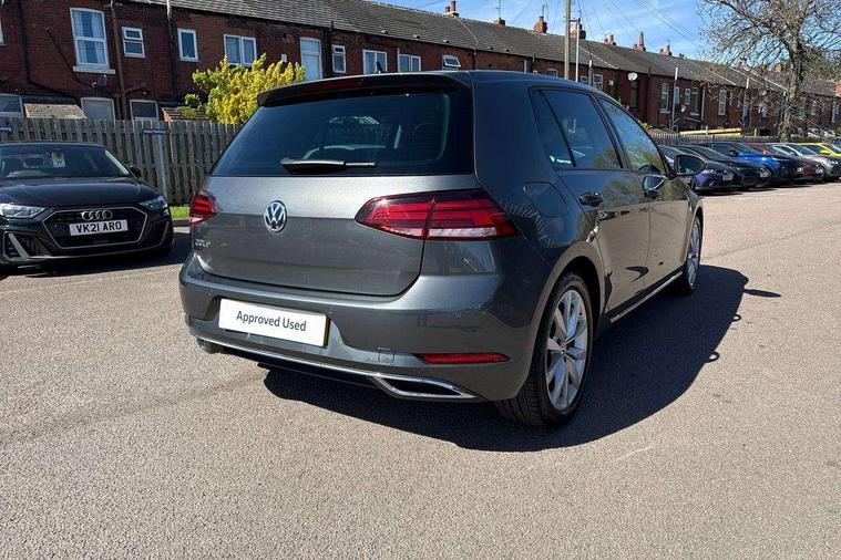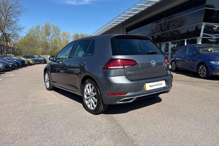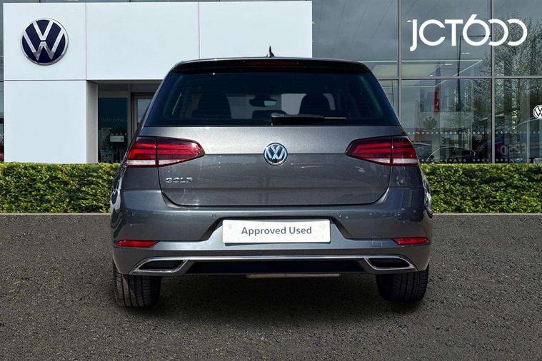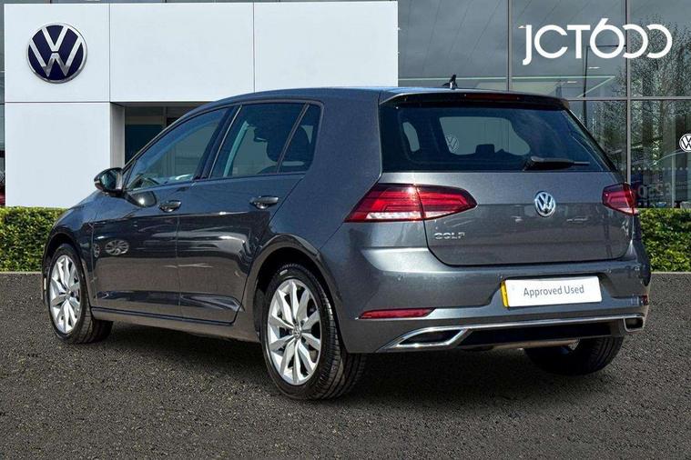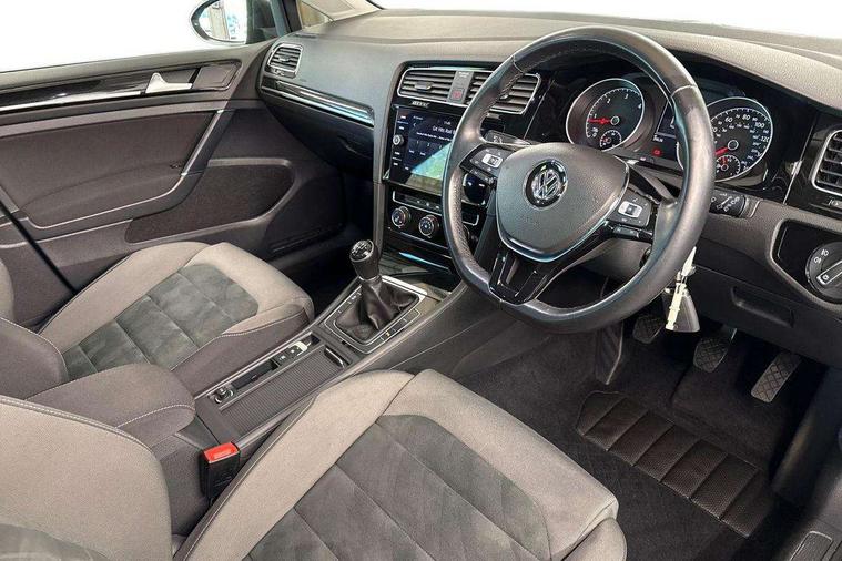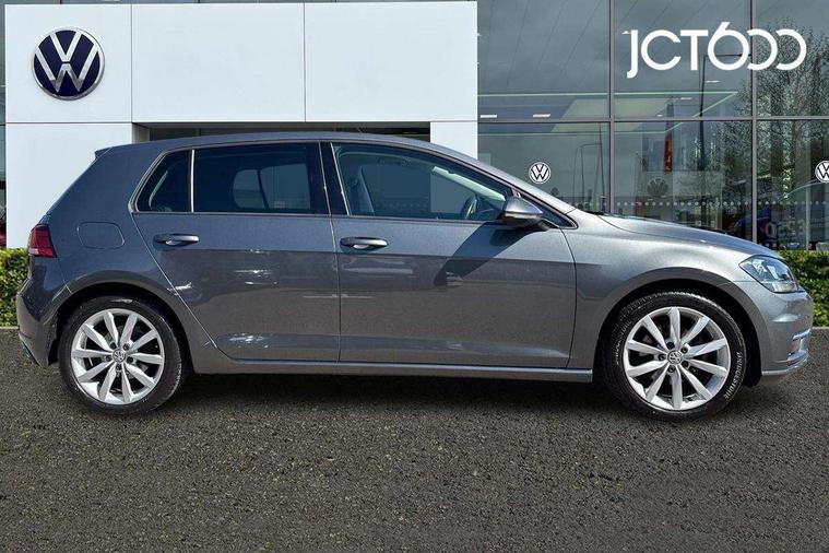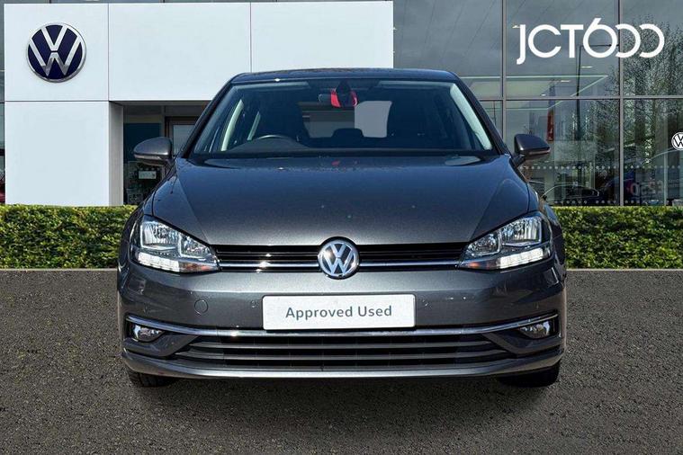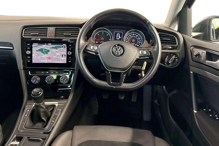 'Lights On' Reminder warning buzzer, ACC - Adaptive cruise control with front assist, forward collision warning, distance monitoring, city emergency brake and speed limiter, Bluetooth telephone and audio connection for compatible devices, Brake pad wear indicator warning light, Driver alert system, Driver profile selection, Driving Mode Selection with four preset modes - Eco, normal, sport or individual modes, Front assist, radar sensor controlled distance monitor, city emergency braking + predictive pedestrian protection, Front assistant collision mitigation, Instrument cluster in white, Misfuelling protection device, Multifunction computer with visual gear change recommendation for fuel consumption, Power assisted speed sensitive electro-mechanical steering, Speed limit display, Speedo, rev counter, electronic odometer, trip, service interval display, exterior temperature and fuel gauge, Stop/start system, Ultrasonic front and rear optical and audible parking sensors, Warning buzzer and light for front seatbelts unfastened, Battery regeneration during braking, Diesel particulate filter, Lowered sports suspension, XDS electronic differential lock, Composition media system, DAB Digital radio receiver, MDI multi device interface, MP3/WMA compatability, Multi device interface (MDI) with USB connection, Premium USB cable in choice of either Apple or Android smartphone compatibility, SD card slot, SMS Functionality, Title and cover art display, 4 X 20W output, USB connection and socket, USB and SD card connectivity, Automatic dimming rear view mirror/rain sensor, Black front air intake and radiator grille with chrome insert, Black rear diffuser, Body colour bumpers, Body colour door handles, Body colour door mirrors with integrated indicators, Chrome grille surround, Chrome trimmed front air intake surrounds, Electric front windows, Electric rear windows, Electrically adjustable and heated door mirrors, Glavanised body, Heated rear windscreen, High level 3rd brake light incorporating LED Technology, LED front fog lights with static cornering light function, Range adjustable headlights via infotainment system with LED daytime running lights, Rear fog lamp, Rear number plate lights incorporating LED technology, Rear tinted glass 65% light absorbing from B pillar backwards, Rear window aerial, Rear window wash/wipe with intermittent wipe, Reflectors in all doors, Remote electrically foldable door mirrors, door mirror puddle lights and reverse activated kerb-view adjustment on passengers door mirror, Tailgate with integrated rear roof spoiler, Windscreen wipers/ intermittent wipe + 4 position delay, 12V socket in luggage compartment, 3 rear headrests, 4 load lashing points in luggage compartment, 60/40 split folding rear seat backrest, Bag hook in luggage compartment x 2, Cooled glovebox, Dust/pollen filter, Front + rear carpet mats, Front centre armrest with storage compartment and two rear air vents, Front footwell lights, Front seat back storage pockets, Grab handles front x 2, rear x 2 with integrated coat hooks, Height and reach adjustable steering wheel, Illuminated vanity mirrors, Instrument lighting white adjustable panel illumination, Interior light delay, Isofix preparation for 2 rear child seats, LED front and rear reading lights, Load through provision with rear centre armrest and cupholders x2, Luggage compartment light, Overhead storage box, Pearl grey headlining, Storage box in luggage compartment, Storage compartment in roof console with cover, Storage compartments in front doors, Storage compartments in rear doors, Stowable luggage compartment cover, Sun visors, Three spoke multi-function leather trimmed steering wheel and gearknob, Variable boot floor, height adjustable and removable, Ambient lighting pack - Golf, Convenience Pack - Golf, Light and Sight pack - Golf, Mirror pack - Golf, 3 rear three point seatbelts, Airbags - Driver's and front passenger's, curtain airbag, Driver's knee, front side impact and passenger's airbag deactivation switch, Anti-lock Braking System (ABS) with Hydraulic Brake Assist (HBA), Automatic post collision braking system, Child locks on rear doors, Driver/Passenger optimised head restraints, Electronic parking brake with auto hold, Electronic stability control (ESC) including Electronic differential lock (EDL) and ASR (Traction control) with deactivation via infotainment system, Pre crash preventive occupant protection, Three point height adjustable front seatbelts with tensioners, Tyre pressure loss indicator, Alarm with interior protection and deactivation via infotainment system, Electronic engine immobiliser, Remote central locking with 2 remote folding keys, Chrome plated air vent surround, Chrome plated electric mirror adjustment light switch surround, Piano black decorative inserts in centre console, Tumbler decorative inserts, Steel space saver spare wheel,