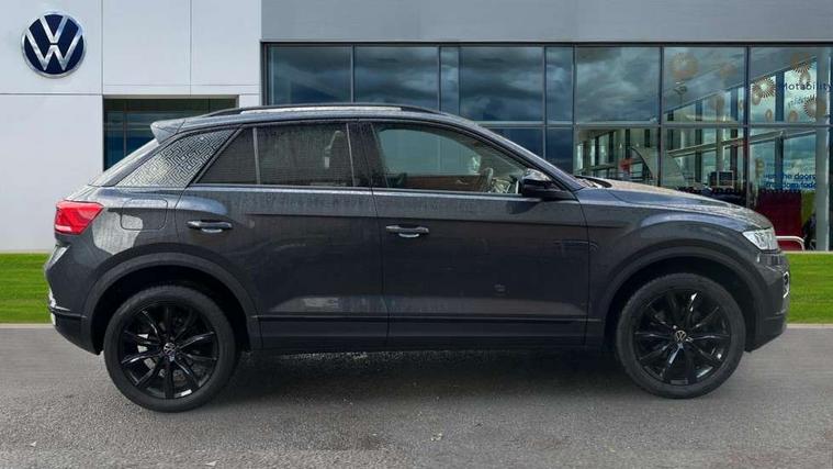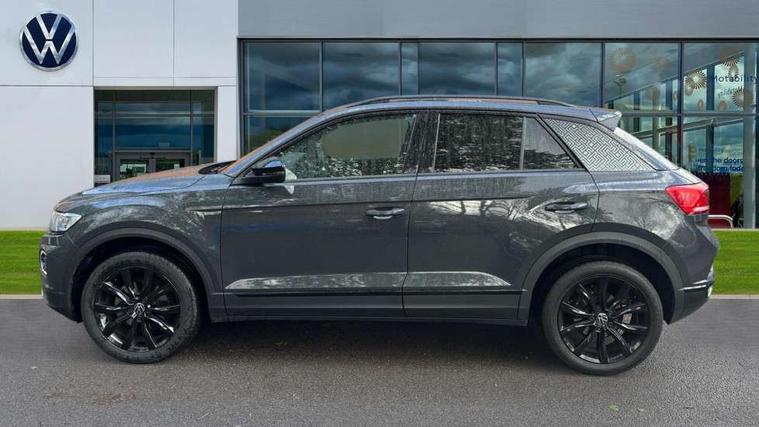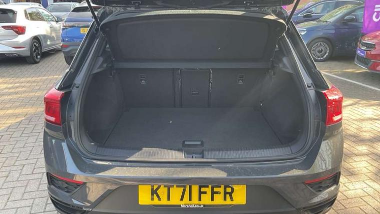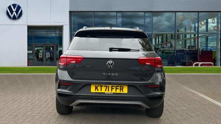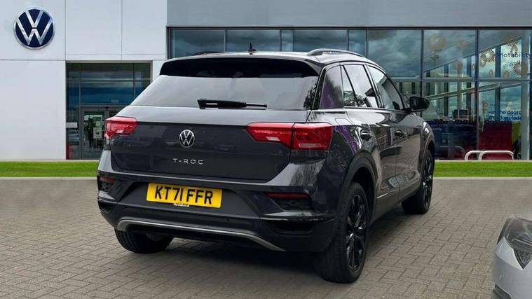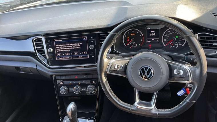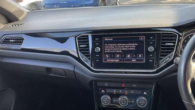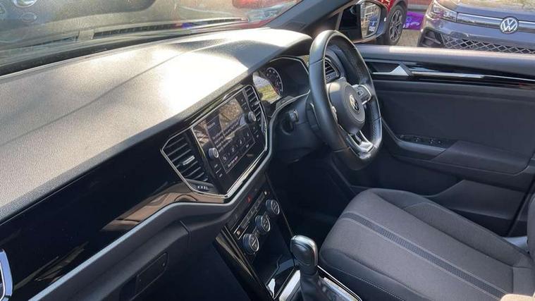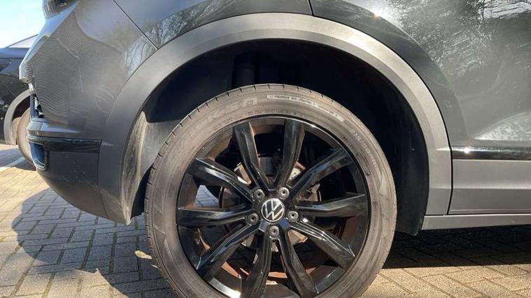 'Lights On' Reminder warning buzzer, Adaptive cruise control, Bluetooth telephone and audio connection for compatible devices, Car information display, Driver tips and journey analysis, Emergency call service, Lane assist with warning text instrument cluster, Modified key software - reduce switch off time for key status change to Long no motion, Multifunction camera, Multifunction computer with visual gear change recommendation for fuel consumption, Service interval indicator, Think blue trainer driver tips and journey analysis, Warning sound and light for doors and tailgate open, Warning sound and light for front seatbelts unfastened, Wireless app connect for apple carPlay, Battery regeneration during braking, Start/stop function with battery regeneration, DAB Digital radio, Diversity antenna for FM reception, Multi device interface (MDI) with USB connection, Music playback - MP3, WMA and AAC files, Premium USB cable in choice of either Apple or Android smartphone compatibility, SD card slot, Simultaneous pairing of 2 compatible mobile devices, Single CD player, glovebox mounted, SMS functionality - read, compose and send SMS messages using touch-screen display, Storage compartment with longitudinal and height adjustable in armrest and two rear air vents, Title and cover art display, USB-C Interface and USB charging socket, Auto dimming interior rear view mirror, Automatic coming/leaving home lighting function and daytime running lights, Automatic hazard lights activation under emergency braking, Black grained lower door protectors, Black grained wheel arches, Black roof rails, Body colour door handles, Body colour sports bumpers with silver metallic underbody fascia, Body coloured bumpers and radiator grille with chrome trim and front fog lamps with chrome bezel, Chrome trim on upper and lower radiator grille, Dusk sensor, Electrically foldable, adjustable and heated door mirrors with puddle lights and reverse activated kerb-view adjustment on passenger's door mirror, Exhaust tailpipes in black, External USB type C socket and charging sockets, Front and rear electric windows, Front windscreen wiper with intermittent wipe and 4 position delay, Fully galvanised body, Heated rear window, High level 3rd brake light, LED headlamps with automatic range adjustment and unique signature LED separate daytime running lights, LED rear number plate lights, LED tail lamp rear comination lamps, Privacy glass, Rain sensor, Rear tinted glass from B-pillar backwards approx 65% tinted, Rear wash/wipe with intermittent wipe setting, Trim strips on grille and vehicle side, Volkswagen roundel, 12V socket in centre console storage area, 3 rear head restraints, 4 load lashing points in luggage compartment, Black roof lining, Climate control - 2 zone electronic air conditioning with automatic air recirculation and allergy filter, Door and side trim panel, Drawer under drivers seat, Front centre armrest, Front cupholders x 2, Front seat back storage pockets, Glovebox, Height adjustable front seats, Height/reach adjust steering wheel, Instrument lighting, white adjustable panel illumination, Interior light in footwell, Isofix easy fit child seat preparation for 2 outer rear seats, Leather gearshift knob, Leather multi function sport steering wheel with gear change selection via paddle shift on steering wheel, LED interior light with switch off delay/dimmer and 2 front/rear LED reading lights, Load through provision with single cup holder when folded down, Luggage compartment cover, removable, Luggage compartment lighting, Split folding rear seat backrests with centre armrest, Storage compartment in left and right luggage area, Storage compartment in rear doors, Storage compartments in driver and front passenger doors, Sunvisors with illuminated vanity mirrors, White ambient lighting, Black decal on C-pillar pack - T-Roc, 3 rear three point seatbelts, ABS, Curtain airbags, Driver and front passenger safety-optimised head restraints, Drivers and front passengers airbags with passengers deactivation switch, Drivers seatbelt reminder, Electronic parking brake with auto hold, Electronic stability control (ESC) includes ASR, EDL, EDTC and trailer stabilisation function, Front assist with city emergency braking and pedestrian monitoring, Front seat side impact airbags, Predictive pedestrian protection, Rigid safety cell with front and rear crumple zones, Single tone horn, Three point height adjust front seatbelts + pretensioners, Tyre pressure loss indicator, Ventilated front and rear disc brakes, Volkswagen roadside assistance, Alarm with remote central locking and interior protection, Electronic engine immobiliser, Remote central locking with SAFELOCK, radio remote control with 2 remote control folding keys, Black decorative trims, Piano black decorative inserts in dash, centre console and door panel, 18" Arlo black diamond turned surface alloy wheels with low rolling resistance tyres and anti theft wheel bolts,