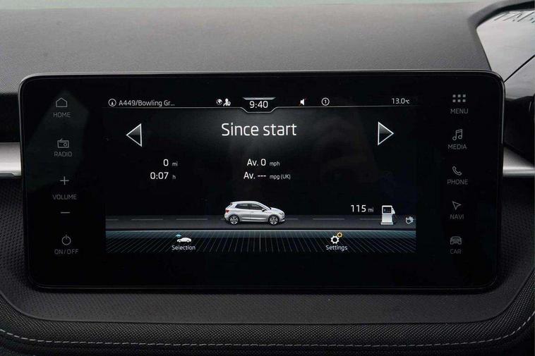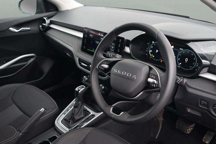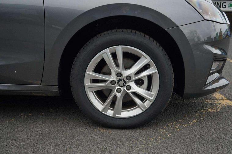 Advanced driver attention and drowsiness monitor, Bluetooth connection, Driver alert system, Electromechanical power steering, Exterior temperature gauge, Service interval indicator, Traffic sign recognition, Virtual cockpit with 10.25" colour display, Wireless SmartLink for Apple CarPlay and Android Auto, 6 Speakers (4 in front and 2 in rear), 9.2" colour display skoda navigation system with voice control and web radio, Auxiliary socket for external MP3 player, DAB digital radio reception, Auto dimming rear view mirror, Body colour door mirrors, Body coloured bumpers, Chrome window surround, Door mirror integrated indicators, Front and rear electric windows, Front window wiper intermittent control, Headlight range control - Automatic, Ice scraper in fuel cap, LED 3rd brake light, LED daytime running lights with coming and leaving home feature, LED rear lights, Privacy glass, Rear LED fog light, Rear side wing doors, Rear window wiper with washing nozzles, Roof mounted spoiler, SKODA tailgate lettering in chrome, Unique dark chrome design logo on alloy wheels, 2 LED reading lights in front and rear, 3 rear headrests, Backrest split and folding, Central console with fixed cup holder and storage box, Chrome handbrake release button, Comfort seats, Door sills with fabia badging, Dual zone air conditioning with climatronic electronic control, Fabric upholstery, Front centre armrest, Gearshift knob/handle in leather, Grain satin black interior door handles, Hand brake lever handle in leather, Height adjustable front headrests, Height adjustable front seats, Height adjustable steering wheel, ISOFIX and TopTether anchorage points to the outer rear seats, ISOFIX and TopTether on the front passenger seat, Luggage compartment lighting, Manually adjustable lumbar support in front seats, Pollen filter, Rear seat bench unsplit, Single front passenger seat, Skoda lettering on steering wheel, Storm grey headlining, Sun visors with mirror and airbag label on passenger side, Textile floor mats, Ticket holder, Umbrella in drivers door, Ambient lighting pack - Fabia Hatchback, 3-point height adjustable front seats belts with pretensioner and force limiter, Automatic warning lights in case of crash, Driver and passengers airbag with switch off function, e-Call+, ESC including ABS, MSR, ASR, EDS, HBA and XDS, Front and rear seat belt warning, FRONT ASSIST (AEB City and AEB Inter Urban), Front side airbags, Head airbags, Hill hold control, One tone horn, Pedestrian protection, Three rear 3-points safety seat belts with pretensioner and force limiter including stop function for outer rear seat belts, Tyre pressure monitoring system, Anti-theft alarm system including immobiliser, interior monitoring, backup horn, and towing protection, Central locking with radio remote control, interior controls, SAFE function and 2 foldable keys, Chrome edged air vents, Grain satin black central console cover, Metallic grey upper decorative trim, Satin black door and side trim panel in front, Textile microsuede grey lower decorative trim with art grey stitching, Anti-theft wheel bolts protection, Super-low rolling resistance tyres,