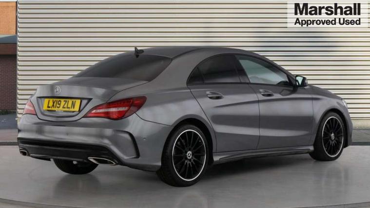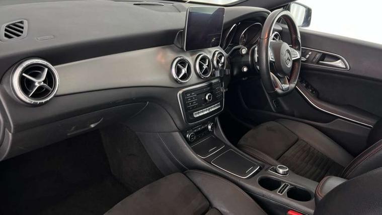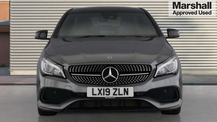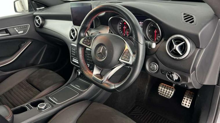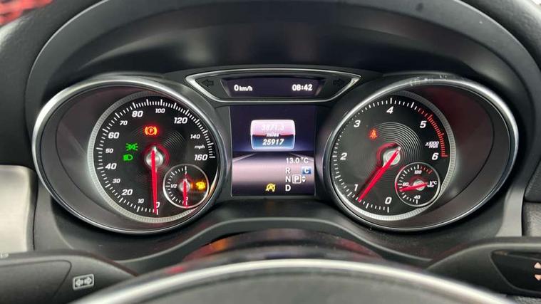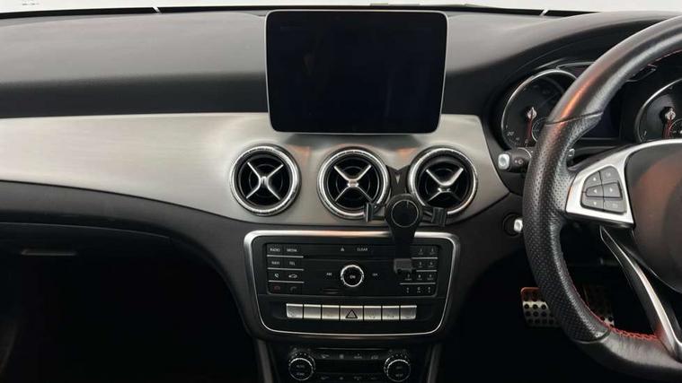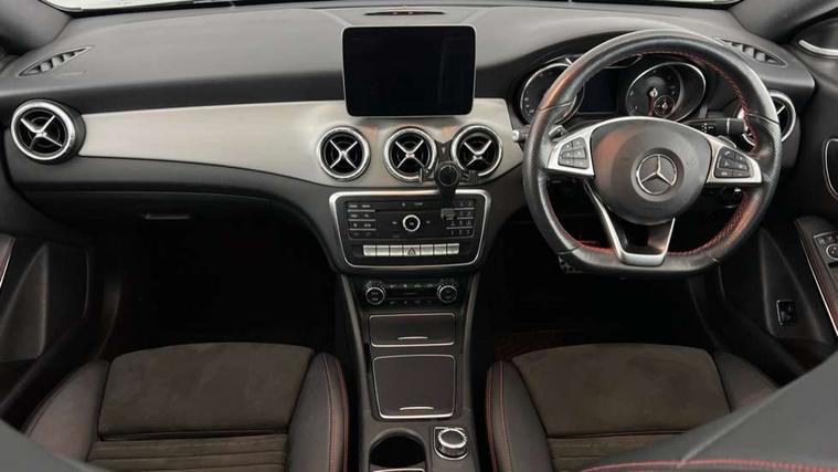8" colour display screen, Active park assist, Attention assist, Bluetooth system, Direct steering, Door/boot open warning light, DYNAMIC SELECT with a choice of driving modes (ECO, Comfort, Sport, Sport+ and Individual), ECO start/stop function, Front and rear parking sensors, Lamp failure indicator, Low fluid warning light, Outside temperature gauge, Reversing camera, Service indicator (ASSYST), Trip computer, Diesel particulate filter, Lowered comfort suspension, Media interface, Mercedes Audio 20 radio/single CD, USB connection, Adaptive brake lights, AMG body styling, Auto dimming driver's door mirror, Auto dimming rear view mirror, Automatic headlights, Automatic rain sensing wipers, Black high gloss beltline, Body colour bumpers, Body colour door handles, Body colour side skirt, Diamond grille with pins in chrome and single louvre in high-gloss black with chrome inserts, Electric adjustable heated door mirrors, Electric folding door mirrors, Electric panoramic sliding sunroof, Front and rear electric windows, Front door courtesy lamps, Heated rear window with timer, High gloss black door mirror housing, LED headlights with LED daytime running lights, LED Indicators, LED tail lamp, LED third brake light, Privacy glass, Rear fog lights, 1/3 to 2/3 split folding rear seats, 3 spoke flat bottom multi-function sports leather steering wheel in black with topstitching in red, Auto Mercedes-Benz child seat recognition sensor, Brushed stainless steel sports pedals with rubber studs, Centre console with cupholders, Courtesy light in boot, Door sill illumination, Electric memory seats, Front centre armrest with storage box, Front footwell lights, Front head restraints, Front seat cushion length adjustment, Front sports seats, Height adjustable front seats, Height/reach adjustable steering column, Illuminated glovebox, Illuminated storage compartment, Isofix rear child seat fastenings, Load securing rings in luggage compartment, Reading lights, Rear footwell lights, Rear head restraints, Seat cushion angle adjustment, Sunvisors with illuminated vanity mirrors, Thermotronic luxury automatic two zone climate control, Mirror pack - CLA, 3x3 point rear seatbelts, ABS with Brake Assist, Active bonnet, Adaptive brake system, ASR, Brake pad warning light, Child lock for rear electric windows, Child proof door locks, Crash responsive emergency lighting, Drivers knee airbag, Dual stage driver/passenger airbags, Electronic parking brake, ESP curve dynamic assist, Front and rear seatbelt reminder, Front brake callipers with Mercedes Benz lettering, Front passenger airbag deactivation, Front passenger seat occupancy sensor, Front side airbags, Hill start assist, Tyre pressure monitoring system, Warning triangle and first aid kit, Window airbags, Anti theft alarm system, Chrome surround in electric key, Immobiliser, Keyless Go, Remote central locking, Chrome air vent surrounds, 18" AMG 10 spoke alloy wheels, Tirefit,