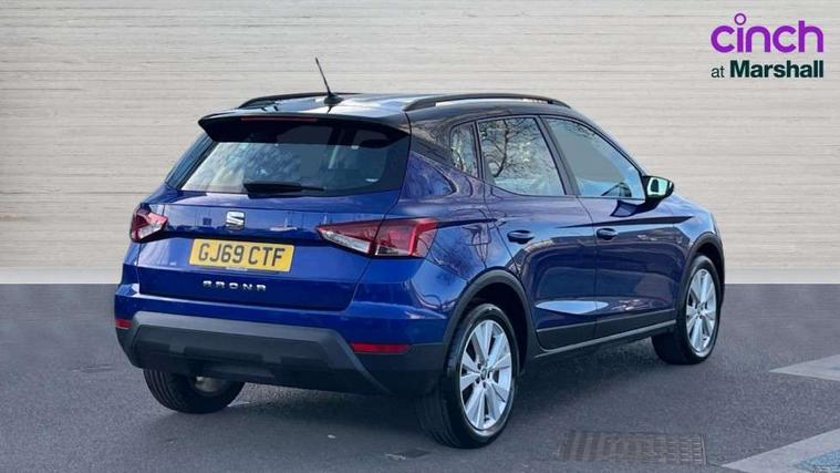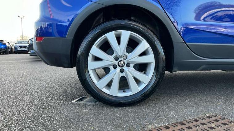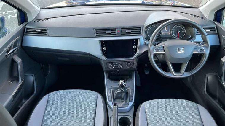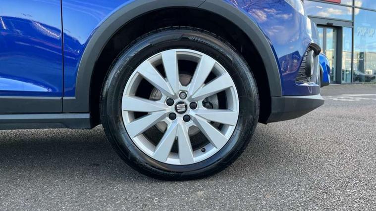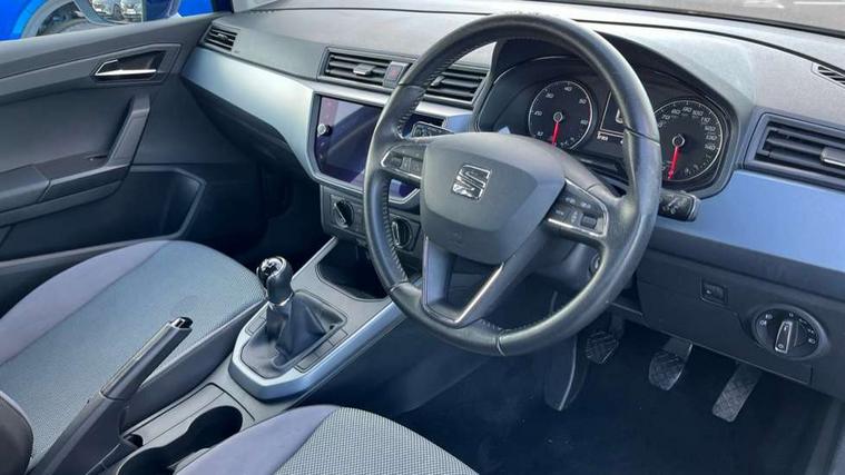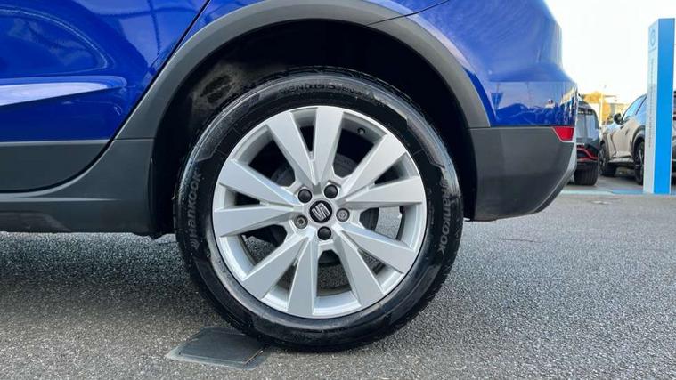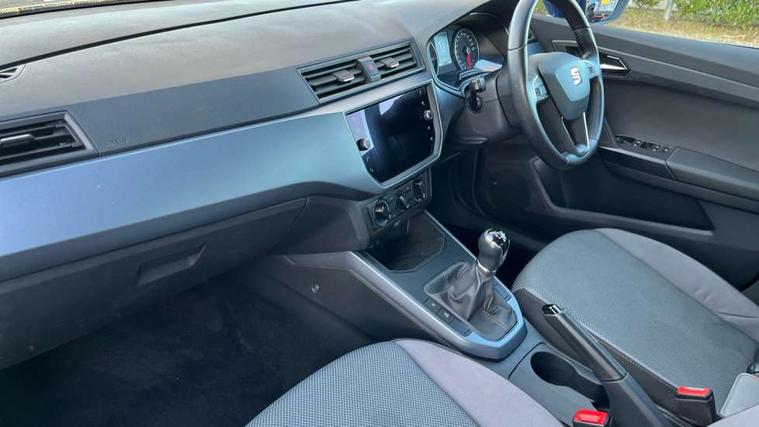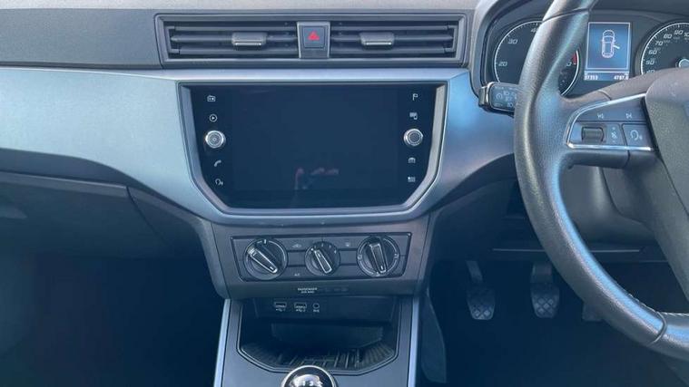 'Lights On' Reminder warning buzzer, Cruise control, Digital clock, Electric speed sensitive power steering, Full Link Smartphone Integration with Mirror Link, Apple Car Play, Google Android Auto with USB Type C cable for Apple and Android compatibility, Low fuel warning light, Outside temperature display, Rear parking sensor, RPM counter, Trip computer, Comfort suspension, 6 speakers, Bluetooth interface for hands free and audio streaming, DAB digital radio and AM/FM radio, Steering wheel mounted audio controls, Anti theft roof antenna, Automatic activation of hazard warning lights, Automatic headlights, Black roof rails, Black window trims, Body coloured bumpers, Body coloured door handle inserts, Body coloured door mirrors, Chrome front grille frame, Dimming rear view mirror, Electric adjustable door mirrors, Electric front/rear windows with one touch/auto up/down, Electric headlight adjustment, Front fog lights with cornering function and rear fog light, Hidden exhaust pipe, LED daytime running lights, LED rear tail lights and licence plate lights, Rear window wash/wipe, Visible VIN plate, Windshield wiper with intermittent control and potentiometer, 2 cupholders, 60/40 split folding rear seat, Air conditioning, Cloth upholstery, Double boot floor, Driver sunvisor with covered mirror + card holder, Dust/pollen filter, Front courtesy light with front reading lights, Gear shift indicator, Grey interior roof, Height adjustable front seats, Height/reach adjustable steering column, Illuminated boot, Instrument lighting with brightness control, Interior footwell lighting, ISOFIX points in outer rear seats with top tether anchorage points, Leather steering wheel/gear knob/handbrake, Multi-colour ambient interior lighting, Passenger sunvisor with vanity mirror, Two front and three rear height adjustable headrests, Connectivity pack plus - Arona, Interior chrome pack - Arona, 3 point seatbelts on all rear seats, ABS, Active front headrests, Child locks on rear doors, Driver and front passenger airbags with front passenger airbag de activation, front side and curtain airbags, Electronic stability control, Emergency Brake Assist (EBA) and front assist, Front and rear seatbelt reminder, Hill hold control, Multi-Collision braking, Tiredness recognition system, Traction control, Tyre pressure monitoring system, 2 folding remote keys with window open/close function, Electronic engine immobiliser, Locking wheel bolts, Remote central locking + deadlocks, Interior chrome line trim, Plastic grey dashboard, 17" Dynamic alloy wheels,