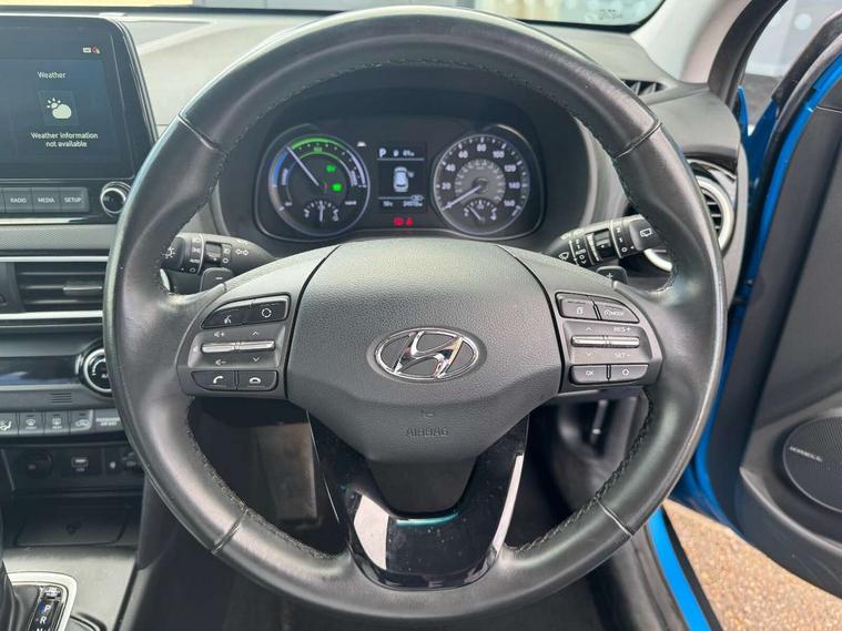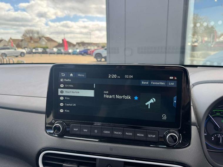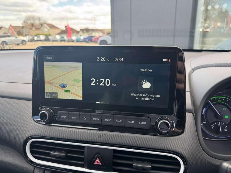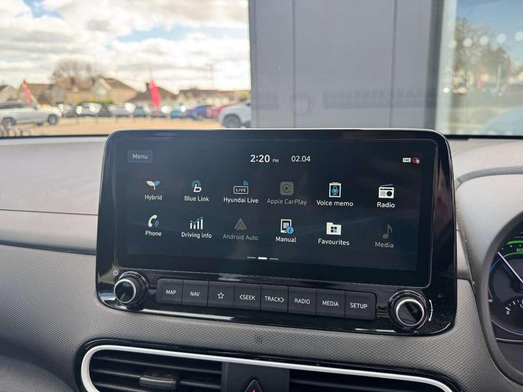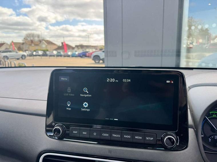 10.25" touchscreen satellite Navigation with Bluelink and Mapcare, Bluetooth system, Cruise control + speed limiter, Digital clock, Drive mode selector, Driver attention alert system, Driver's supervision instrument cluster with 3.5" LCD display, Lane keep assist, Parking system with rear camera and guidance system, PAS, Rear parking sensor, Smartphone integration with Apple CarPlay and Android auto, Smartphone wireless charging plate, Windscreen washer fluid sensor and warning indicator, DAB Digital radio, Krell premium audio system with 8 speakers and subwoofer, RDS radio with MP3 player, Steering wheel mounted audio/phone controls, USB/aux input socket, Auto dimming rear view mirror, Automatic headlights with dusk sensor, Automatic windscreen wipers with rain sensor, Black grille with chrome surround, Body colour bumpers, Body colour door mirrors and handles, Door mirror integrated indicators, Electric front/rear windows with drivers one touch/anti-trap, Electrically adjustable and heated door mirrors, Front fog lights, Halogen headlights, Halogen rear lights, LED brake lights, LED daytime running lights, Painted anthracite body garnish, Positioning Lights - LED, Privacy glass - Rear windows and tailgate, Rear roof spoiler with integrated LED brake light, Rear skid plate - silver, Roof rails, Solar glass with windscreen shade band, 12V Accessory socket in centre console, 60/40 split folding rear seat, Adjustable head restraints, Automatic climate control with defog system for front windscreen, Centre interior light, Cloth upholstery, Door scuff plate, Driver and passenger front seat pockets, Driver's electric adjustable lumbar support, Driver's seat height adjustment, Driver/passenger sunvisors and illuminated vanity mirrors, Front interior light, Height/reach adjustable steering column, Isofix rear child seat fastenings, Leather steering wheel and gear knob, Luggage compartment lighting, Luggage hooks, Luggage net, Metal paint door handles, Paddle shifter, Parcel shelf, Rear centre console with air vents, Sunglasses holder, Vertical adjustment rear head restraints, Trailer wiring package - Kona, 3x3 point rear seatbelts, Airbags - front, front side and curtain airbags, Anti-lock brake system (ABS), Childproof rear door locks, Downhill brake control, EBD + Brake Assist, Electric parking brake, Electronic stability control, Fasten seatbelt reminder, Front seatbelt pretensioners, Height adjustable front seatbelts, Hill start assist control (HAC), Passenger airbag deactivate switch, Traction control, Tyre pressure monitoring system, Alarm/immobiliser, Deadlocks, Folding key, Locking wheel nuts, Remote central locking, Smart key with keyless entry and engine start/stop button, 18" Alloy wheels, Tyre repair kit,