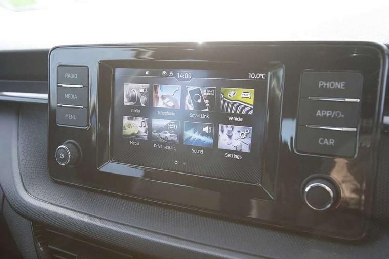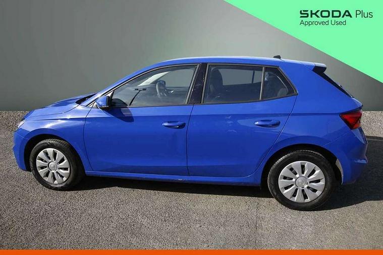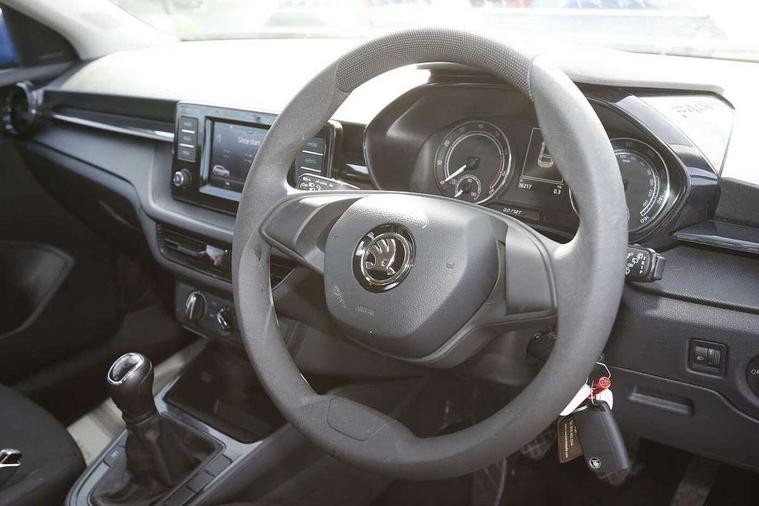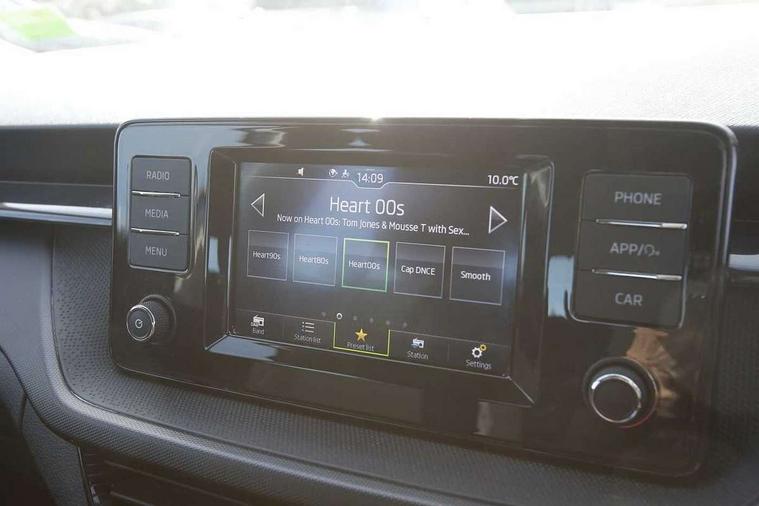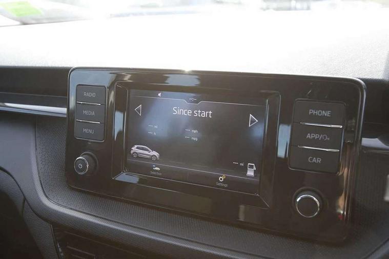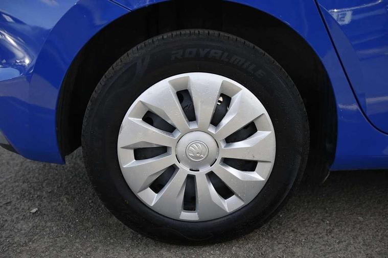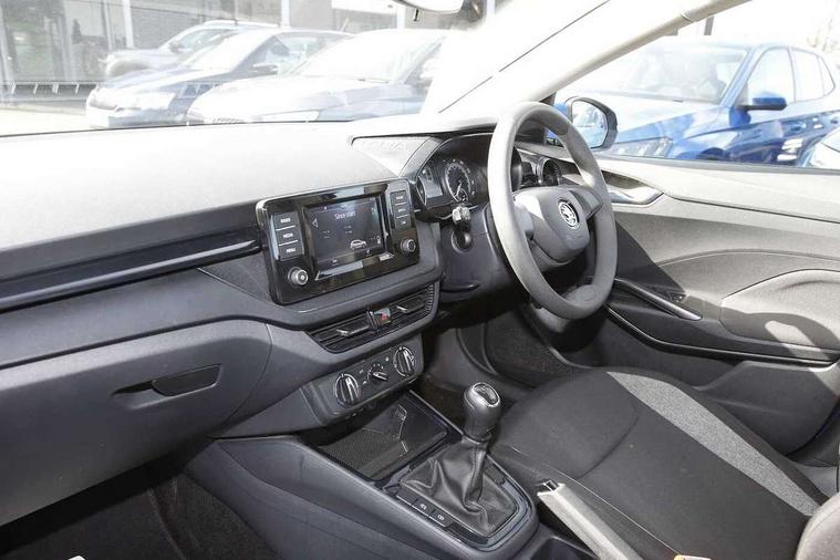 Bluetooth connection, Driver alert system - DAS, Electromechanical power steering, Exterior temperature gauge, Lane assist including road edge detection, Multifunction trip computer in black and white, Service interval indicator, Speed limiter, 2x USB-C in the front (for data transmission and charging), 4 speakers in front, Auxiliary socket for external MP3 player, DAB digital radio reception, Radio Swing with 6.5" colour display, Basic LED Headlights, Basic rear lights, Body colour door mirrors, Body coloured bumpers, Dimming rear view mirror with black frame, Door mirror integrated indicators, Electrically adjustable and heated door mirrors, Electrically adjustable front windows with function auto up/down, Front window wiper intermittent control, Headlight range control - Automatic, Ice scraper in fuel cap, LED daytime running lights with coming and leaving home feature, Mechanical adjustable rear windows, Rain sensor, Rear LED fog light, Rear side wing doors, Rear window wiper with washing nozzles, Roof mounted spoiler, SKODA tailgate lettering in chrome, Third brake light, 2 reading lights in front and 2 reading lights in rear, 2 spoke plastic steering wheel, 3 rear headrests, Backrest split and folding, Central console with fixed cup holder and storage box, Fabric upholstery, Gearshift knob/handle in plastic, Grain satin black interior door handles, Hand brake lever in plastic, Height adjustable drivers seat, Height adjustable front headrests, Height adjustable steering wheel, ISOFIX and TopTether anchorage points to the outer rear seats, ISOFIX and TopTether on the front passenger seat, Luggage compartment lighting, Manual air conditioning, Pollen filter, Rear seat bench unsplit, Single front passenger seat, Storm grey headlining, Sun visors with mirror and airbag label on passenger side, Ticket holder, 3-point height adjustable front seats belts with pretensioner and force limiter, Automatic warning lights in case of crash, Driver and passengers airbag with switch off function, e-Call+, ESC including ABS, MSR, ASR, EDS, HBA and XDS, Front and rear seat belt warning, FRONT ASSIST (AEB City and AEB Inter Urban), Front side airbags, Head airbags, One tone horn, Pedestrian protection, Three rear 3-points safety seat belts with pretensioner and force limiter including stop function for outer rear seat belts, Tyre pressure monitoring system, Anti-theft alarm system including immobiliser, interior monitoring, backup horn, and towing protection, Central locking with radio remote control, interior controls, SAFE function and 2 foldable keys, Black painted air vents, Glossy black decorative trim, Grain satin black central console cover, Grain satin black lower decorative trim, Satin black door and side trim panel in front, 15" Calisto silver steel wheels, Standard wheel bolts, Super-low rolling resistance tyres,