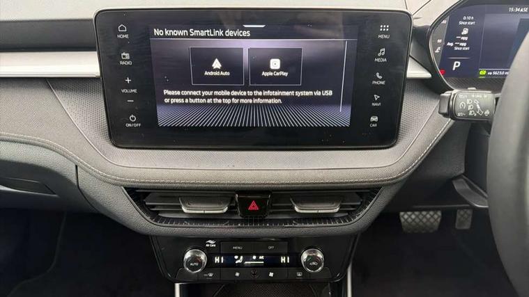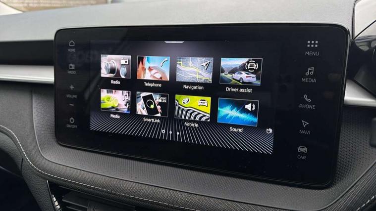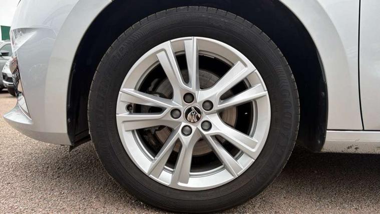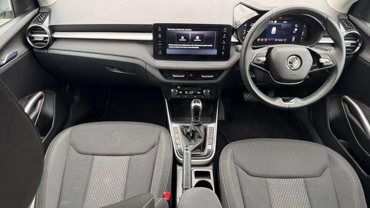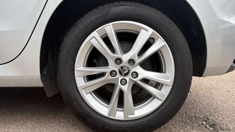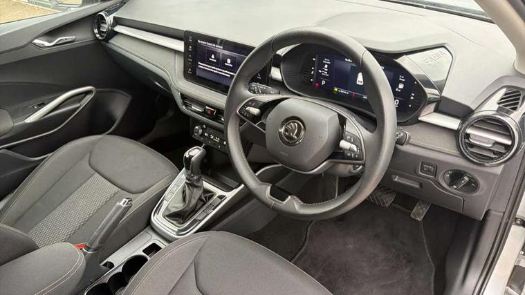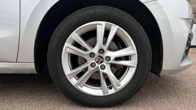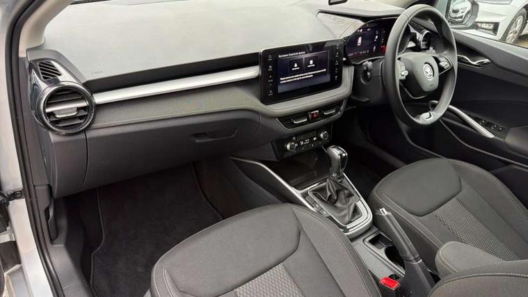 Advanced driver attention and drowsiness monitor, Bluetooth connection, Electromechanical power steering, Exterior temperature gauge, Service interval indicator, Traffic sign recognition, Virtual cockpit with 10.25" colour display, Wireless SmartLink for Apple CarPlay and Android Auto, 6 Speakers (4 in front and 2 in rear), 9.2" colour display skoda navigation system with voice control and web radio, Auxiliary socket for external MP3 player, DAB digital radio reception, Auto dimming rear view mirror, Body colour door mirrors, Body coloured bumpers, Chrome window surround, Door mirror integrated indicators, Front and rear electric windows, Front window wiper intermittent control, Headlight range control - Automatic, Ice scraper in fuel cap, LED daytime running lights with coming and leaving home feature, LED rear lights, Privacy glass, Rear LED fog light, Rear side wing doors, Rear window wiper with washing nozzles, Roof mounted spoiler, SKODA tailgate lettering in chrome, Third brake light, 2 reading lights in front and 2 reading lights in rear, 3 rear headrests, Backrest split and folding, Central console with removable cup holder and storage box, Chrome handbrake release button, Comfort seats, Door sills with fabia badging, Dual zone air conditioning with climatronic electronic control, Fabric upholstery, Front centre armrest, Gearshift knob/handle in leather, Hand brake lever handle in leather, Height adjustable front headrests, Height adjustable front seats, Height adjustable steering wheel, ISOFIX and TopTether anchorage points to the outer rear seats, ISOFIX and TopTether on the front passenger seat, Luggage compartment lighting, Manually adjustable lumbar support in front seats, Metallic grey interior door handles, Pollen filter, Rear seat bench unsplit, Single front passenger seat, Storm grey headlining, Sun visors with mirror and airbag label on passenger side, Textile floor mats, Ticket holder, Umbrella in drivers door, 3-point height adjustable front seats belts with pretensioner and force limiter, Automatic warning lights in case of crash, Driver and passengers airbag with switch off function, e-Call+, ESC including ABS, MSR, ASR, EDS, HBA and XDS, Front and rear seat belt warning, FRONT ASSIST (AEB City and AEB Inter Urban), Front side airbags, Head airbags, Hill hold control, One tone horn, Pedestrian protection, Three rear 3-points safety seat belts with pretensioner and force limiter including stop function for outer rear seat belts, Tyre pressure monitoring system, Anti-theft alarm system including immobiliser, interior monitoring, backup horn, and towing protection, Central locking with radio remote control, interior controls, SAFE function and 2 foldable keys, Chrome edged air vents, Metallic grey central console cover, Metallic grey upper decorative trim, Satin black door and side trim panel in front, Textile microsuede grey lower decorative trim with art grey stitching, Anti-theft wheel bolts protection, Super-low rolling resistance tyres,