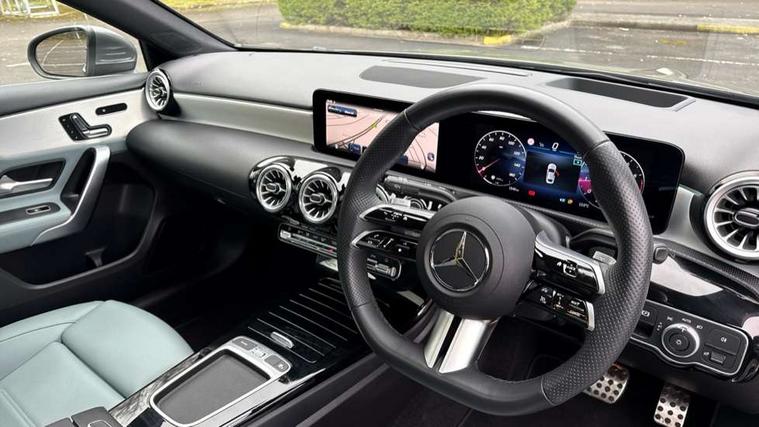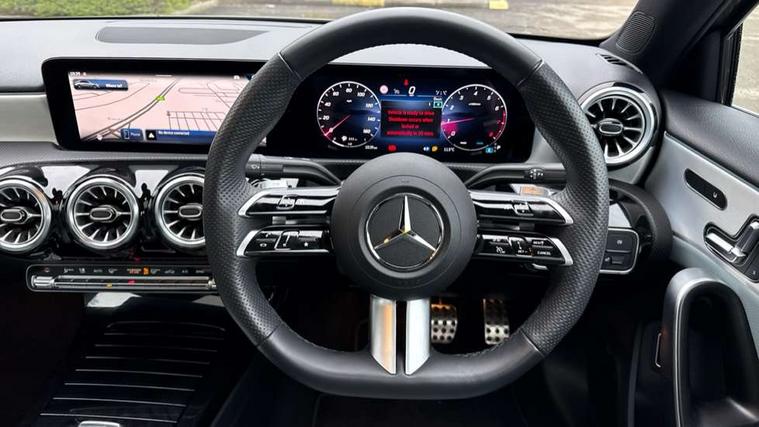10.25 inch touchscreen central media display, 10.25" Digital instrument cluster display screen, Attention assist, Brake pad wear indicator warning light, Car wash mode, Direct steering, Direction indicators with lane change function, Dual bluetooth interfaces, DYNAMIC SELECT with a choice of driving modes (ECO, Comfort, Sport and Individual), ECO start/stop function, Engine start/stop button, Fluid level warning indicator for fuel, oil, coolant and washer fluid, Hard-disk navigation, Head up Display, Hey Mercedes Voice activation, Lamp failure indicator, MBUX augmented reality for navigation, MBUX Interior assistant, Mercedes me connect including emergency call system, accident recovery, breakdown and maintenance management, Mercedes me remote services, Outside temperature gauge, Owners manual in English, Pre-installation of private car share, Preinstallation for Mercedes Benz link, Remote boot closing, Service indicator (ASSYST), Smartphone integration with Apple CarPlay and Android auto, Speed sensitive power steering, Traffic sign assist, Trip computer in multifunction display with current consumption indicator, Wireless charging, Lowered comfort suspension, DAB Digital radio, MBUX multimedia system, Mercedes Benz advanced sound system (225 W) with 10 speakers, 1 central speaker, speakers on doors, a tweeter on door, one sub woofer + boost amplifier, 4 Electric Front and Rear windows, Adaptive brake lights, AMG body styling - AMG front apron with front splitter and AMG rear apron and visible exhaust tailpipe trim elements, Body colour bumpers, Body colour door handles with chrome inserts, Body colour side skirt, Body coloured door mirrors, Chrome beltline strips, Diamond radiator grille with pins in fine star pattern, Electric adjustable and heated door mirrors with integrated LED side indicators, Exhaust system with 2 visible tailpipe trim elements and rear apron, Headlamp assist automatic headlamp activation, Heat insulating dark tinted rear and rear side windows, Heated glass rear windscreen + timer control, LED daytime running lights, LED tail lamp, Multibeam LED headlamps with adaptive highbeam assist and cornering function, Panoramic sliding sunroof, Privacy glass, Radio aerial, Rain sensing windscreen wipers with two sensitivity settings, Rear boot, Rear fog lights, Rear side wing doors, Surround lighting with logo projection, Third brake light featuring LED technology, Window line trim strip in chrome, 3 seat bench in 2nd row, 3 Spoke flat bottom leather multi function steering wheel with perforated leather in grip area, 40:20:40 split folding rear seats, Air conditioning - Two zone thermotronic luxury automatic climate control with display, Automatic child seat recognition sensor, Black air vents with surround in silver chrome, Black roof lining, Brushed stainless steel sports pedals with rubber studs, Electrically adjustable front memory seats including lumbar support and backrest inclination, Floor mats with AMG lettering, Front centre armrest with stowage, Front seat backs luggage nets, Front sports seats with adjustable head restraints, Galvanished gear shift paddles on steering wheel, Heated front seats, Height/reach adjustable steering column, Illuminated Mercedes Benz lettering front door sills with changeable cover, Interior lighting - 64 colour Ambient lighting, Interior mirror with reading lamps in black and frameless, Rear armrest with 2 cupholders, Seat occupancy sensor for front passenger seat, Single front passenger seat, Stowage compartment in centre console with retractable cover, Sunvisors with illuminated vanity mirrors, Twin front cupholders, Keyless go comfort pack - A Class, Light and sight pack - A Class, Mirror package - A Class, Parking pack with 360 degree camera - A Class, Seat comfort pack - A Class, USB pack plus - A Class, 3 rear 3 point seatbelts, ABS with Brake Assist, Active bonnet, Adaptive brake assist with hold function and hill start assist, Black seatbelts, Bonnet with power domes, Childproof locks manually operated for rear doors and electrically operated for rear power windows, Crash responsive emergency lighting, Driver and passenger head and side airbags, Drivers knee airbag, Dual stage driver/passenger airbags, Electronic parking brake, ESP curve dynamic assist, ESP with ASR, Exit warning, Front and rear seatbelt reminder, ISOFIX and top tether child seat fixing points in two outer rear seats, Tyre pressure monitoring system, Warning triangle and first aid kit, Window airbags, Alarm system/interior protection/immobiliser, Guard 360 degree vehicle protection, Remote central locking and crash sensor with emergency opening function, Light longitudinal grain aluminium trim, 19" AMG multi-spoke light alloy wheels, aerodynamically optimised, painted in titanium grey with high sheen finish, Summer tyres, Tirefit sealant kit,