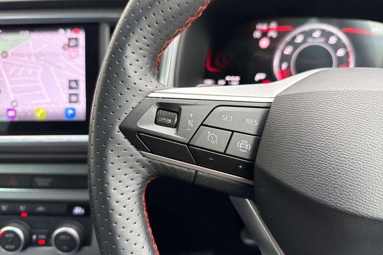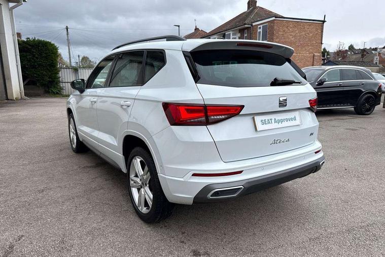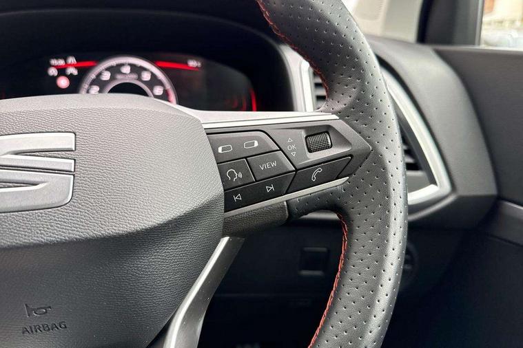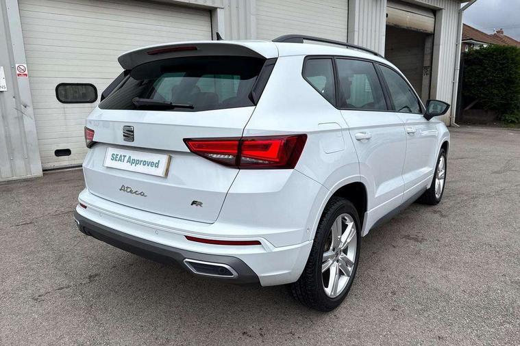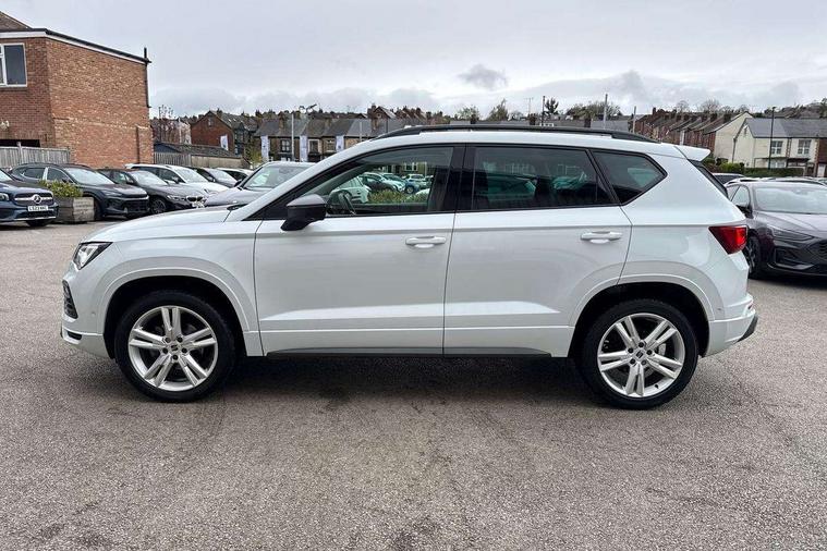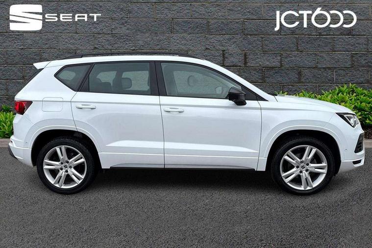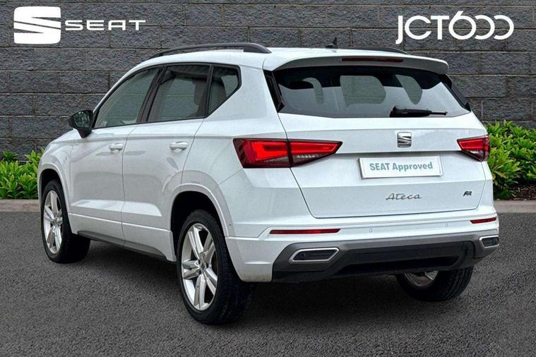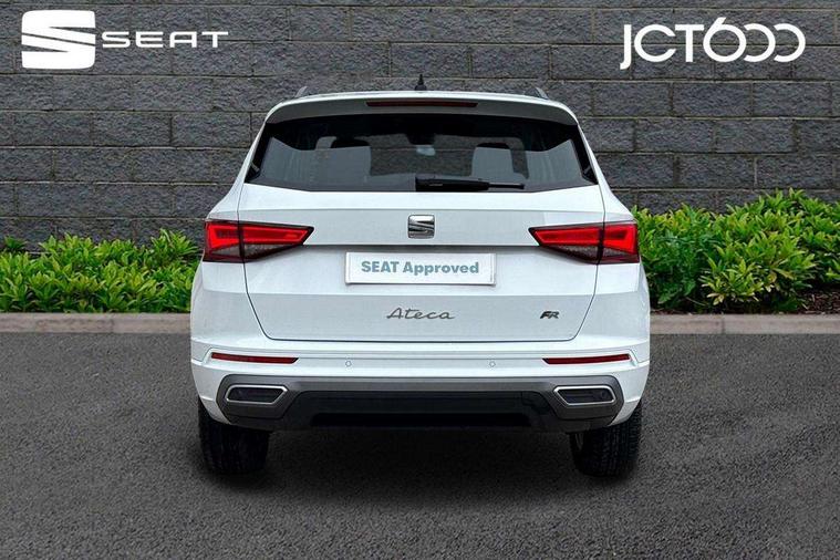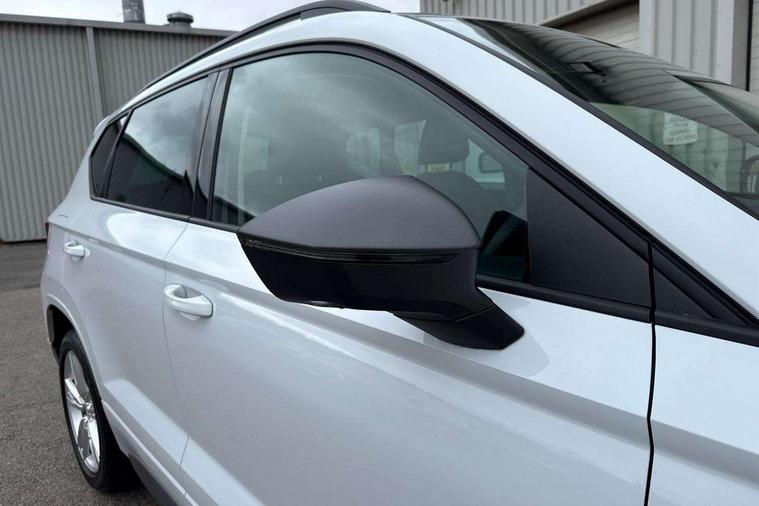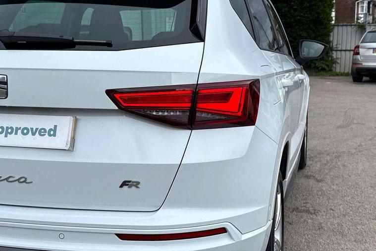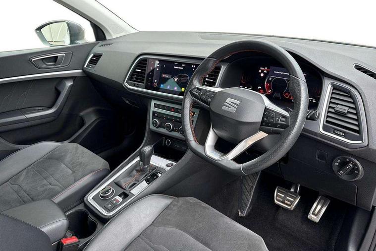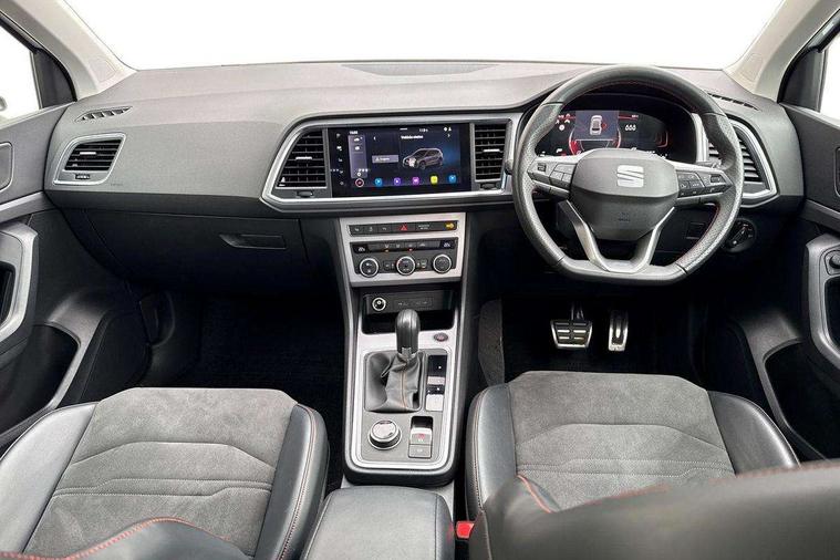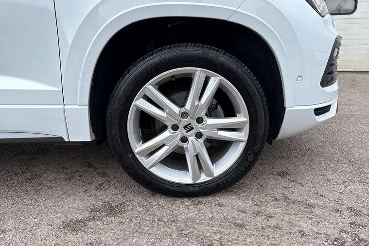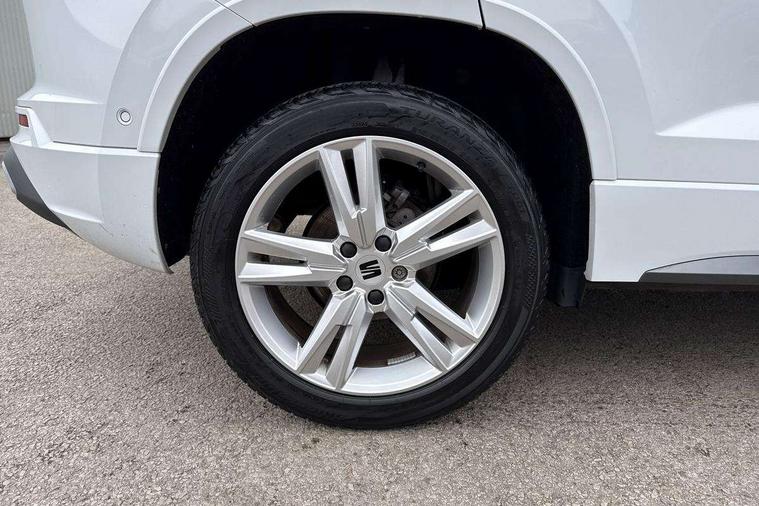 8" Digital cockpit, Colour multi-function on board computer display, Cruise control system with speed limiter, E-call, Outside temperature gauge, Progressive power assisted steering, SEAT drive profile with driving experience button - Normal, Sport, Eco and Individual mode, gearshift, steering and throttle response, Self parking functionality (includes front and rear parking sensors), Start/stop system, Tailgate, Trip computer, wired and wireless full link smartphone integration, Wireless phone charger, Steering wheel mounted audio/phone controls, Black roof rails, Black side window trim, Body colour bumpers, Body coloured wheel arch surrounds, Chrome front grille frame, Dark tinted rear windows, Daytime running lights, Door mirrors with welcome light silhouette, Dynamic headlight range control with self adjusting whilst driving, Electric adjustable/heated/folding door mirrors, Front and rear electric windows, Full LED headlamps with lens and LED front fog lamps with cornering function, Illuminated aluminium front door sill, LED 3rd brake light, LED rear tail lights with dynamic indicators, Rear exhaust tailpipe, Rear fog lights, Rear side wing doors, Rear wash/wipe, Roof spoiler, Variable front intermittent wipers, 12V socket in front, 3 seat bench in 2nd row, 60/40 split folding rear seat, Aluminium pedals, Dinamica upholstery with front comfort seats, Drawer under right front seat, Dual zone climate control, Front and rear head restraints, Front centre armrest, Front seat back storage pockets, Height adjustable driver and passenger seat with lumbar adjustment, ISOFIX points in outer rear seats with top tether anchorage points, Leather sports steering wheel and gear knob, Rear armrest and easy back seat release mechanism from boot, Single front passenger seat, Steering wheel mounted gearshift paddles, Convenience pack - Ateca, Interior lighting pack - Ateca, Navigation system pack with DAB - Ateca, Safety and driving pack with attention and drowsiness assist - Ateca, 3x3 point rear seatbelts, ABS, Traction control system (TCS), Electronic stability control (ESC) and Electronic differential lock system (XDS), Airbags - Driver and front passenger airbag with deactivation, front side, two curtain and driver's knee airbags, Electric parking brake with auto hold function, Front and rear seatbelt reminder, Front assist with autonomous emergency braking, Hill hold control, Manual rear child locks, Single tone horn, Tiredness recognition system, Tyre pressure monitoring system, Alarm, Keyless entry, Locking wheel bolts, Remote central locking, Chrome interior detailing, 18" Brillaint silver alloy wheels,