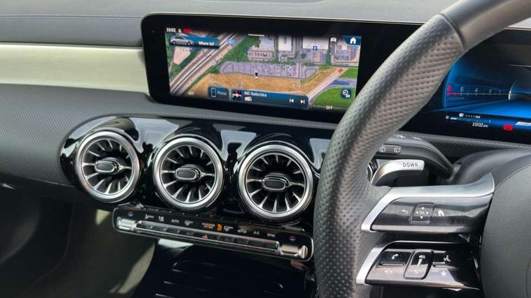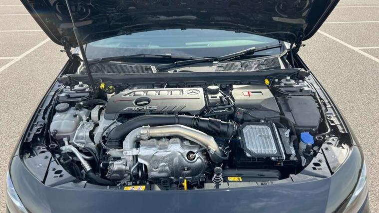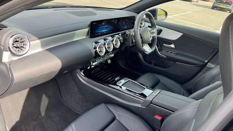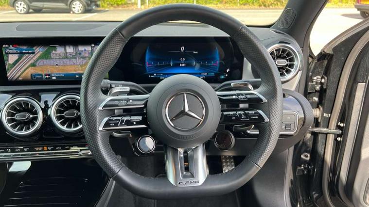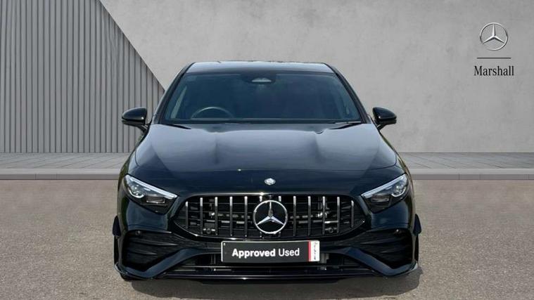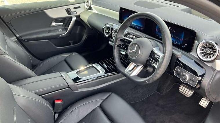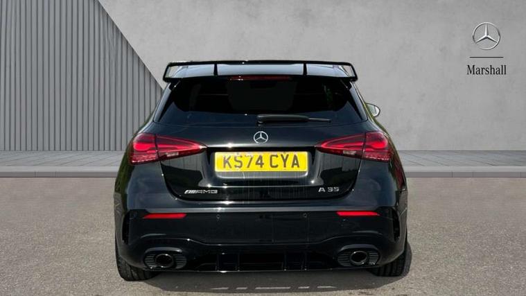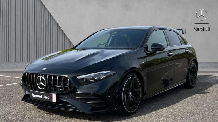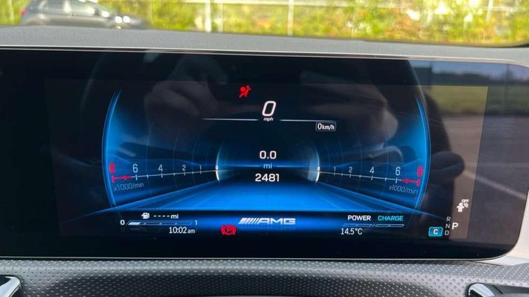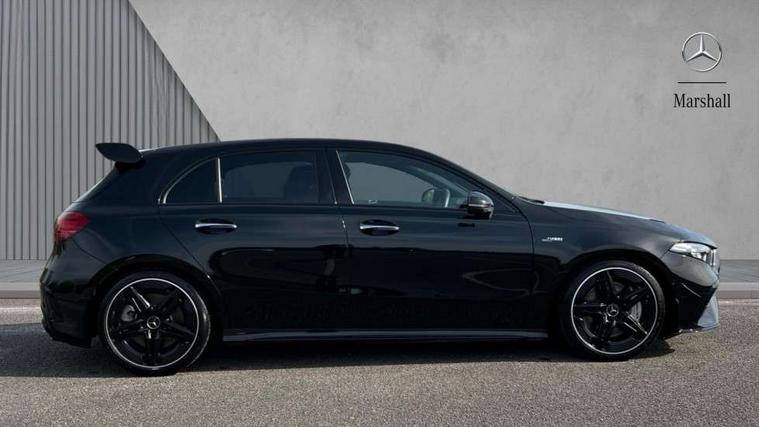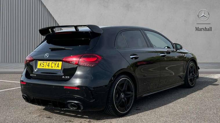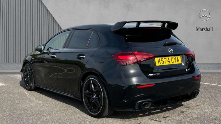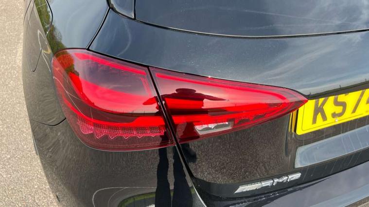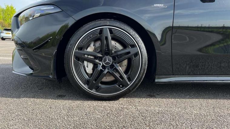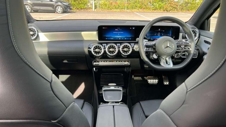 10.25 inch touchscreen central media display, 10.25" Digital instrument cluster display screen, Attention assist, Brake pad wear indicator warning light, Car wash mode, Direct steering, Direction indicators with lane change function, Dual bluetooth interfaces, DYNAMIC SELECT with driving programs (Slippery, Comfort, Sport, Sport+ and Individual), Easy pack tailgate hands-free access, ECO start/stop function, Engine start/stop button, Fingerprint scanner, Fluid level warning indicator for fuel, oil, coolant and washer fluid, Fluorescent jacket for driver, Hard-disk navigation, Head up Display, Hey Mercedes Voice activation, Lamp failure indicator, MBUX augmented reality for navigation, MBUX Interior assistant, Mercedes me connect including emergency call system, accident recovery, breakdown and maintenance management, Mercedes me remote services, Outside temperature gauge, Owners manual in English, Pre-installation of private car share, Preinstallation for Mercedes Benz link, Remote boot closing, Service indicator (ASSYST), Smartphone integration with Apple CarPlay and Android auto, Speed sensitive power steering, Tailgate, Traffic sign assist, Trip computer in multifunction display with current consumption indicator, Wireless charging, AMG suspension, Suspension with adaptive damping system, DAB Digital radio, MBUX multimedia system, Mercedes Benz advanced sound system (225 W) with 10 speakers, 1 central speaker, speakers on doors, a tweeter on door, one sub woofer + boost amplifier, 4 Electric Front and Rear windows, Adaptive brake lights, AMG body styling - AMG front apron with front splitter and AMG rear apron and visible exhaust tailpipe trim elements, AMG Front apron with flics as air deflector elements on the outer air intakes, AMG radiator grille with twin blade lamella and AMG Lettering, AMG Rear apron with specific diffuser look with four vertical fins and two round chrome plated tailpipe trim elements with a diameter of 90 mm, AMG spoiler lip on roof, Beltline strips in High gloss Black, Body colour bumpers, Body colour door handles with chrome inserts, Body colour side skirt, Electric adjustable and heated door mirrors with integrated LED side indicators, Front splitter and trim elements on the louvres in the outer air inlets, Front wings wheel arches with TURBO 4MATIC lettering, Headlamp assist automatic headlamp activation, Heat insulating dark tinted rear and rear side windows, Heated glass rear windscreen + timer control, LED daytime running lights, LED High level third brake light, LED tail lamp, Multibeam LED headlamps with adaptive highbeam assist and cornering function, Panoramic sliding sunroof, Privacy glass, Radio aerial, Rain sensing windscreen wipers with two sensitivity settings, Rear fog lights, Rear side wing doors, Rear windscreen wiper, Surround lighting with logo projection, Wider wheel arches for AMG wheels, Window line trim strip in black, 3 seat bench in 2nd row, 40:20:40 split folding rear seats, Air conditioning - Two zone thermotronic luxury automatic climate control with display, AMG floor mats, AMG Performance steering wheel in nappa leather, Automatic child seat recognition sensor, Black air vents with surround in silver chrome, Black roof lining, Brushed stainless steel sports pedals with rubber studs, Electrically adjustable front memory seats including lumbar support and backrest inclination, Front centre armrest with stowage, Front seat backs luggage nets, Height/reach adjustable steering column, Illuminated AMG front door sills with changeable cover, Interior lighting - 64 colour Ambient lighting, Interior mirror with reading lamps in black and frameless, Rear armrest with 2 cupholders, Seat occupancy sensor for front passenger seat, Silver coloured aluminium gear shift paddles on steering wheel, Single front passenger seat, Sports seats with integrated headrests, Stowage compartment in centre console with retractable cover, Sunvisors with illuminated vanity mirrors, Twin front cupholders, Aerodynamic pack - A Class, AMG night pack - A Class, Light and sight package - A Class, Mirror package - A Class, Parking pack with 360 degree camera - A Class, Seat comfort pack - A Class, USB pack plus - A Class, Winter pack - A Class, 3 rear 3 point seatbelts, ABS with Brake Assist, Active bonnet, Adaptive brake assist with hold function and hill start assist, Black seatbelts, Bonnet with power domes, Childproof locks manually operated for rear doors and electrically operated for rear power windows, Crash responsive emergency lighting, Driver and passenger head and side airbags, Drivers knee airbag, Dual stage driver/passenger airbags, Electronic parking brake, ESP curve dynamic assist, ESP with ASR, Exit warning, Front and rear seatbelt reminder, Front brake calipers with AMG lettering, ISOFIX and top tether child seat fixing points in two outer rear seats, Tyre pressure monitoring system, Warning triangle and first aid kit, Window airbags, Alarm system/interior protection/immobiliser, Guard 360 degree vehicle protection, Keyless entry lock/unlock, Keyless Go, Remote central locking and crash sensor with emergency opening function, Light longitudinal grain aluminium trim, 19" AMG 5 twin spoke light alloy wheels aerodynamically optimised painted in matt black with high sheen rim flange, Summer tyres, Tirefit sealant kit,