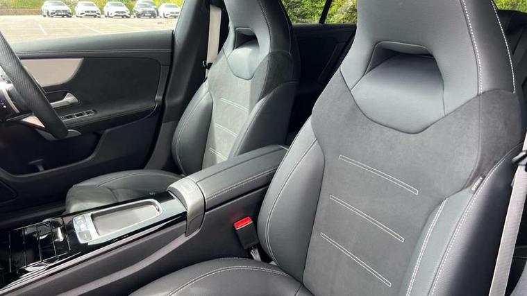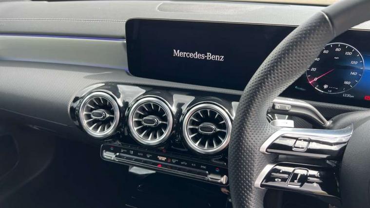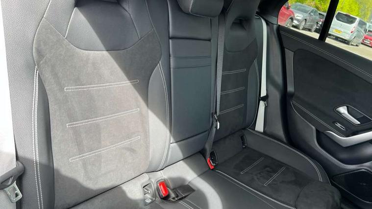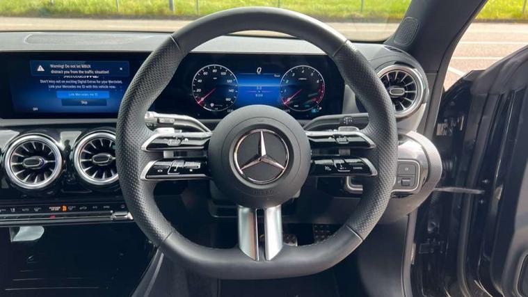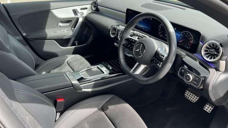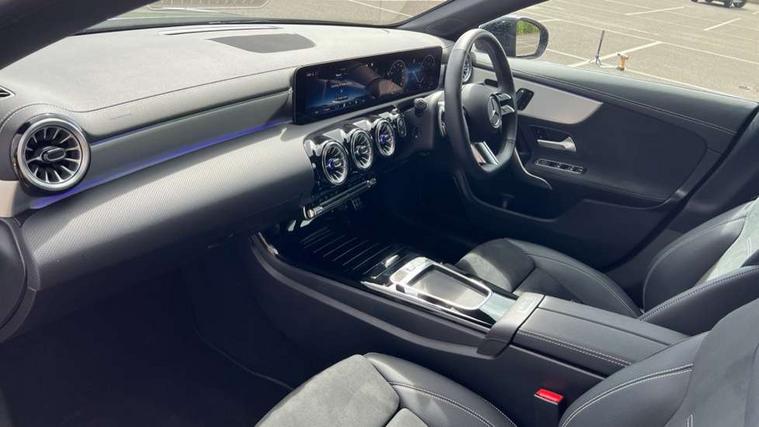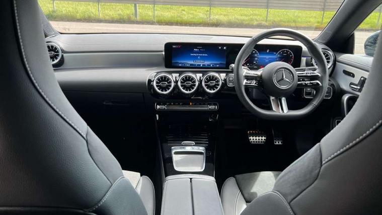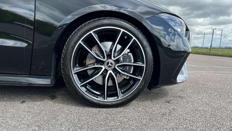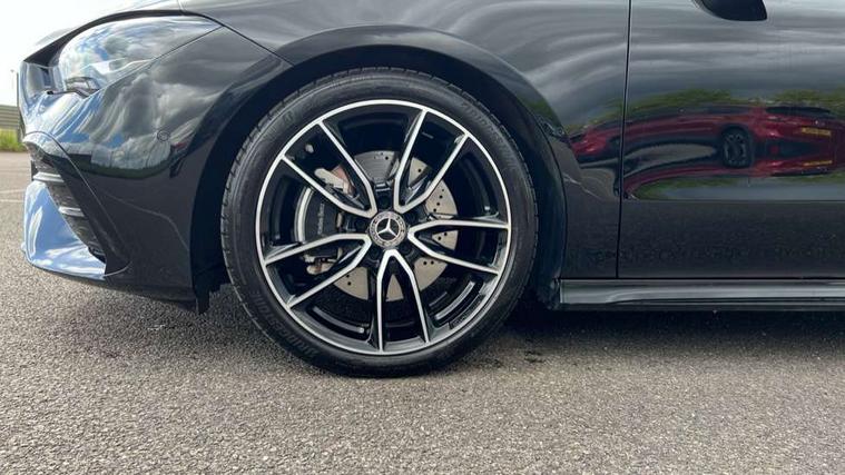 10.25 inch Instrument display with digital cockpit, 10.25 inch touchscreen central media display, Active lane keeping assist, Attention assist - Monitors steering behaviour and long journey fatigue, Blind spot assist, Bluetooth connection, Car wash mode, Cruise control with limiter, Direct steer system, DYNAMIC SELECT with a choice of driving modes (ECO, Comfort, Sport and Individual), ECO start/stop function, Fingerprint sensor, Fluid level warning indicator for fuel, oil, coolant and washer fluid, Hard-disk navigation, Hey Mercedes Voice activation, Lamp failure indicator, Mercedes me connect including emergency call system, accident recovery, breakdown and maintenance management, Mercedes me remote services, Outside temperature gauge, Owners manual in English, Pre-installation of private car share, Radio aerial integrated into front and rear windshields, Service indicator (ASSYST), Smartphone integration with Apple CarPlay and Android auto, Speed limit assist, Tailgate, Trip computer in multifunction display with current consumption indicator, Wireless charging in the front centre console, Comfort suspension with ride height lowering, Rear axle multi-link, DAB digital radio tuner, MBUX multimedia system, Mercedes Benz advanced sound system (225 W) with 10 speakers, 1 central speaker, speakers on doors, a tweeter on door, one sub woofer + boost amplifier, Pre installation for Mercedes Benz Link, Adaptive brake lights, AMG body styling with AMG front apron and rear apron and visible exhaust tailpipe in chrome trim elements, Body colour door handles, Electric windows, Electrically adjustable and heated door mirrors with integrated LED indicators, Exhaust system with 2 Visible tailpipe trim elements and rear apron with trim in chrome, Hand free access, Headlamp assist automatic headlamp activation, Heated glass rear windscreen + timer control, High level LED third brake light, Interior mirror with black reading lamps and frameless, LED high performance headlamps with integrated LED daytime running lights and adaptive highbeam assist, LED tail lamp, Privacy glass with dark tinting on rear side windows and rear window, Radiator grille with Mercedes-Benz pattern in chrome and central Mercedes star, single louvre in high-gloss black with chrome inserts, Rain sensing windscreen wipers with two sensitivity settings, Rear fog lamp, Rear side wing doors, Rear wiper, Variable front intermittent wipers, 3 seat bench in 2nd row, 3 twin spoke flattened multifunction steering wheel in nappa leather - horizontal twin spoke in high gloss black, vertical twin spoke in silver chrome, 40:20:40 split folding rear seat backrests, Air conditioning - Two zone thermotronic luxury automatic climate control with display, Air vents with surround in silver chrome, Artico man-made leather/Microcut microfibre upholstery, Automatic child seat recognition sensor, Black roof lining, Brushed stainless steel sports pedals with rubber studs, Electrically adjustable front memory seats including 4 way lumbar support, Floor mats with stitched AMG lettering, Fluorescent jacket, Front centre armrest with stowage, Galvanished gear shift paddles in silver chrome, Interior lighting - 64 colour Ambient lighting, Luggage net on driver/front passenger seat backrest, Manually height and reach adjustable steering column, Rear armrest with two integral cup holders for drinks, Rear head restraints, Single front passenger seat, Sport seats with fixed head restraints, Stowage compartment in centre console with retractable cover, Sunvisors with illuminated vanity mirrors, Twin front cupholders, Two outer rear seat isofix and top tether child seat fixing points, Keyless go comfort pack - CLA with easy pack tailgate, Light and sight pack - CLA, Mirror pack - CLA, Night package - CLA, Parking pack with reversing camera - CLA, Seat comfort pack - CLA, USB package plus - CLA, Winter pack - CLA, Active bonnet pedestrain safety measure which detects an impact and raises bonnet by 65mm, Active brake assist includes forward collision warning system with autonomous braking, Adaptive brake assist with hold function and hill start assist, Anti lock braking system (ABS) with brake assist, Bonnet with power domes, Brake calipers with Mercedes-Benz lettering, Brake pad wear warning indicator, Childproof locks manually operated for rear doors and electrically operated for rear power windows, Crash responsive emergency lighting, Crystal grey seat belts, Driver and front passenger head and sidebags, Driver and front passenger windowbags, Drivers knee airbag, Dual stage driver and front passenger airbags, Electric parking brake, Electronic stability programme with acceleration skid control, ESP curve dynamic assist, Exit warning, Front and rear seatbelt reminder, Front passenger seat occupancy sensor, Perforated front brake discs, Sports braking system, Three point rear seat belts, Tyre pressure monitoring system, Warning triangle and first aid kit, Alarm system with immobiliser and interior protection -Thatcham category 1, Guard 360 deg vehicle protection - tow away protection with visual, acoustic warning, interior monitoring, preinstallation for parking damage, Remote central locking and crash sensor with emergency opening function, Light aluminium with longitudinal grain interior trim, 19" AMG 5 twin spoke light alloy wheels painted in high gloss black with high sheen finish, Summer tyres, Tirefit tyre sealant kit,