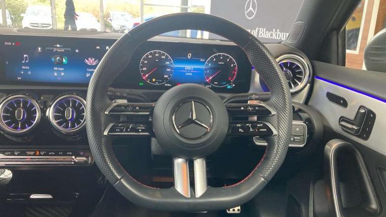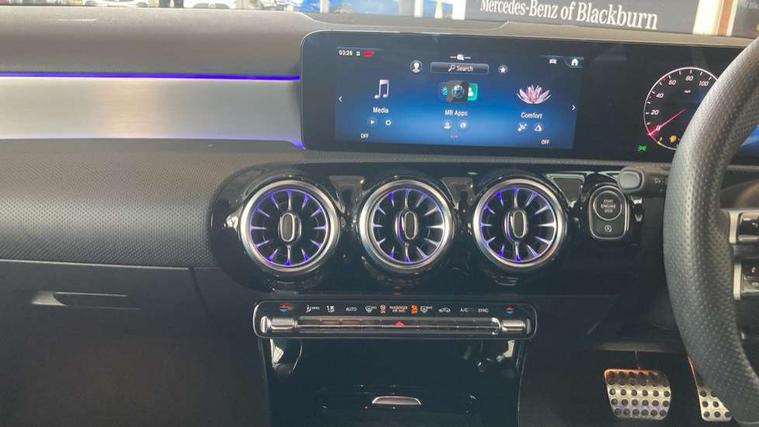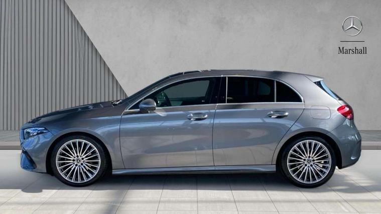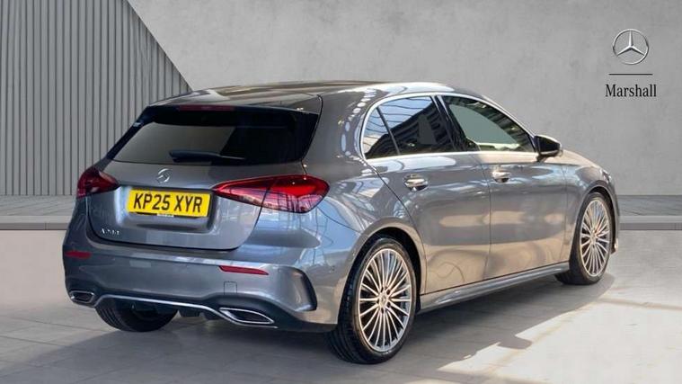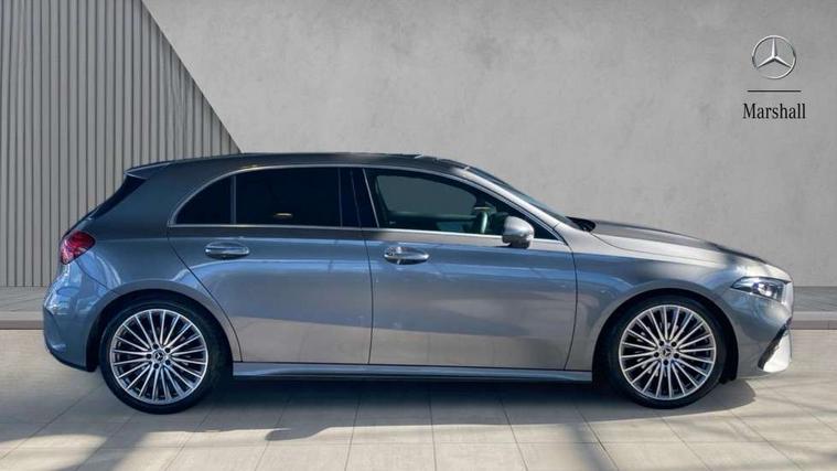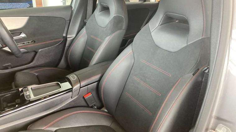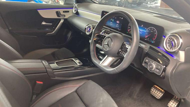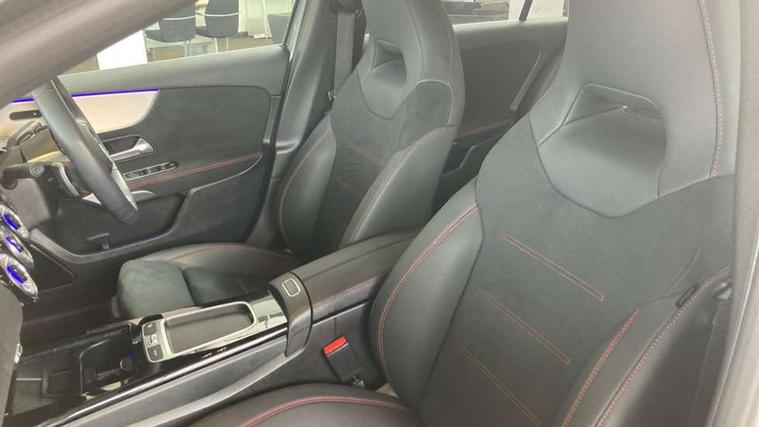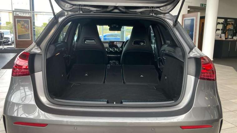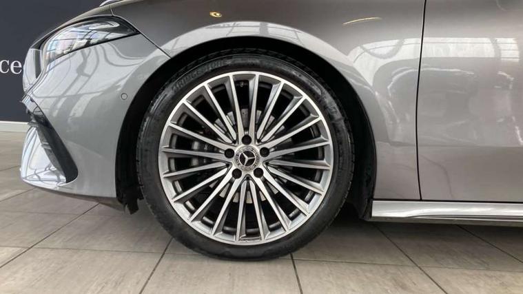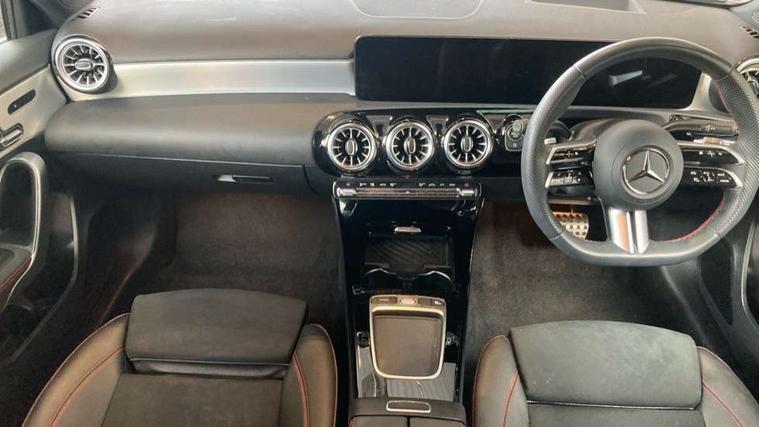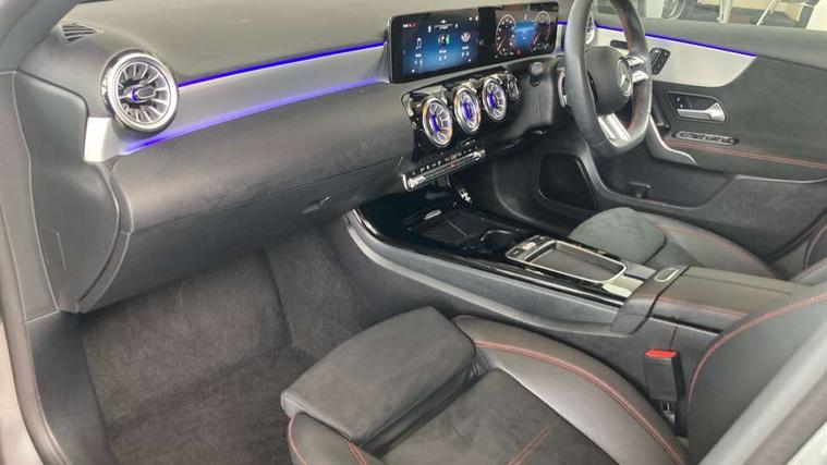10.25 inch touchscreen central media display, 10.25" Digital instrument cluster display screen, Attention assist, Brake pad wear indicator warning light, Car wash mode, Direct steering, Direction indicators with lane change function, Dual bluetooth interfaces, DYNAMIC SELECT with a choice of driving modes (ECO, Comfort, Sport and Individual), ECO start/stop function, Engine start/stop button, Fingerprint scanner, Fluid level warning indicator for fuel, oil, coolant and washer fluid, Fluorescent jacket for driver, Hard-disk navigation, Head up Display, Hey Mercedes Voice activation, Lamp failure indicator, Mercedes me connect including emergency call system, accident recovery, breakdown and maintenance management, Mercedes me remote services, Outside temperature gauge, Owners manual in English, Pre-installation of private car share, Remote boot closing, Service indicator (ASSYST), Smartphone integration with Apple CarPlay and Android auto, Speed sensitive power steering, Tailgate, Traffic sign assist, Trip computer in multifunction display with current consumption indicator, Wireless charging, Lowered comfort suspension, DAB Digital radio, MBUX multimedia system, Mercedes Benz advanced sound system (225 W) with 10 speakers, 1 central speaker, speakers on doors, a tweeter on door, one sub woofer + boost amplifier, 4 Electric Front and Rear windows, Adaptive brake lights, AMG body styling - AMG front apron with front splitter and AMG rear apron and visible exhaust tailpipe trim elements, Body colour bumpers, Body colour door handles with chrome inserts, Body colour side skirt, Chrome beltline strips, Diamond radiator grille with pins in fine star pattern, Electric adjustable and heated door mirrors with integrated LED side indicators, Exhaust system with 2 visible tailpipe trim elements and rear apron, Headlamp assist automatic headlamp activation, Heated glass rear windscreen + timer control, LED daytime running lights, LED High level third brake light, LED tail lamp, Multibeam LED headlamps with adaptive highbeam assist and cornering function, Panoramic sliding sunroof, Privacy glass, Radio aerial, Rain sensing windscreen wipers with two sensitivity settings, Rear fog lights, Rear side wing doors, Rear windscreen wiper, 3 seat bench in 2nd row, 3 Spoke flat bottom leather multi function steering wheel with perforated leather in grip area, 40:20:40 split folding rear seats, Air conditioning - Two zone thermotronic luxury automatic climate control with display, AMG floor mats, Artico man-made leather/Microcut microfibre upholstery, Automatic child seat recognition sensor, Black air vents with surround in silver chrome, Black roof lining, Brushed stainless steel sports pedals with rubber studs, Electrically adjustable front memory seats including lumbar support and backrest inclination, Front centre armrest with stowage, Front seat backs luggage nets, Galvanished gear shift paddles on steering wheel, Height/reach adjustable steering column, Illuminated Mercedes Benz lettering front door sills with changeable cover, Interior lighting - 64 colour Ambient lighting, Interior mirror with reading lamps in black and frameless, Rear armrest with 2 cupholders, Rear head restraints, Seat occupancy sensor for front passenger seat, Single front passenger seat, Sports seats with integrated headrests, Stowage compartment in centre console with retractable cover, Sunvisors with illuminated vanity mirrors, Twin front cupholders, Light and sight package - A Class, Mirror package - A Class, Night pack - A Class, Parking pack with 360 degree camera - A Class, Seat comfort pack - A Class, USB pack plus - A Class, Winter pack - A Class, 3 rear 3 point seatbelts, ABS with Brake Assist, Active bonnet, Adaptive brake assist with hold function and hill start assist, Bonnet with power domes, Childproof locks manually operated for rear doors and electrically operated for rear power windows, Crash responsive emergency lighting, Driver and passenger head and side airbags, Drivers knee airbag, Dual stage driver/passenger airbags, Electronic parking brake, ESP curve dynamic assist, ESP with ASR, Exit warning, Front and rear seatbelt reminder, Grey seatbelts, ISOFIX and top tether child seat fixing points in two outer rear seats, Tyre pressure monitoring system, Warning triangle and first aid kit, Window airbags, Alarm system/interior protection/immobiliser, Guard 360 degree vehicle protection, Keyless entry lock/unlock, Keyless Go, Remote central locking and crash sensor with emergency opening function, Light longitudinal grain aluminium trim, 19" AMG multi-spoke light alloy wheels, aerodynamically optimised, painted in black with high sheen rim flange, Summer tyres, Tirefit sealant kit,