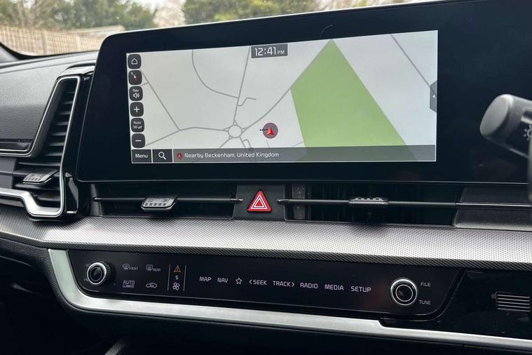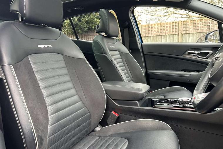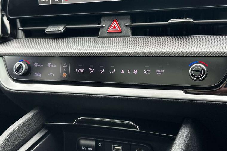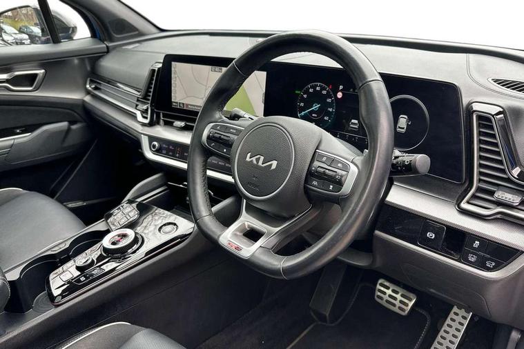 12.3" Display with navigation, 12.3" supervision colour cluster display, 360 degree around view monitor, Apple car play/Android Auto with voice control, Blind spot collision avoidance assist, Blind spot view monitor, Drive mode selector, E-call, Forward collision avoidance assist (FCA) - city/pedestrian/cyclist/junction covering, Front and rear parking sensors, Highway Driving Assist (HDA), Intelligent speed limit assist, Kia Connect (UVO), Lane Following Assist (LFA), Lane keep assist, Low washer fluid warning, Parking collision avoidance assist (PCA), Remote smart parking assist, Reversing camera system integrated into centre fascia screen, Smart cruise control with stop and go functionality, Smart power tailgate, Speed sensitive power steering, Trip computer, Windscreen washer level indicator, Wireless Smartphone charger, Intelligent Stop and Go, Bluetooth audio streaming, DAB Radio with MP3, Harman Kardon premium sound system, Rear USB port, Steering wheel mounted audio controls, USB C type charging ports on centre console, USB C type charging ports on side of front seats, USB port for connection of a media device, All round electric windows with drivers and front passenger auto up/down function, Automatic headlight control system, Automatic window defogger, Backlite glass heated with timer, Body colour and black bumper with silver accents, Body colour exterior door handles, Body colour radiator upper garnish and door garnish, Dual LED adaptive headlamps, Electric panoramic glass sunroof (Electric one touch with safety function), Electrically adjustable/heated/folding door mirrors with LED indicators, Front and rear chrome skid plates, Gloss black door mirrors, Gloss black radiator grille, Gloss black side sill and wheel arch body mouldings, Glossy black roof rack, High beam assist, Interior electrochromic mirror, LED daytime running lights, LED front fog lamps, LED High mounted stop light, LED rear combination lamp, Rain sensing wipers with aero blades, Rear fog lamp, Rear privacy glass, Rear side wing doors, Rear spoiler, Rear wiper, Satin finished beltline, Silver coloured inserts to bumpers, Tinted rear glass, Trailer stability assist, 10 way driver/8 way passenger electrically power adjustable seats, 12V power socket in front centre fascia and luggage compartment, 3 seat bench in 2nd row, 3 x passenger assist grips, 40/20/40 split folding rear seat, All-round height adjustable headrests, Ambient lighting, Black headlining, Centre console storage box, Cupholders in rear armrest, D-Shaped sports leather steering wheel and perforated inserts with GT-Line logo, Door courtesy lamps, Drink holder at centre armrest, Driver and front passenger side sunvisors with illuminated vanity mirrors, Driver seat memory function, Drivers seat power lumbar support, Front and rear door storage, Front seat and rear pockets, Front/rear centre armrests, Gear shift indicator, Glovebox illumination, Heated front and outer rear seats, Heated steering wheel, Interior door lock/unlock function, ISOFIX Child seat top tethers and anchor fixings outer rear seats, LED interior personal lamp, LED lighting in overhead console, Luggage area LED light, Luggage area load cover, Luggage net with hooks, Metal paint interior door handles, Paddle shift controls, Rear cabin light, Rear coat hooks, Single front passenger seat, Sports pedals, Suede leather upholstery, Three zone climate control, Tilt/telescopic adjustable steering wheel, Ventilated front seats, Ventilation ducts to rear compartment, Active front headrests, All round 3-point seatbelts, Anti-lock braking system (ABS), Dual front side airbags, Dual horn, Electronic parking brake, Electronic stability control with downhill brake control, Front passenger airbag cut-off switch, Front seatbelt pretensioners + load limiters, Height adjustable front seatbelts, Hill start assist control (HAC), Impact sensing auto door unlocking, Multi collision brake assist, Rear door child safety locks, Rear seat alert system, Traction control, Twin curtain airbags, Twin front airbags, Tyre pressure monitoring system, Advanced anti-theft system including immobiliser and alarm, Door deadlocks, Engine Start/Stop Button with Smart Entry System, Locking wheel nuts, Speed sensitive auto door locking, Visible vehicle identification number, Aluminium pattern finish centre fascia and door garnish, 18" GT-Line alloy wheels, Michelin tyres, Tyre mobility kit,