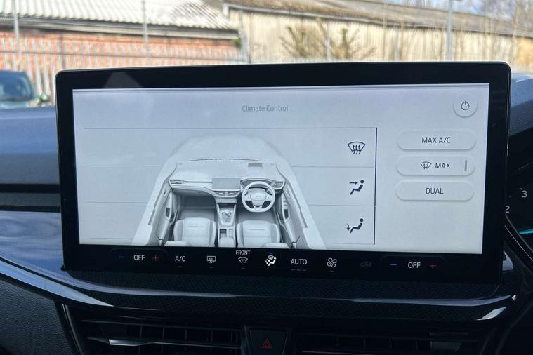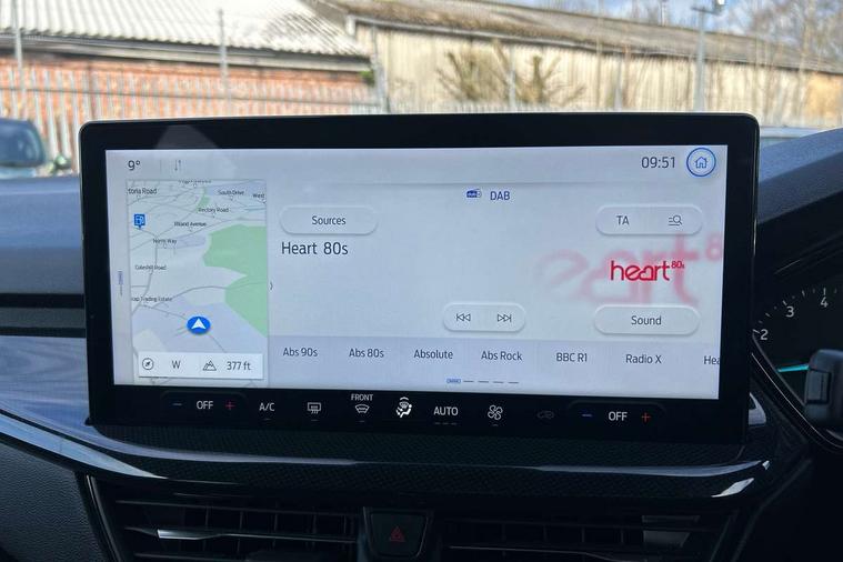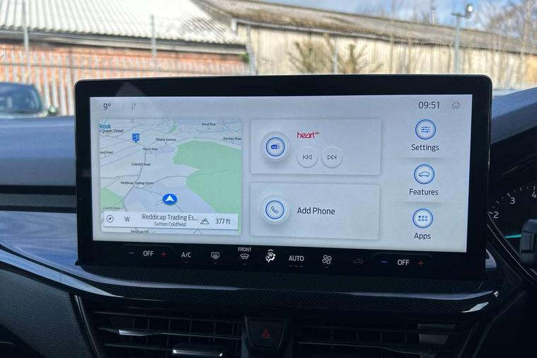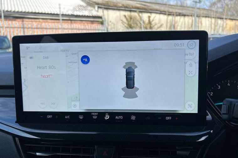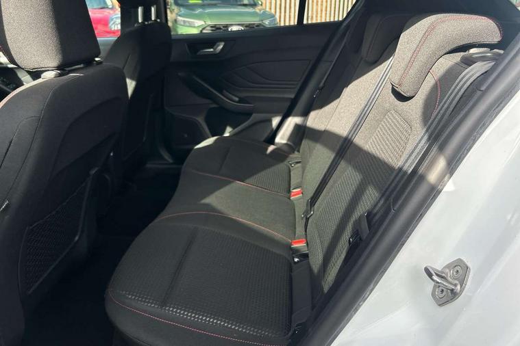 4.2" Colour TFT Ice blue illumination analogue cluster with trip computer, Bluetooth system, Digital clock, Easy fuel capless refuelling system, Eco mode, Ford SYNC 4 Navigation with 13.2'' touchscreen, DAB radio, Emergency Assistance, Apple Carplay & Android Auto, 6 speakers & FordPass Connect, Lane keeping system - lane keeping alert and lane keeping aid, PAS, Rev counter, Selectable drive mode, Service interval indicator, Sports tuned suspension, 2 USB ports, Auto headlamps (on/off), Body coloured door handles, Electrically operated front and rear windows with one touch opening and closing, Electrically operated heated power fold door mirrors with puddle lamp with side indicators, Front variable intermittent wipers with electric wash, Full fixed LED headlamps, Heated rear window, LED daytime running lamp, LED rear lamps, LED third brake light, Polished twin tailpipe, Privacy glass, Quickclear heated windscreen, Rain sensor, Rear side wing doors, Tailgate wash/wipe, Unique ST-Line grille, full bodystyling kit, and large body coloured rear spoiler, 3 rear headrests, 3 seat bench in 2nd row, Cloth upholstery, Dual zone electronic air temperature control, Height adjustable front headrests, Isofix child seat preparation, Reach + rake adjustable steering column, Single front passenger seat, 3x3 point rear seatbelts, ABS+Electronic Brake force Distribution, Auto hold function, Driver airbag, EDL traction control, Electronic parking brake, Electronic stability control, Front and rear seatbelt reminder, Front inertia reel height adjustable seatbelts with pre-tensioners, Front passenger airbag, Front side airbags, Passenger airbag deactivate switch, Post collision braking, Pre collision assist with autonomous emergency braking and pedestrian/cyclist detection, Remote/power child rear door locks, Side curtain airbags, Three rear inertia reel lap/diagonal seatbelts, Tyre pressure monitoring system, Keyless entry and keyless start, MyKey system, Remote central locking & engine immobiliser, Thatcham alarm with power door dead locks, 17" 5 spoke Rock mettalic finish alloy wheels with mini spare wheel,