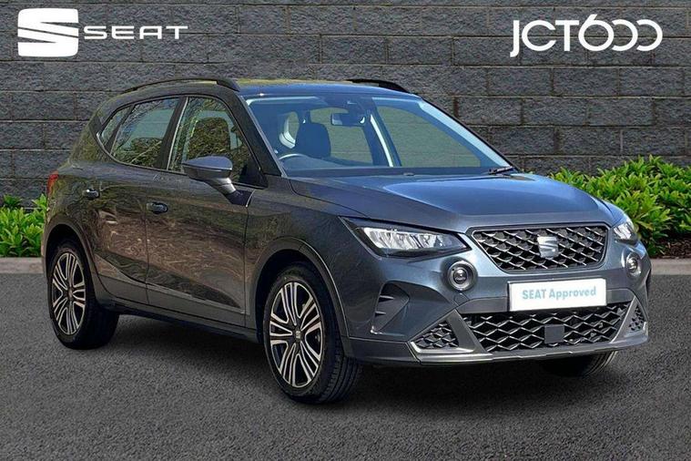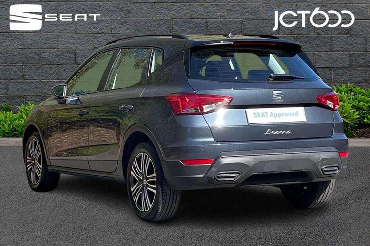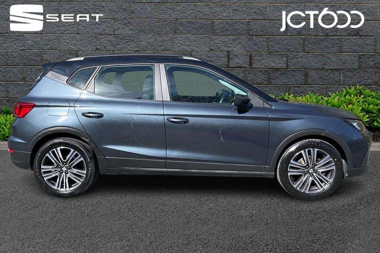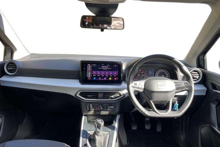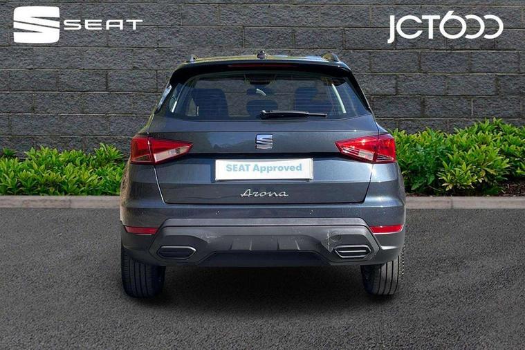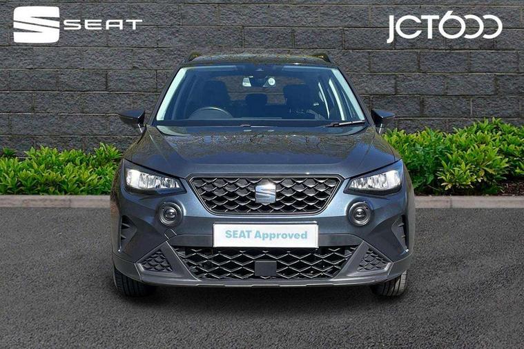 'Lights On' Reminder warning buzzer, Cruise control and speed limiter, Digital clock, E-call, Electric speed sensitive power steering, Full Link Smartphone Integration with Mirror Link, Apple Car Play, Google Android Auto with USB Type C cable for Apple and Android compatibility, Lane keeping system, Low fuel warning light, Outside temperature display, Rear parking sensor, RPM counter, Seat connect with safety, service, remote and online, Trip computer, Bluetooth interface for hands free and audio streaming, DAB digital radio and AM/FM radio, Steering wheel mounted audio controls, Anti theft roof antenna, Automatic activation of hazard warning lights, Black roof rails and window surrounds, Black window trims, Body coloured bumpers, Body coloured door handle inserts, Body coloured door mirrors, Dimming rear view mirror, ECO LED automatic headlights and LED daytime running lights, Electric adjustable door mirrors, Electric front/rear windows, Hidden exhaust pipe, Protective side mouldings, Rain sensing wipers, Rear side wing doors, Rear spoiler, Rear window wash/wipe, Third brake light, Visible VIN plate, Windshield wiper with intermittent control and potentiometer, 2 cupholders, 3 seat bench in 2nd row, 60/40 split folding rear seat, Air conditioning, Cloth upholstery, Double boot floor, Driver sunvisor with covered mirror + card holder, Dust/pollen filter, Flat bottomed leather steering wheel/gear knob/handbrake, Front courtesy light with front reading lights, Gear shift indicator, Grey interior roof, Height adjustable front seats, Height/reach adjustable steering column, Honey mustatd coloured air vent, Illuminated boot, Instrument lighting with brightness control, ISOFIX points in outer rear seats with top tether anchorage points, Passenger sunvisor with vanity mirror, Single front passenger seat, Two front and three rear height adjustable headrests, Connectivity pack plus - Arona, Interior chrome pack - Arona, 3 point seatbelts on all rear seats, ABS, Active front headrests, Child locks on rear doors, Driver and front passenger airbags with front passenger airbag de activation, front side and curtain airbags, Electronic stability control, Emergency Brake Assist (EBA) and front assist, Front and rear seatbelt reminder, Hill hold control, Multi-Collision braking, Tiredness recognition system, Traction control, Tyre pressure monitoring system, Electronic engine immobiliser, Locking wheel bolts, Remote central locking + deadlocks, Titan black dashboard, 17" Dynamic machined alloy wheels,