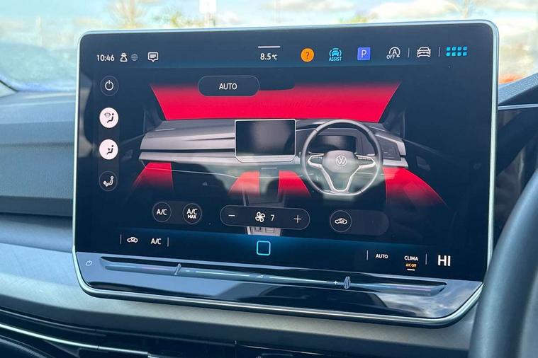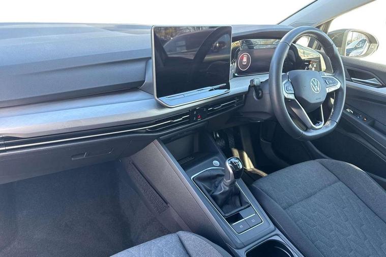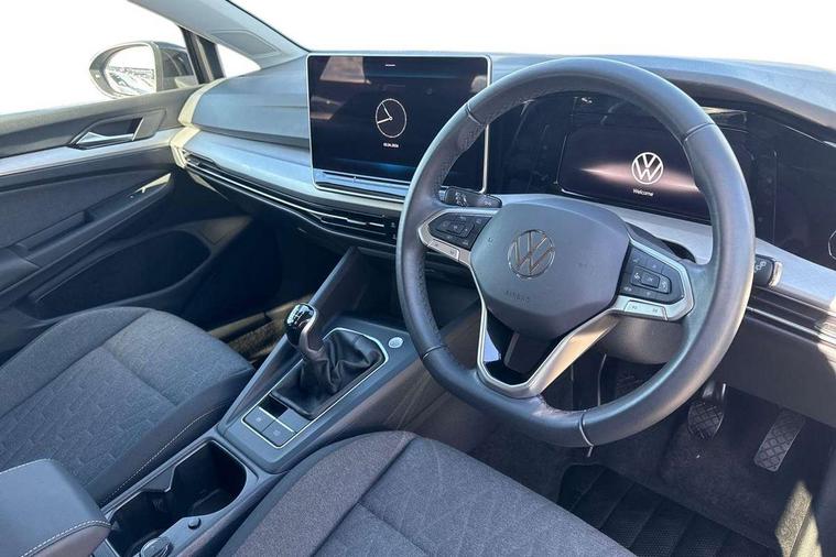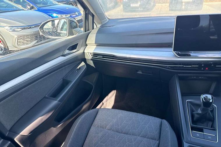 Activated carbon canister, Adaptive cruise control (ACC), Advanced driver attention and drowsiness monitor, Dynamic road sign display, E-Sim card for online connectivity, eCall emergency call system, Multi-color Digital cockpit pro, selection of different info profile possible, Multifunction front facing camera for distance control, Navigation system, Oncoming vehicle braking when turning including swerve support, Preparation for light assist system, Speed limiter, Speedo, rev counter, electronic odometer, trip, service interval display, exterior temperature and fuel gauge, Voice enhancer and voice control, Warning signal and warning light for front and rear seatbelts not fastened, We connect plus preparation, We connect preparation, Wireless app connect, Petrol Particulate Filter, Start-stop system with battery regeneration (recuperation - energy recovery during braking), XDS electronic differential lock for improved traction and handling, 2 USB C ports in front, 2 USB charging sockets on the centre console in the rear charging capacity upto 45W, Comfort telephony + wireless charging, without wireless aerial connection, Digital radio reception (DAB), Diversity antenna for FM reception, Gaming platform via car app, Infotainment system with 12.9" display, Mobile phone interface with inductive charging feature, 3rd brake light, Auto dimming rear view mirror, Auto headlights, Automatic headlamp activation with Coming home and Leaving home feature, Body colour door handles, Body colour door mirrors, Exterior ambient lighting with illuminated door handles, Exterior mirrors convex on the left and aspherical on the right, Front and rear electric windows, Heat insulating windshield made of laminated glass, LED daytime running lights, Rain sensor, Rear exhaust tailpipe, Rear fog light on one side and reversing lights on both sides, Rear side wing doors, Rear tinted glass 65% light absorbing from B pillar backwards, Rear windscreen washer and wiper with interval delay, Remote electrically foldable door mirrors, puddle lights and reverse activated passenger's door mirror, Standard bumpers, Welcome light with surround lighting, 12V socket in front centre console, 12V socket in luggage compartment, 3 rear head restraints, 3 seat bench in 2nd row, Chrome plated radiator grille inserts, air vent surrounds and light switch surrounds, Front centre armrest, Front head restraints, ISOFIX anchors for child seats on outer rear bench seats and on front passanger seat compatible for i-Size, Leather gearshift handle, Luggage compartment lighting, Rear cupholder and loadthough, Single front passenger seat, Soul black instrument panel, Split folding backrest with centre armrest and unsplit rear seat bench, Standard pedal cluster, Storm grey roof lining, Sun visors with illuminated vanity mirrors, Parking and comfort pack - Golf Estate/Hatchback, 3 point height adj front seatbelts + pretensioners, 3 rear three point seatbelts, ABS, Autonomous emergency braking front assist with pedestrian and cyclist monitoring, Child locks on rear doors, Driver and front passenger airbag with front passenger airbag deactivation, Electronic parking brake with auto hold, ESC (Electronic Stability Control), Extended pedestrian protection measures, Rear disc brakes, Two tone horn, Tyre pressure loss indicator, Volkswagen roadside assistance, Alarm with interior protection, Anti theft wheel bolts, Keyless start with SAFE lock, Preparation for alcohol interlock, Nature cross brushed decorative inserts for dashboard and front door panels,