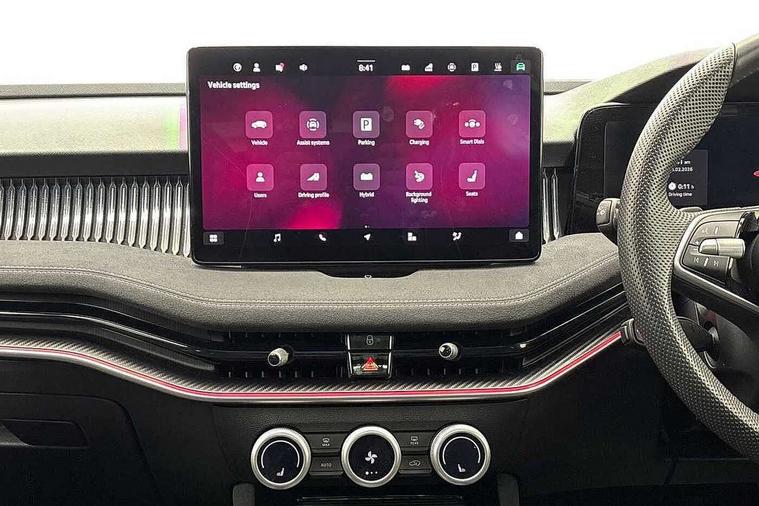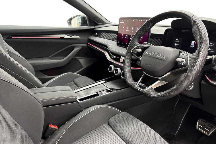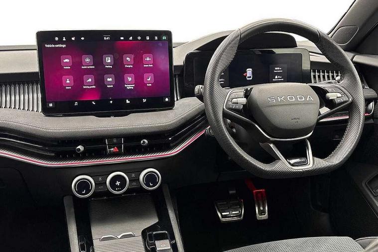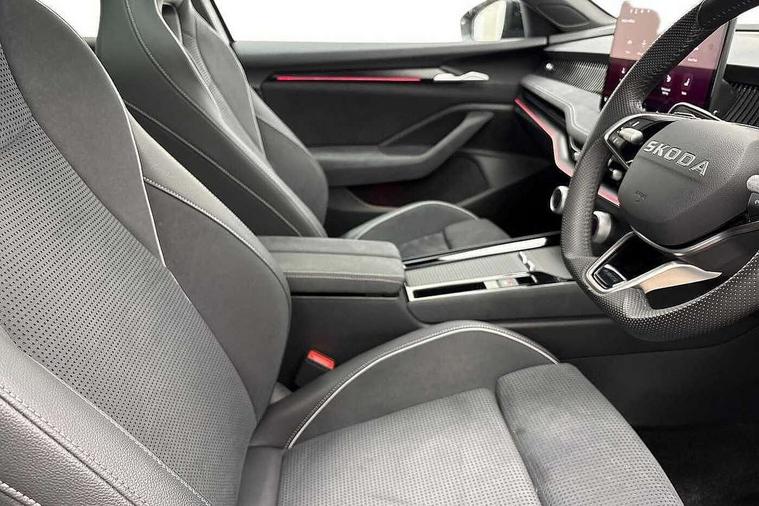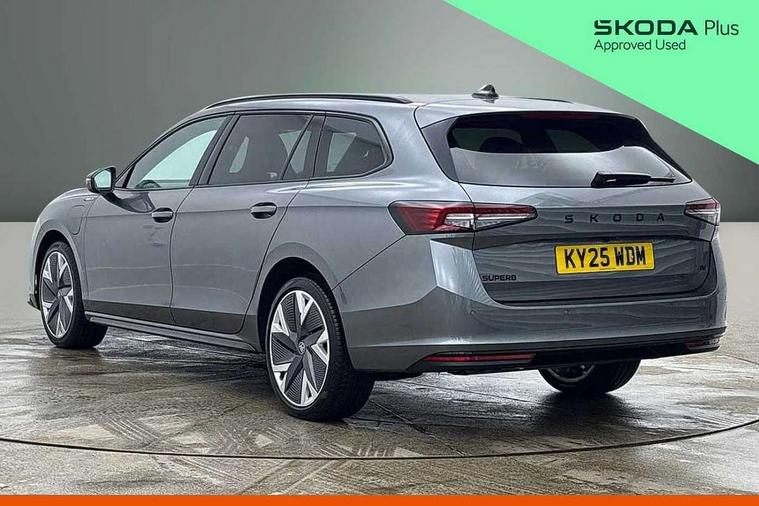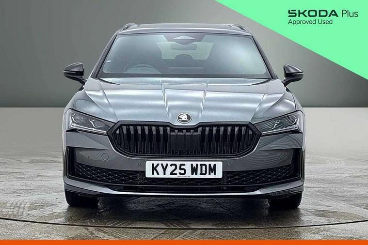 13" touchscreen display with satellite navigation, 4x USB-C ports (2x in front centre console and 2x in rear) (45W), Adaptive cruise control with speed assist, lane assist plus and traffic tram assist, Blind spot detection with door exit warning, Bluetooth system, CareConnect and Emergency Call, ChatGPT functionality, Drive mode selection, Driver fatigue sensor, Front assist with extended predictive pedestrian protection, Front cross traffic assist, PAS, Quick start all heating software functionality, Stop/start engine system, Traffic sign recognition, Turn assist with evasive assistance, Virtual Cockpit - 10.25" digital display, Voice control system, Washer for rear camera, Wireless charging for one smartphone (15W) with cooling function, Wireless smartlink apple carplay, SmartLink+ android auto, Dynamic chassis control plus with progressive dynamic steering, Mode 3 charging cable, DAB Digital radio, Display cleaner, FM radio connection, Web radio connection, Acoustic side windows and interior noise suppression, Backdrop lighting, Black exterior styling window and grille surrounds, Black roof rails, Body colour door handles, Dynamic range control with poor weather light and integrated fog light, Electrically adjustable, heated, folding and driver side auto-dimming door mirrors with memory function, integrated indicators and logo projection, Frameless auto-dimming rear view mirror with USB-C, Gloss black door mirrors, Ice scraper in fuel tank cap, LED 3rd brake light, Light assist with High beam control, Light assistant (coming/leaving home/tunnel light), Privacy glass, Rear fog lights (x2), Rear roof spoiler, Rear side wing doors, Rear windscreen wiper, Skoda lettering in black, Sportline badging, Sports bumpers, Windscreen wipers with rain sensor, 12V socket 1x centre console 1x boot, 14-way electrically adjustable, memory, front seats with 4-way pneumatic lumbar support, and extendable thigh support with smart comfort entry aid, 2x cargo elements in boot, 2x light in boot, 3 seat bench in 2nd row, 4x foldable bag hooks in boot, 60:40 Split folding rear seats, Aluminium pedals, Bottle holders in the front doors 1.5 litre bottle and rear 1.5 litre bottle, Cup holder in front with easy open mat, Front armrest with storage box, Front sports seats, Heated and ventilated front seats, Height adjustable front and rear head restraints, Illuminated glovebox, Interior lights with control switches, Isofix child seat fittings in outer rear and front passenger seats, LED front and rear reading lights, Single front passenger seat, Skoda lettering on steering wheel, Storage compartment with cover, Storage pockets on back of front seats, Sun visors with illuminated vanity mirrors, Ticket holder on A Pillar, Tri zone climate control, Umbrella in driver's door, Light and view package - Superb, Transport package - Superb Estate, 3 rear seatbelts, 8 Airbags - Front driver and passenger, front side driver and passenger, centre, curtain front and rear, drivers knee, Crew protect assist, Driver and passenger seatbelts with warning light, Electronic parking brake, ESC including ABS, EBV, MSR, ASR, EDS, HBA, DSR, RBS, CBC, multi-collision brake (MKB) and Auto hold, Hill hold assist, Power operated child lock in rear doors, Alarm with interior monitoring tilt sensor and back up horn, Backrest remote release from trunk, Electronic engine immobiliser, Keyless start/stop, Remote central locking with SAFE system, Third key, Walk away locking, Decorative front door sills, 19" Torcular polished black alloy wheels with anti theft wheel bolts, Tyre repair kit,