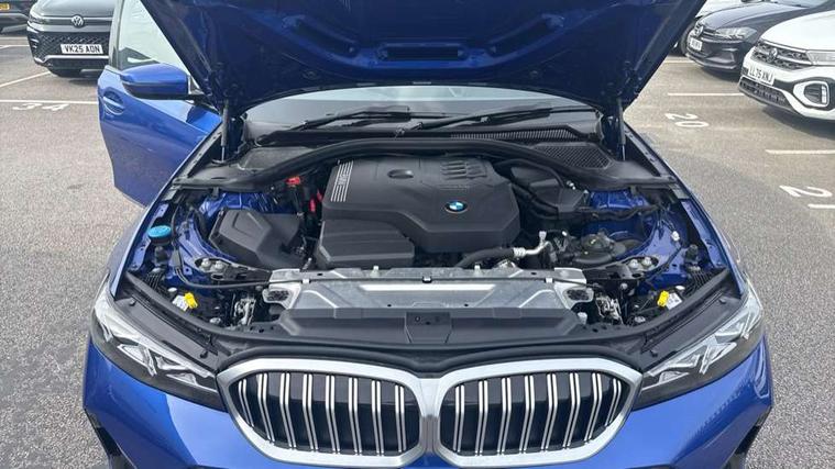 Active guard plus, Attentiveness assist, Automatic Start/stop button, BMW iDrive, BMW Teleservices, Condition based service, ConnectedDrive Services, Driving experience switch, Live cockpit plus with Navigation + 12.3" instrument display + 14.9" display, Intelligent voice assist, 2 USB, 4G LTE connect, Oil sensor for level and grade, Preparation for driver assistance, Shifting point display, Variable sport steering, Double joint spring strut front axle, Fuel tank breather system, M sport suspension, Sport automatic transmission with steering-wheel mounted gearshift paddles and launch control, DAB tuner, 3rd brake light, Acoustic glazing, Automatic headlight beam throw control with load dependent regulating reaction, dynamic compensation of braking dive and acceleration squat, BMW emblem, engine compartment lid and tailgate, Body colour roof fin, Door sill strips, Electric windows - front and rear, with open/close fingertip control, anti-trap facility and comfort closing, Follow me home headlight function, Front and rear bumper system with replaceable deformation elements, Front apron plastic in body colour, Fuel filler flap - right rear in body colour, Heated washer jets, High gloss shadow line exterior trim, Illuminated bow type door handles in body colour drivers side with door lock, Interior rear view electrochromatic mirror with automatic anti dazzle function, LED headlights with LED daytime running lights and LED turn indicator, LED rear lights, Licence plate panel integrated into front bumper and tailgate, Matt black B-pillar finsher, Matt black window recess cover, Model designation on right side of tailgate, One piece front bumper cover including towing eye cover in body colour, Rain sensor with automatic headlight activation, Rear boot, Rear side wing doors, Reversing lights, Side frame decorative moulding black matt, Visible exhaust tailpipe finisher, Welcome lights in interior and door handle area, 12V power socket in front storage compartment, 2 front cupholder in centre console with clamping elements and matt black inlay, 3 seat bench in 2nd row, 3 zone automatic air conditioning, 40:20:40 split folding rear seat with loading system, Ambient inside door handle light, Ambient light design projected onto the left and right entering and exiting area, Ambient lighting front and rear with 9 selectable colours, Ambient storage compartment lighting in the centre console, Anthracite headlining, Armrest integrated in front and rear door trim + front centre console armrest, BMW ID, Contour lighting in instrument panel and door trim panel, Cruise control operation in steering wheel, Driver backrest width adjustment, Folding rear centre armrest with 2 cupholders, Front and rear ambient footwell lighting, Front and rear door exit lighting (left / right), Front and rear headrests, Front and rear reading lights, Front and rear velour floor mats, Front sport seats, Heated front seats, Height adjustable mechanically and infinitely variable steering column, Illuminated armrest storage compartment, Illuminated glove compartment, Illuminated luggage compartment, Lashing eyelets in luggage compartment, M Sport multifunction leather steering wheel, Make-up mirror lights, Single front passenger seat, Standard seat for driver and passenger with manual adjustment, Sunvisors with vanity mirrors and ticket pocket, Toolkit located in luggage compartment, Connected pack professional - 3 Series Saloon/Touring, Interior and exterior mirror pack - 3 Series Touring/Saloon, M Aerodynamics package - 3 Series Saloon/Touring, M sport exterior styling pack - 3 Series Saloon/Touring, Storage compartment pack - 3 Series Saloon/Touring, 3x3 point rear seatbelts, BMW emergency call, Child locks on rear doors, Crash sensor activating of airbags, Unlocking doors, hazard warning lights, interior light, safety battery terminal, Driver and front passenger with seat occupancy detection for driver's and passenger side, Driver and passenger side airbags, body protection at side and airbags deploy from seat backrests, Dynamic brake control, Dynamic stability control + (DSC+) - Anti-lock Braking System (ABS) with brake assist and cornering brake control + Automatic Stability Control (ASC), Dynamic Traction Control - DTC, Electric parking brake including automatic hold function and automatic release of the parking brake when driving off, Electronic differential lock control (EDLC), Head airbags in 1st and 2nd row, head protection at side, curtain airbags open from headliner above 1st and 2nd row, Plastic fuel tank, Side impact protection, Tyre pressure monitoring with three level warning strategy, Ventilated front and rear disc brakes, Warning triangle and first aid kit, Alarm system, Centre lock switch, Closing system with central locking, Electronic vehicle immobiliser,
