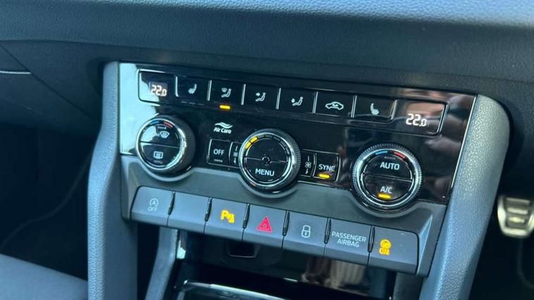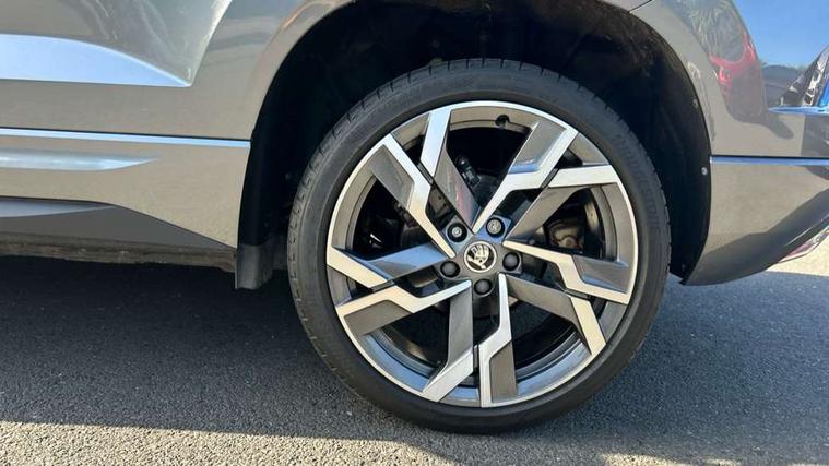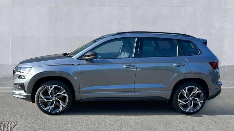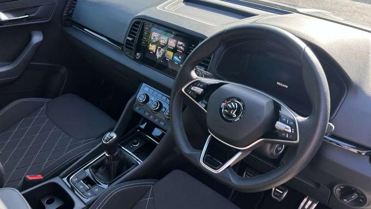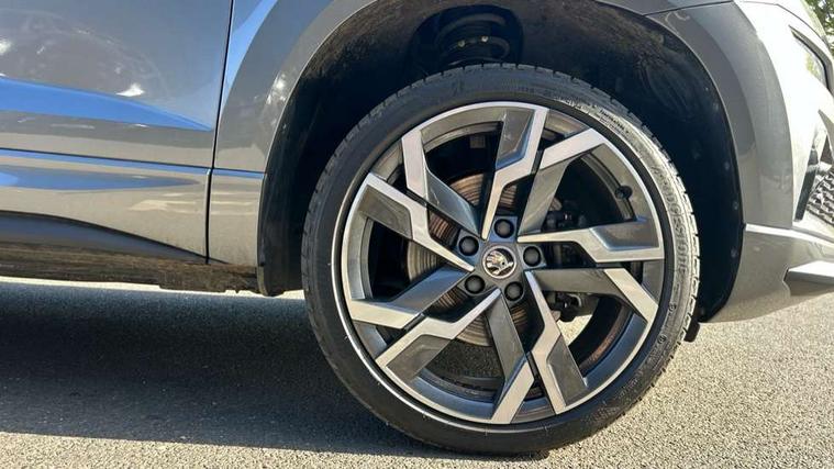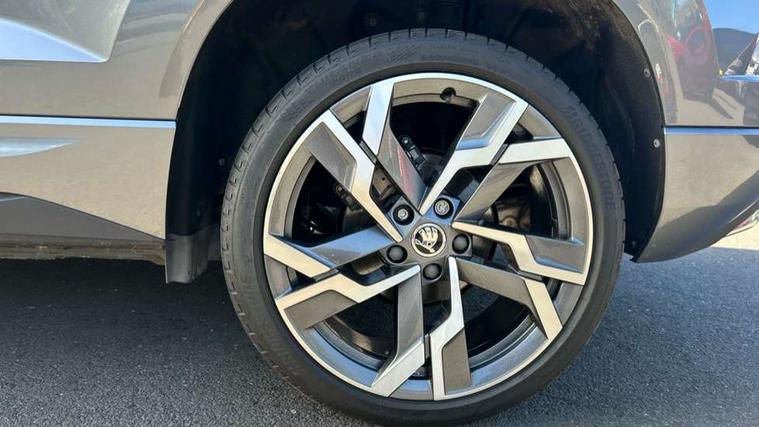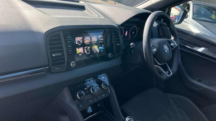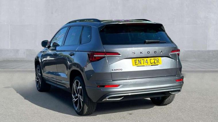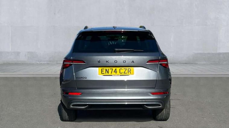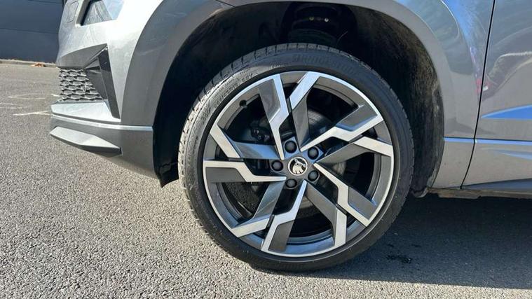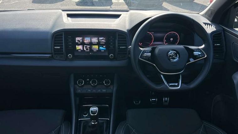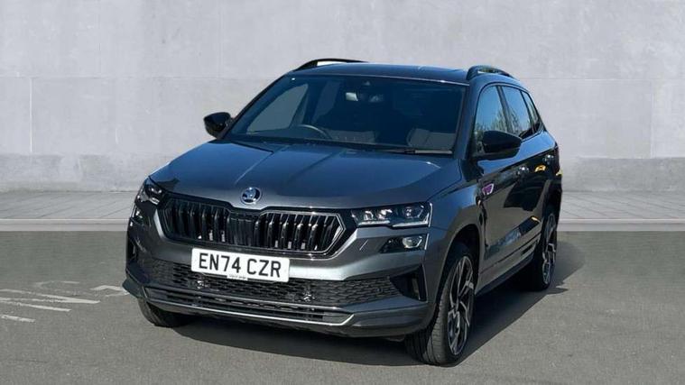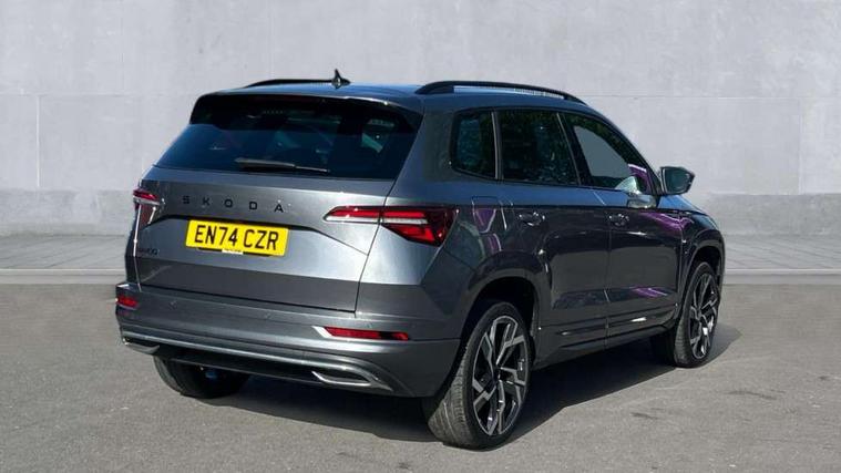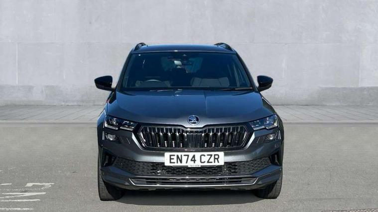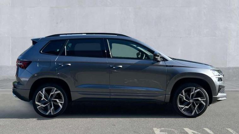 8" Digital display, Advanced driver attention and drowsiness monitor, Emergency services call system, Outside temperature gauge, Sensor for driver assistance systems, Service interval indicator, SmartLink wireless for Apple and wired for Android, Start/stop system with regenerative braking, USB C Port x 2 in front centre console, Virtual Cockpit - 10.25" digital display, Virtual pedal with electrically operated boot door, Wireless smartphone charging, DAB radio with Bluetooth, USB connection, Acoustic glass, Aero front windscreen wipers with intermittent function, Auto dimming rear view mirror with light and rain sensors, Black door mirrors, Black electric window control buttons, Black radiator grille, Black roof rails, Body colour door handles, Electric front and rear windows with child proof lock, Front door steps with SportLine logo, Heated rear windscreen, LED daytime running lights, LED rear lights with high functionality welcome effect and dynamic indicators, Light assistant (coming/leaving home/tunnel light), Panoramic sliding sunroof, Plastic scuff plates in door apertures, Privacy glass, Protective door side sills in body colour, Rear diffuser, Rear side wing doors, Rear spoiler, Rear window wiper with washer system and intermittent control, Safety reflectors on front doors, Skoda lettering on tailgate in black, Sportline badge on front fender, Sportline decorative inserts with badging, Sports front and rear bumpers, Third brake light, 1.5 litre bottle holders in driver and front passenger door panels, 12V socket in boot, 12v socket in front centre armrest with storage compartment and rear air vents, 2 x Tablet holder, 3 rear height adjustable headrests, 3 seat bench in 2nd row, 3 spoke sports leather heated multifunction steering wheel, 4 foldable roof handles with rear coat hooks, Black floor carpet, Black roof headlining, Chrome inner door handles, Foldable hooks in the boot, Front head restraints, Height adjustable front three point seats belts with tensioners, Height/reach adjust steering wheel, Ice scraper, Illuminated glovebox, Illuminated luggage compartment, Isofix child seat preparation for front passenger seat, Isofix child seat preparation outer rear, Manual lumbar support for front seats, Pen holder, Pollen filter, Rear boot cover, Rear reading lights, Rear seats fixed folding and divided 60:40, Rubbish bin door, Safety vest holder, Single front passenger seat, Storage box in upper central dashboard closed, Sunvisors with illuminated vanity mirrors, Textile floor mats, Ticket holder, Titan black interior ceiling, Umbrella under passenger seat, Under passenger seat storage compartment, LED Interior lighting pack with Skoda welcome logo - Karoq, Light Pack - Karoq, Non Smokers pack, Automatic door unlocking in case of crash, Automatic fuel cut off in case of crash, Driver airbag, Electronic parking brake with auto hold function, Emergency rear braking signal, ESC (incl. ABS+MSR+ASR+EDS+HBA+DSR+RBS+MKB), Front side airbags, Head airbags, Hill hold control, Knee airbags, Passenger airbag with switch-off function, Pedestrian monitor, Seatbelt reminder signalisation and pretensioner for all seats, Three point seatbelts rear, Two tone horn, Tyre pressure monitor, Alarm with interior monitoring, back up horn and tilt sensor with safe function, Electronic engine immobiliser, Keyless entry and start/stop, Remote central locking with 2 remote folding keys, Black air vent surround, Black centre console, carbon door decor, Satin black dashboard, Satin black door trim, 19" Sagittarius anthracite alloy wheels, Anti-theft wheel bolts protection, Breakdown and tool kit,