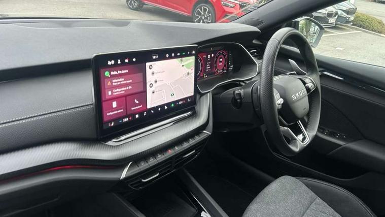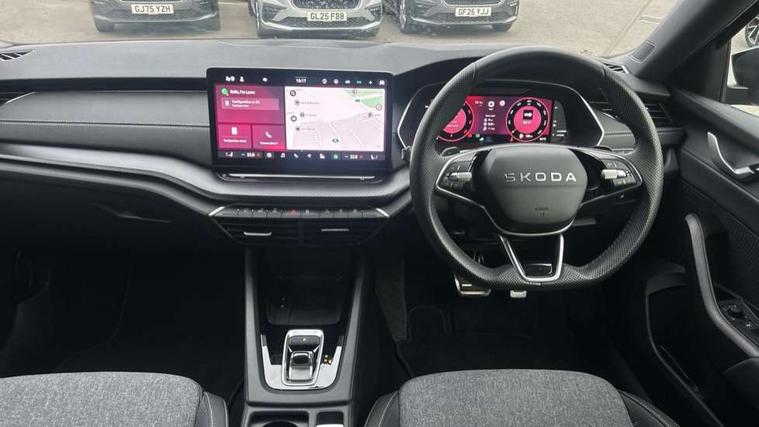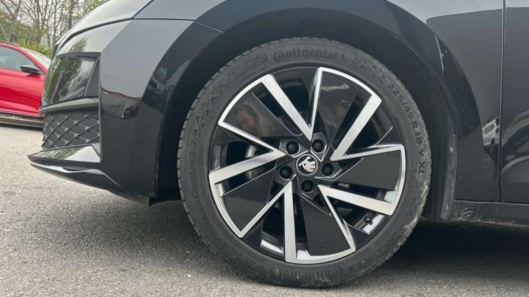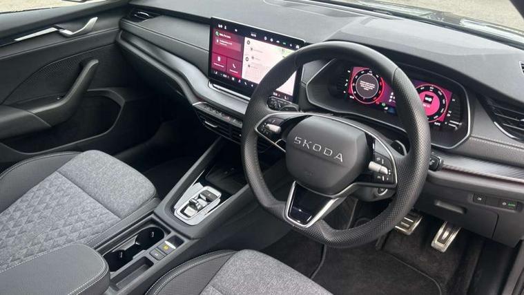 1x USB Typc C port in rear view mirror, 4x USB Type C ports - 2x in front centre console and 2x in rear (45W), Drive mode selection, Driver fatigue sensor, eCall emergency system, Front assist system, Progressive dynamic steering, Traffic sign recognition, Turn Assist, Virtual Cockpit - 10.25" digital display, Voice control system, Wireless charging (15W) with cooling function, Wireless SmartLink for Apple CarPlay and Android Auto, Sports suspension with 15mm lower, 13" touchscreen display with navigation, DAB Digital radio, Aero front windscreen wipers with intermittent function, Auto dimming rear view mirror, Body colour bumpers, Body colour door handles, Chrome strip in lower front bumper, Electric front and rear windows, Exterior gloss black sports styling including front grille, window surrounds, door mirrors and badging, Gloss black diffuser, Gloss black spoiler, Heated rear windscreen, High beam control, High level third brake light, Ice scraper in fuel cap, LED daytime running lights, Logo projection in front doors, Rain and light sensors, Rear fog light on one side and reversing lights on both sides, Rear privacy glass, Rear side wing doors, Rear wiper, 12 volt socket in boot, 3 rear headrests, 3 seat bench in 2nd row, 4 foldable roof handles, Aluminium pedals, Boot net programme, Electric auxiliary air heater, Front head restraints, Front sport seats, Heated front seats, Illuminated glovebox, Interior door handles in dark chrome, Jumbo Box storage, Luggage compartment lighting x2 lights, Mechanical rear seat release from boot, Parcel shelf - folding, Single front passenger seat, Steering wheel in black leather with black stitching, Storage compartment under passenger seat, Storage compartments in left and right of boot, Sun visors with mirrors, Sunglasses storage, Three spoke leather sports multifunction steering wheel with paddles, Ticket holder, Umbrella in door panel, Unsplit rear bench seat, split folding backrest with centre armrest with cupholder, SportLine Design Selection pack - Octavia, 3x3 point rear seat belts, Alarm with interior monitoring, tilt sensor and back up horn, Curtain airbags and front side airbags, Driver and front passenger airbags, Drivers knee airbag, Electronic parking brake, ESC including ABS, EBV, MSR, ASR, EDS, HBA, DSR, Front central airbag, Hill hold assist, ISOFIX on front passenger seat and outer rear seats, Passenger airbag deactivate switch, Three point seat belts in front and rear, Two tone horn, Tyre pressure monitor, Visual and acoustic seat belt reminder, Warning reflectors in front door, Anti-theft wheel bolts, Keyless entry and start/stop, Remote central locking, Gloss black air vent surrounds,