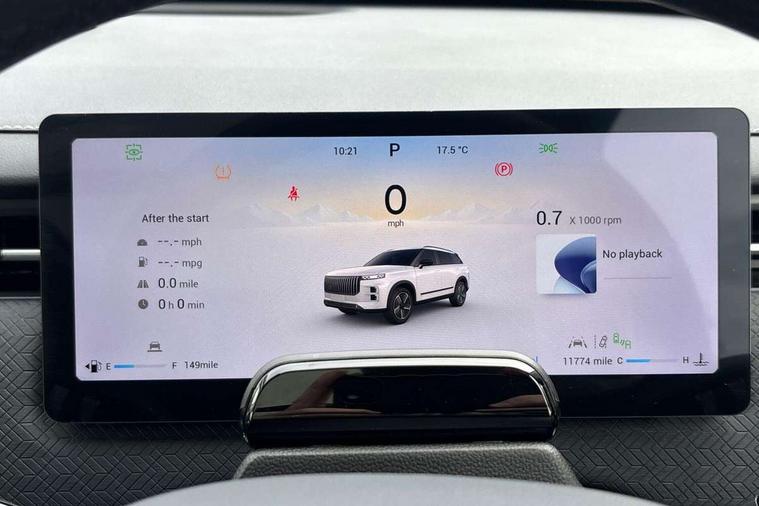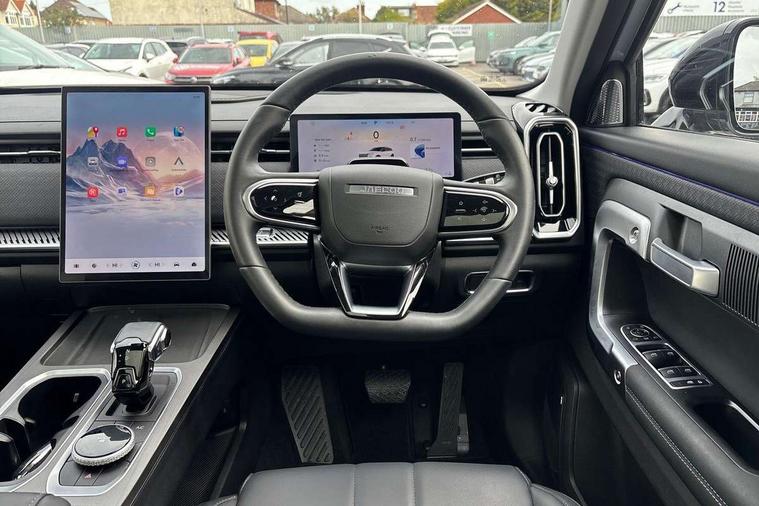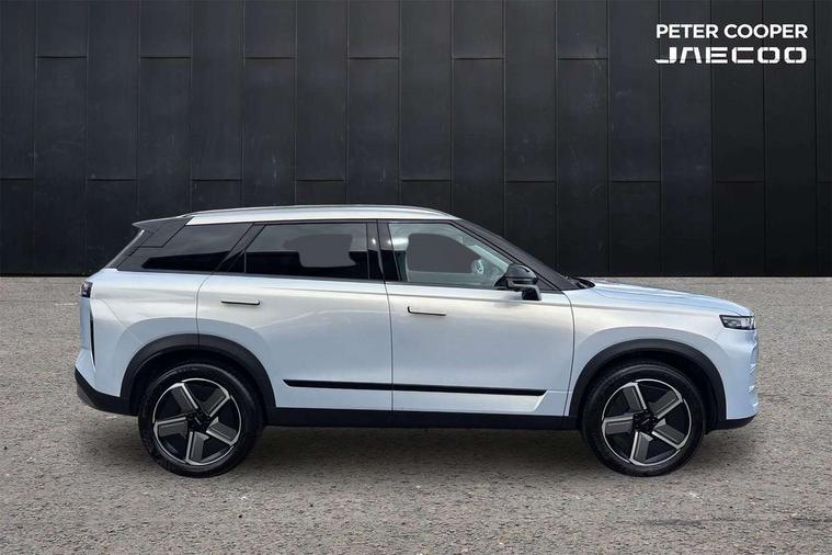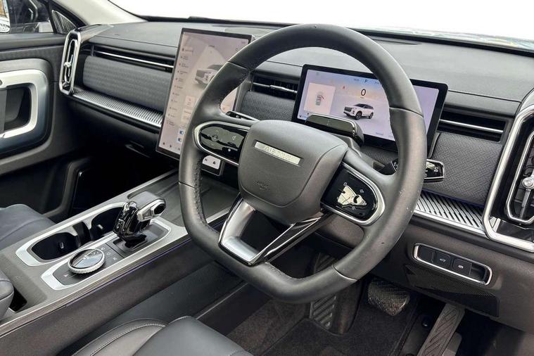 10.25" LCD instrument cluster, 13.2" portrait central LCD display, 3 driving modes Normal, Eco, Sport, 540 degree panoramic camera with transparent chassis view, Adaptive cruise control, Blind spot detection, Bluetooth handsfree system, Corner speed control assist, DAI Forward Departure System, Driver monitoring system, E-call safety system, Electric power steering, Emergency lane keep assist, Front and rear parking sensors, Front collision warning, ICA - integrated cruise assist, Integrated satellite navigation - Live traffic data with wifi hotspot, Intelligent active speed limit, Intelligent elude system, Intelligent speed assist, Lane control assist, Lane departure prevention, Lane departure warning, Multiple collision defence system, Power tailgate, Rear crossing traffic braking, Rear crossing traffic warning, Remote engine start, Remote HVAC start, Speed limiter, Traffic jam avoidance assistant, Traffic sign recognition, Wireless Apple CarPlay/Android Auto, Wireless mobile phone charging - 50w capacity, cooled, Independent rear suspension, 2 x Front USB, 1 x Type A, 1 x Type C (fast charging), 2 x Rear USB, 1 x Type A, 1 x Type C (fast charging), 6 speaker audio system, DAB Digital radio, Auto dimming rear view mirror, Auto full beam LED headlights, Auto wipers, Automatic headlights, Body colour door handles, Electrically adjustable, heated and folding door mirrors, Follow me home headlight function, Front fog lights, Full length panoramic sunroof with opening front section, Heated rear window, High level LED brake light, Integrated antenna, LED daytime running lights, LED rear lights, One touch window function for all doors, Privacy glass, Rear side wing doors, Roof rails, Silent glass - windscreen and front side windows, Single layer roof spoiler, Tinted rear windows, Windows opening via remote, 12V power outlet - Boot, 12v power outlet - front, 12V socket in luggage compartment, 3 seat bench in 2nd row, 4 way adjustable steering column, 4 way electric adjustable passenger seat, 6 way power adjustable driver seat, 60/40 split folding rear seat backrest, Driver and passenger sun visors with vanity mirror, Dual zone air conditioning with second row outlet, Front armrest with interal storage and upper storage tray, Front deluxe seats, Front headrests, Front reading light, Heated front seats, Luggage compartment light, Multi function steering wheel, Rear bench armrest with integrated cupholder, Rear headrests, Selectable multi colour ambient lighting, Single front passenger seat, Synthetic leather steering wheel, Synthetic leather upholstery, 2 x isofix, 3 point seatbelts on all seats, ABS/EBD, Autonomous emergency braking, BAS (Brake Assist System), Child locks, Door opening warning, Downhill assist, Dual front airbags, Electronic brake force distribution, Electronic parking brake with auto hold, Electronic Stability Programme, Front and rear side airbags, Front centre airbag, Knee airbags, Passenger airbag manual switch off, Power limited seatbelts with pre-tensioners, height adjustable with CLT, Tyre pressure monitoring system, Uphill assist, Anti theft alarm, Automatic door locking, Engine immobiliser, Keyless start button, PEPS (passive entry and passive start) with walkaway locking, Dark colour interior, 19" Alloy wheels, Tyre repair foam,
