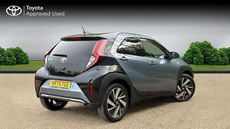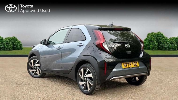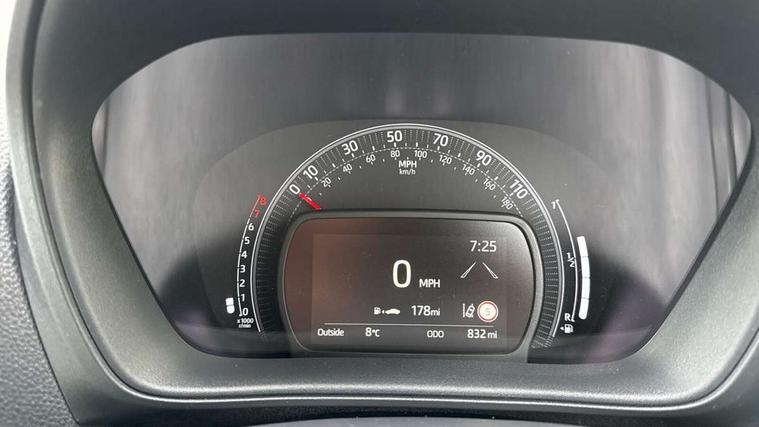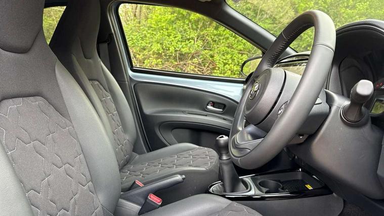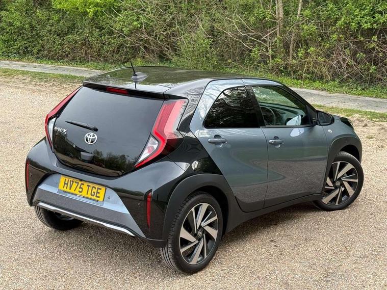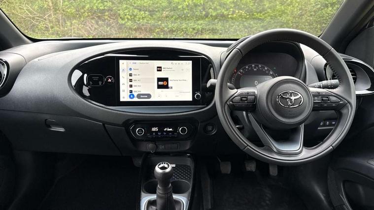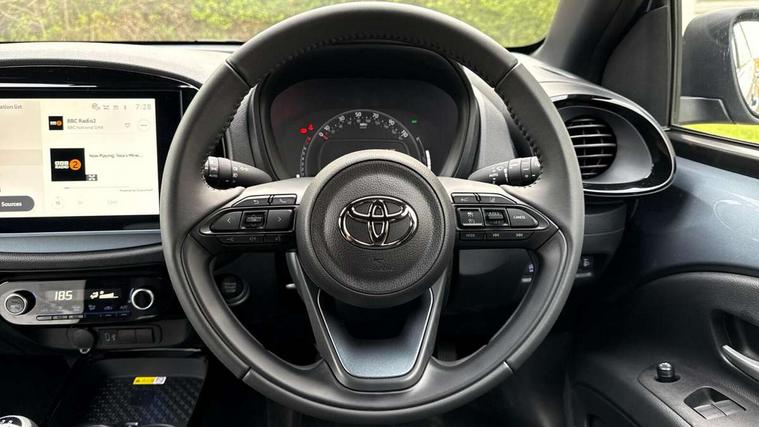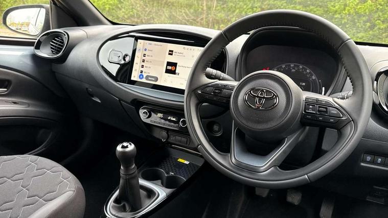 4.2" TFT colour screen, Adjustable speed limiter, Analogue speedometer, Bluetooth connectivity, Digital tachograph, Driver attention alert system, eCall emergency call system, Electric power steering, Front and rear parking sensors with auto brake, Intersection turn assist, Key reminder warning, Noise reduction kit, Pre collision system with emergency steering assist, Remote boot door release on key, Reversing camera with static guide lines, Smart entry and push button start, Smart phone integration with Apple car play/Android Auto, Speed limit display, Start and stop, Wireless charger, Vehicle Stability Control (VSC), 10.5" HD multimedia display touch screen with Toyota smart connect, 4 speakers, DAB digital audio broadcast, USB connector, Auto headlights, Auto wipers, Automatic headlights cut-off, Automatic high beam On/Off switch, Bicycle towing hook, Black contrast roof, Black fog light surrounds, Black side protection mouldings, Black wheel arch mouldings, Body colour door handles, Body coloured front bumper, Boot door scuff plate, Eclipse black rear bumper, Electric heated door mirrors, Follow me home headlights, Front and rear underruns in silver, Front fog lights, Front power windows, Gloss black door mirrors, Gloss black upper front grille, Headlight cut-off reminder, LED daytime running lights guide, LED front light guide, LED High mounted stop lamp, LED projector headlights, Manual day/night rear view mirror, Manual headlight levelling, Pagoda roof, Power adjustable door mirrors, Power back door, Privacy glass, Rain sensor, Rear combination lights LED bulb type, Rear side wing doors, Rear windscreen defogger, Rear windscreen wiper, Remote hazard lights system, Short antenna, Variable intermittent windscreen wipers, 12v power outlet - front, 2 seat bench in 2nd row, 3 spoke leather steering wheel, 50/50 split folding rear seat, Adhesive roof headlining, Adjustable speed limiter switch on steering wheel, Audio and telephone switches on steering wheel, Auto air conditioning, Black roof lining, Body colour satin anodised insert on steering wheel, Boot light, Centre room light, Chrome interior door handles, Chrome surround on air conditioning buttons, Clean air filter, Console box storage, Floor mats, Front and rear cup holders, Front head rest deco art, Front head restraints, Height adjustable driver seat, Intelligent adaptive cruise control switch on steering wheel, ISOFIX child restraint system on rear seats, Lane departure alert switch on steering wheel, Leather gearshift knob, Light blue ambient lighting in centre console, Manual tilt steering wheel, Manually reclining and sliding driver seat, Manually reclining and sliding front passenger seat, Multimedia switches on steering wheel, Partial synthetic leather upholstery, Pollen filter, Rear door pockets, Rear head restraints, Satin silver insert on gear shift knob, Single compartment glovebox with lights, Single front passenger seat, Soft tonneau cover, Sun visors with mirror on driver and passenger side, Voice recognition switch on steering wheel, Toyota safety sense pack - Aygo X, Anti lock braking system + Electronic brake force distribution, Child safety door lock, Emergency brake light signal (EBS), Hill start assist control (HAC), Passenger airbag on/off switch, Seat belt reminder for front and rear seats, Supplement restraints system (SRS) - 6 airbags, Traction control, Tyre pressure warning system, Immobiliser, Remote power door locks, Black wheel centre caps, Tyre repair kit,
