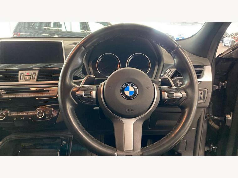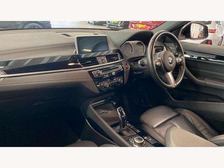 Active Guard incl speed limiting and lane departure functions with auto steering, and front collision warning with brake intervention, Automatic powered tailgate, Bluetooth hands free facility with USB audio interface, BMW Navigation system with 8.8" monitor, BMW Online services, BMW remote services, BMW Teleservices, Brake pad wear indicator in front and rear, Check Control warning system for monitoring of lights and door/luggage compartment open warning, Eco pro mode, Instrument cluster with black optic and 5.7" colour display + speedometer + tachometer + fuel gauge + instant fuel economy, Lights on warning by audio warning signal when ignition is switched off, On board computer - average speed+fuel consumption, service interval, clock/date, odometer/trip meter, outside temperature display and ice warning, Optimum shift indicator, Personal Profile, Real time traffic information, Speed limiter, TMC for lifetime of vehicle, 12V compressor with integrated sealant injection bottle and hose, Anti roll bar front and rear, Balancer shaft, Drive performance control with ECO PRO comfort + sport mode, Electronic differential lock, Performance Control, Sport automatic transmission, Twin tube gas filled shock absorbers with degressive characteristic curve, 2x USB sockets in front, 6 Speaker Loudspeaker system, Bluetooth audio streaming, BMW professional radio with CD player, DAB Digital radio, Steering wheel mounted audio/telephone controls, Adjustable headlights, Automatically dimming rear view mirror, BMW badge on bonnet, tailgate with integrated tailgate release and C pillars, Body colour door handles, Body colour mirror caps, Body colour roof trims, Chrome kidney grille with black vertical slats, Clear lenses direction indicator lights, Dark shadow front air intakes, Direction indicator side lights integrated in exterior mirrors using LED technology, Door mirror integrated indicators, Dynamic brake lights, Electrically adjustable and heated door mirrors glass aspheric on driver's side and convex on passenger side, Fingertip control / anti-trap function on electric window, Front and rear bumper system, Front and rear electric windows, Green tinted heat protection glazing, Halogen headlights, Heated windscreen washer jets, High gloss black front side air intake with matt black insert, High gloss black in window frame, recess covers and B-Pillar trim, High gloss shadowline in mirror frame and B-Pillar trim, High level third brake light, LED front fog lights, LED headlights with extended contents - cornering, high beam assist, LED day running lights with dynamic beams-through for urban and motorway, Lightweight engineering, M logo designation in side chrome, M rear spoiler, Model designation in left tailgate, Model designation in right tailgate, Rain sensor with automatic headlight activation, Rear fog lights, Rear tail lights with LED technology and 3D design, Rear window aerial, Rear window wiper with wash/wipe function, Reversing light in rear light cluster, Shark fin antenna, Twin chrome exhaust tailpipes, Visible VIN plate, Welcome lighting, 40:20:40 manually split folding rear seat with two tilt positions for backrest, Ambient light in front centre console/cup holder area, Anthracite headlining, Armrest in centre section of rear seat backrest and folding, Automatic two zone climate control air conditioning, Child seat ISOFIX attachment for two outer rear seats and front passenger seat with anchorage points, Conditioned based service, Dakota leather upholstery + sport seats, Driver and front passenger seat heating, Driver/passenger sunvisors with ticket holders, Drivers folding storage compartment, Floor mats with black surround and M flag detail on front mats, Front and rear door armrests, Front armrest, Front door sill finishers with M designation, Front head restraints, Front sports seats, Gearshift paddles on steering wheel, Interior light in front centre interior mirrors and rear centre auto interior light activation when door is opened when ignition switched off, LED ambient lighting in upper door trim and dashboard trim, Luggage compartment lighting, Luggage compartment loading edge with stainless steel insert, M Sport multifunction leather steering wheel, Rake/reach adjustable steering wheel, Retaining strap on the left side of the luggage compartment, Three rear headrests, Two cupholders in front and rear centre console, Extended storage pack - X2, M Sport aerodynamic pack - X2, 3 point seatbelts on all seats, front pyrotechnic belt tensioners, stopper and belt force limiters, rear coded belt buckles, Airbags - Front driver and passenger, front and rear head, front side, curtain head protection, Anti lock braking system (ABS) with brake assist, ASC - Active stability control, BMW emergency call, Brake drying, Brake energy regeneration, Braking readiness, Child proof locking system in rear door, Crash sensor activating central locking release with hazard warning lights and interior lighting + battery safety cut-off, Driver and front passenger seat belt security check, DSC - Dynamic Stability Control, Dynamic Traction Control - DTC, Electrically operated parking brake with automatic drive release, Electronic parking brake, Front passenger airbag deactivation, Front ventilated brake disc, Hill descent control, Hill start assist, Multi collision braking system, Rear brake discs, Side impact protection, Twin horns, Tyre pressure monitor, Warning triangle and first aid kit, Auto door lock when driving, Central locking switch for all doors, fuel filler cap and luggage compartment, Engine immobiliser, Incorrect fuel protection system, Locking wheel bolts, Remote control including integrated key with M specific highlight, Remote control Thatcham category 1 alarm, Start/stop button with comfort go keyless engine start and auto start stop deactivation button, Dash top finished in black with decorative stitching line on upper section, High gloss black centre console, Reduced rolling resistance t