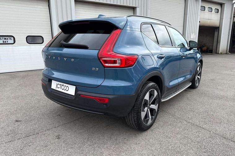 12.3" Progressive Driver Display, 9" centre console portrait touch screen, Adjustable steering wheel force, Bluetooth hands free telephone kit, E-call, eCall emergency call system, Front park assist, Google automatic services - Nav with google maps, apple carplay/android auto, voice recognition with google assistant, Hands free power tailgate, Lane keep assist with driver alert control, Oncoming Lane Mitigation, Rear park assist, Speed limiter, Speed sensitive steering, Wireless/Inductive Mobile Phone Charging, Dynamic chassis, DAB Digital radio, High performance sound, 8 speakers/250W, front USB and 2 rear type C USB, Steering wheel mounted remote controls, Adaptive brake lights with high level LED brake lights, Auto dimming interior mirror, Automatic headlamp levelling, Automatic LED Headlights + Active high beam incorporating daytime running lights, Front aluminium tread plates, Front and rear electric windows, High gloss black front and rear skid plate, High gloss black mesh front grille with high gloss black surround, High gloss black window trim, Home safe and approach lighting, Integrated roof rails in high gloss black, LED front fog lights, Puddle lights, Rain sensor with automatic windscreen wiper activation, Rear side wing doors, Rear wiper, Roof antenna, Roof spoiler, Visible VIN plate, 12V socket in front tunnel console and luggage compartment, 2-Zone electronic climate control with CleanZone air quality system and pollen filter, 3 seat bench in 2nd row, 60/40 versatile split folding rear seat, A-pillar parking ticket holder, Ambient front door and instrumental panel lighting, Centre console cupholders and storage, Flexible load floor and grocery bag holder, Floor mats, Front door pocket and front cupholder illumination, Front footwell illumination, Front headrests, Front reading light and theatre lighting, Front seat cushion extensions, Front tunnel pocket, Glovebox bag hook, Height adjustable passenger seat, Height/reach adjustable steering column, Height/tilt adjustable driver's seat, High gloss centre tunnel deco, Illuminated glovebox, Illuminated luggage compartment, Illuminated tailgate, Illuminated vanity mirrors, Integrated waste bin, Isofix attachments on outer rear seats, Load protection net, Multi directional lumbar support, Power driver seat with memory + exterior mirrors memory, Rear armrest / integral cup holders / storage tray, Rear headrests, Rear reading and courtesy lights, Single front passenger seat, Underfloor cargo storage, Climate pack - XC40, 3x3 point rear seatbelts, City safety includes pedestrian, cyclist and large animal detection and front collision warning with full auto brake, Drivers knee airbag, Dual stage driver/passenger airbags, Electronic parking brake with auto hold, First aid kit, Front and outer rear seatbelt reminder and pretensioners, Front seats SIPS airbags, Hill descent control, Hill start assist, Inflatable curtain, Passenger airbag cut-off device, Power child locks on rear doors, Road sign information display, Run off Road Mitigation, Run off Road Protection, SIPS (Side Impact Protection System), Slippery road and hazard light alert, Stability and Traction Control with Spin control, Engine Drag Control and Corner Traction Control, Tyre pressure monitoring system, Vehicle deceleration control with Anti-lock Brake System, Electronic Brake Distribution and Emergency Brake Assist, Warning triangle, WHIPS whiplash protection system - front, Anti-theft alarm including immobiliser/volume sensor + level sensor, Care key with user defined top speed, Key integrated remote control central locking + fuel flap with deadlocking system and auto open/close power windows, Keyless drive plus handsfree tailgate opening/closing, Locking wheel nuts, Private locking for tailgate,
