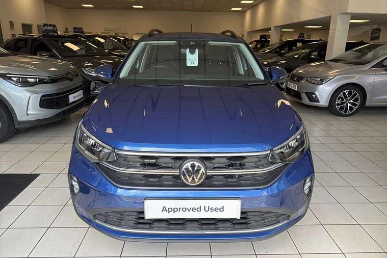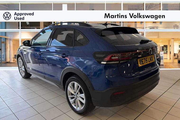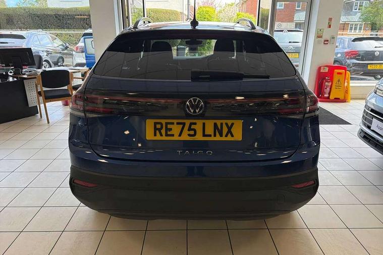 8" Digital cockpit basic display, Advanced driver attention and drowsiness monitor, Dynamic road sign display, e-Call (emergency call), Power Steering, Predictive adaptive cruise control, Rear view camera, Travel assist including emergency assist, Washer fluid level indicator, Wireless Charging including Bluetooth, Start-stop system with battery regeneration (recuperation - energy recovery during braking), Digital radio reception (DAB+), WeConnect plus, Ambient lighting with logo projection, Aspherical driver's exterior mirror, Body coloured bumpers, Body coloured exterior mirror housings and door handles, Electric windows, External USB type C socket and charging sockets, Heat insulating glass windscreen, LED rear combination lamp, LED third brake light, Left convex exterior mirror, Power folding adjustable/heated exterior mirrors and front passenger exterior mirror lowering function, Rear fog light on one side, reversing light on both sides, Rear side wing doors, Rear wash/wipe with intermittent wipe setting, Side windows in heat-insulating glass, from B-pillar and rear window dark tinted, 'Slash/ Austin' Cloth upholstery, 12V socket in centre console, 2 front reading lights, 3 rear head restraints, 3 seat bench in 2nd row, Black carpets, Ceramique headliner, Child seat anchor for child seat system i-Size, 2x top tether and child seat anchor in front on front passenger side, Door and side trim panels in titan black, Driver and front passenger seat height adjustment, Front centre armrest, Handbrake lever handle in leather, Height and reach adjustable steering wheel, Leather trimmed gear knob, Leather wrapped multifunction steering wheel, Luggage compartment floor, Luggage compartment light, Lumbar support for driver's and front passengers seat, Seat covers in titanium black, Single front passenger seat, Split folding backrest with centre armrest and unsplit rear seat bench, Storage compartment under front seats, Sun visors with illuminated vanity mirrors, Titanium black instrument panel, Chrome Package - Taigo, Drivers assistance package - Taigo, Light and sight pack - Taigo, 2 x 3-point seatbelts/outer rear seats with ECE label, 3-point seat belts in front with pretensioner and height adjustment, 3-point seatbelt for centre rear seat, Driver and front passenger airbag with front passenger airbag deactivation, Driver and front passenger safety-optimised head restraints, Electronic stability control, Extended and predictive pedestrian/ cyclist protection, Front and rear disc brakes, Front curtain and side airbags with center airbag, Hill start assist, Manual rear child locks, Single tone horn, Tyre pressure loss indicator, Anti-theft alarm system with interior monitoring, backup horn, and towing protection, Keyless locking and starting system keyless access with safelock, Black (slush) Dashboard, Lava stone black gloss/matt decorative inserts in dash and front door panels, Low rolling resistance tyres,