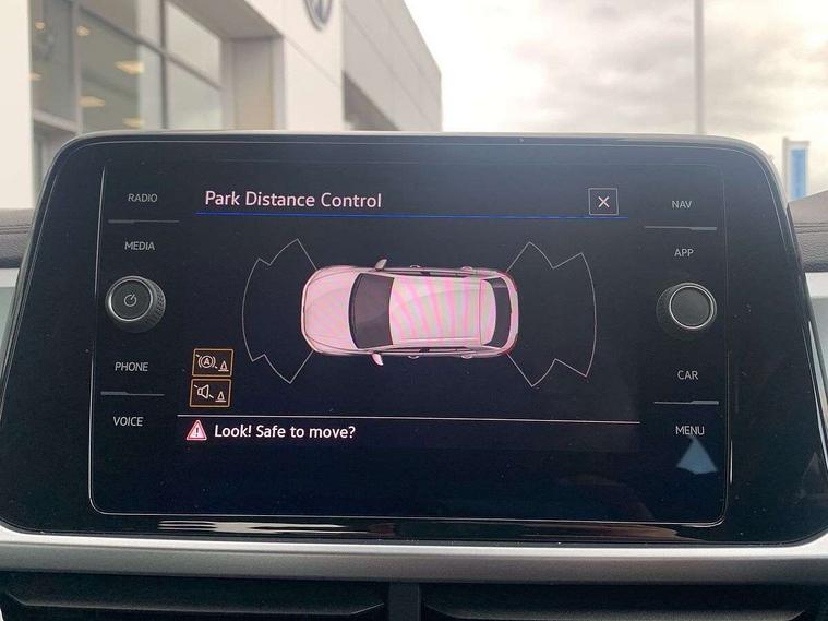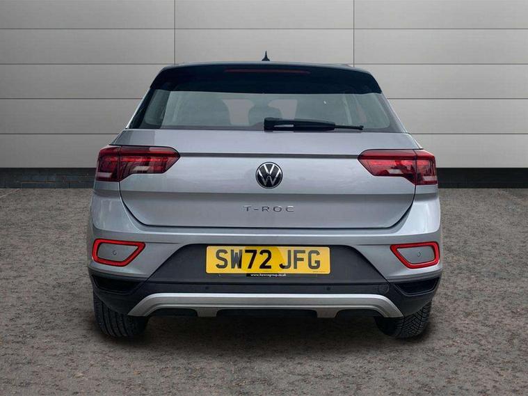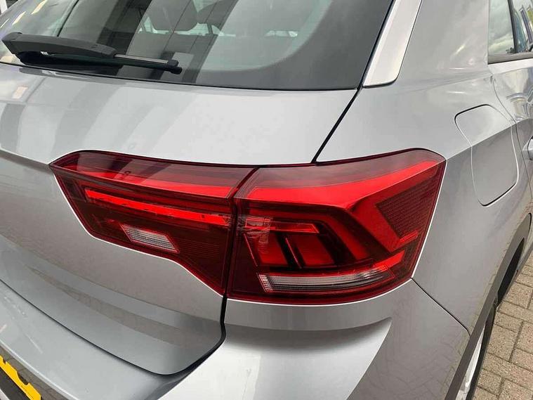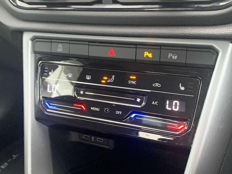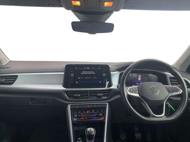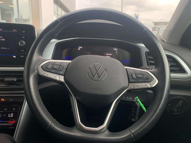 Bluetooth mobile phone interface, Driver alert system with fatigue detection, Driver tips and journey analysis, Emergency call service, Lane keeping system Lane Assist, Modified key software - reduce switch off time for key status change to Long no motion, Online services, Park assist including front and rear parking sensors, Power assisted speed sensitive steering, Service interval indicator, Tailgate/trunk lid release from outside, Think blue trainer driver tips and journey analysis, Warning sound and light for front seatbelts unfastened, Wireless app connect, Battery regeneration during braking, Front shock absorption, Rear shock absorption chassis with increased ride height, Start/stop function with battery regeneration, DAB Digital radio, Diversity antenna for FM reception, Front and rear 6 speakers, Music playback - MP3, WMA and AAC files, Premium USB cable in choice of either Apple or Android smartphone compatibility, SD card slot, Simultaneous pairing of 2 compatible mobile devices, Title and cover art display, We Connect and We Connect Plus functionality, 3rd brake light, Auto dimming interior rear view mirror, Automatic hazard lights activation under emergency braking, Automatic headlight control with LED separate daytime running lights with coming/leaving home function, Black roof rails, Body coloured bumpers and radiator grille with chrome trim and front fog lamps with chrome bezel, Body coloured exterior mirror housings and door handles, Extended roof spoiler, Exterior mirrors aspherical on driver side, convex on front passenger side, External USB type C socket and charging sockets, Front windscreen wiper with intermittent wipe and 4 position delay, Heated rear window, LED Headlights, LED rear combination lamps, LED rear number plate lights, LED tail lamp rear comination lamps, Power windows with comfort operation and circuit breaker, Rain sensor, Rear exhaust tailpipe, Rear fog light on one side and reversing lights on both sides, Rear side wing doors, Rear wash/wipe with intermittent wipe setting, Remote electrically foldable door mirrors, puddle lights and reverse activated passenger's door mirror, 12V power socket in centre console, 3 rear head restraints, 3 seat bench in 2nd row, 4 load lashing points in luggage compartment, Air care climatronic air conditoning system with active combination filter and 2-zone temperature control, Ambient lighting with mirror logo projection, Cloth upholstery, Door and side trim panel in cloth, Drawer under drivers seat, Driver/front passenger seat height adjustment, Front centre armrest, Front comfort sports seats, Front cupholders x 2, Front reading light, Instrument lighting, white adjustable panel illumination, Interior light delay, Isofix child seat preparation, Leather gearshift handle, Load-through provision with cup holder when folded down ('Unsplit rear seat bench, split folding backrest, with centre armrest), Luggage compartment lighting, Lumbar support for driver's and front passengers seat, Non-folding front passenger seat backrest, Single front passenger seat, Storage compartment in left and right luggage area, Storage compartment in rear doors, Storage compartments in driver and front passenger doors, Sunvisors with illuminated vanity mirrors, Variable boot floor, height adjustable and removable, Driver assistance pack without proactive passenger protection - T-Roc, 3 point height adj front seatbelts + pretensioners, 3 point seatbelts in outer rear with ECE label, ABS, Child locks on rear doors, Driver and front passenger airbag with front passenger airbag deactivation, Driver and front passenger safety-optimised head restraints, Drivers seatbelt reminder, Electronic parking brake, Electronic Stability Control (ESC) inc EDL (Electronic Differential Lock) and ASR (Traction Control), Front and rear passengers curtain airbag system including front side airbags, Front assist with city emergency braking and pedestrian monitoring, Front disc brakes, Front seat side impact airbags, Hill start assist, Predictive pedestrian protection, Rear disc brakes, Single tone horn, Tyre pressure loss indicator, Volkswagen roadside assistance, Alarm with interior protection, Anti-theft alarm system with interior monitoring, backup horn, and towing protection, Remote central locking with SAFELOCK, radio remote control with 2 remote control folding keys, Pewter matt decorative inserts for intrument panel, centre console and door panels at the front, Trims for alloy wheels,