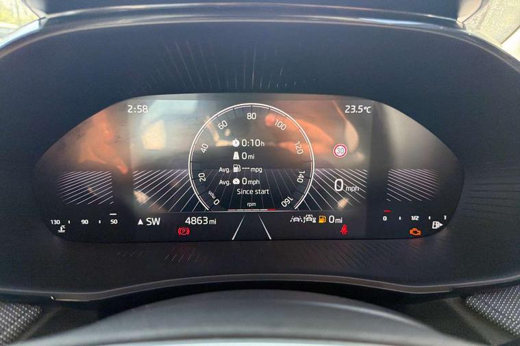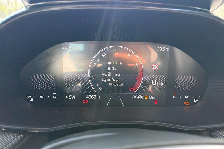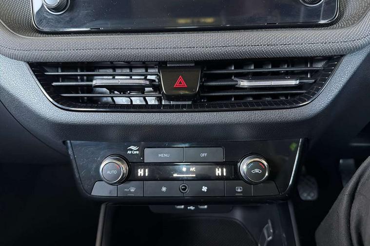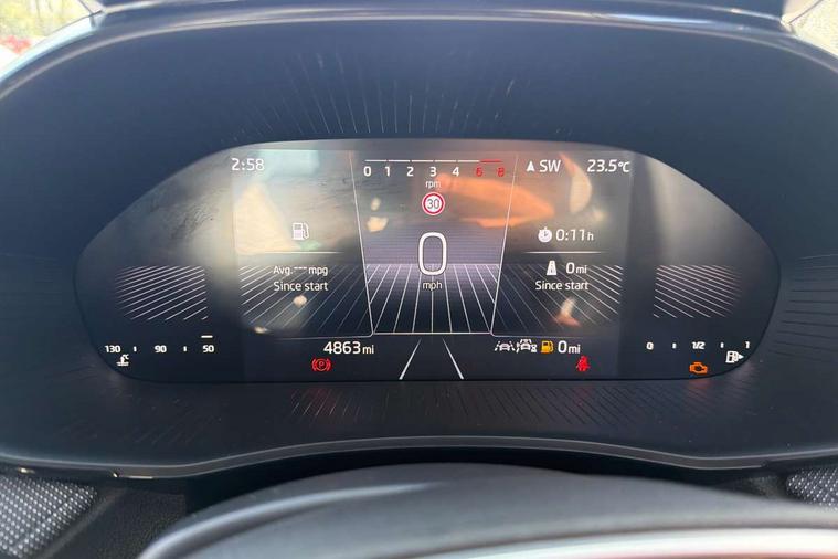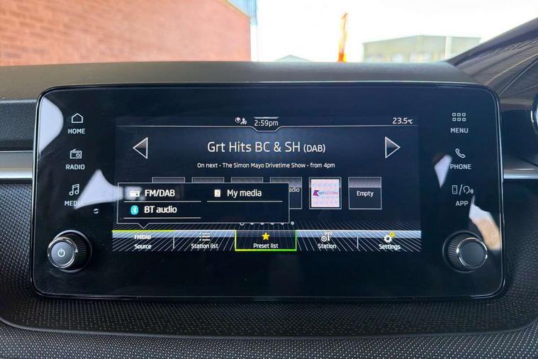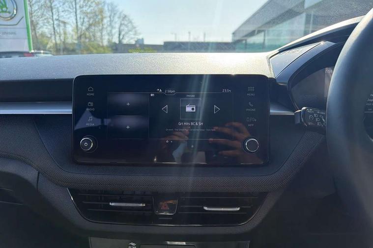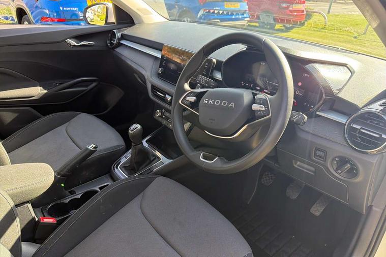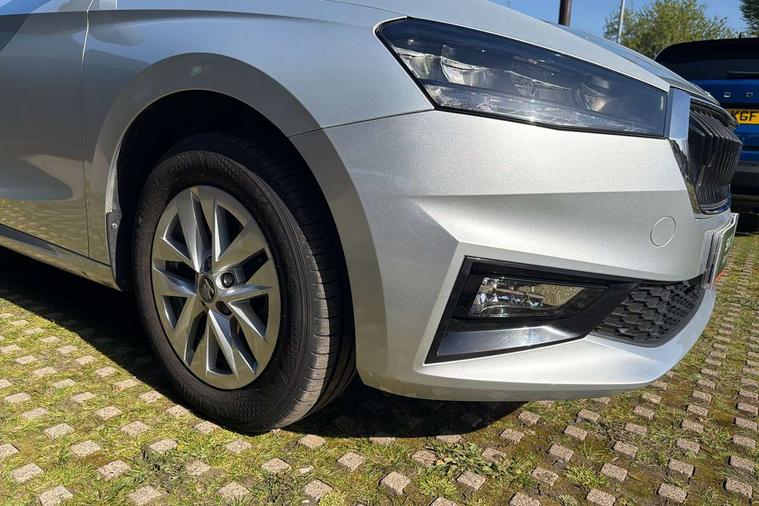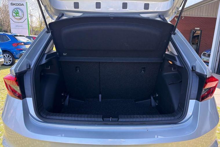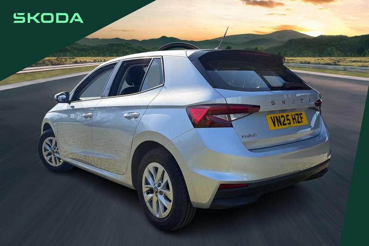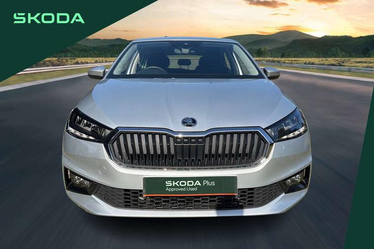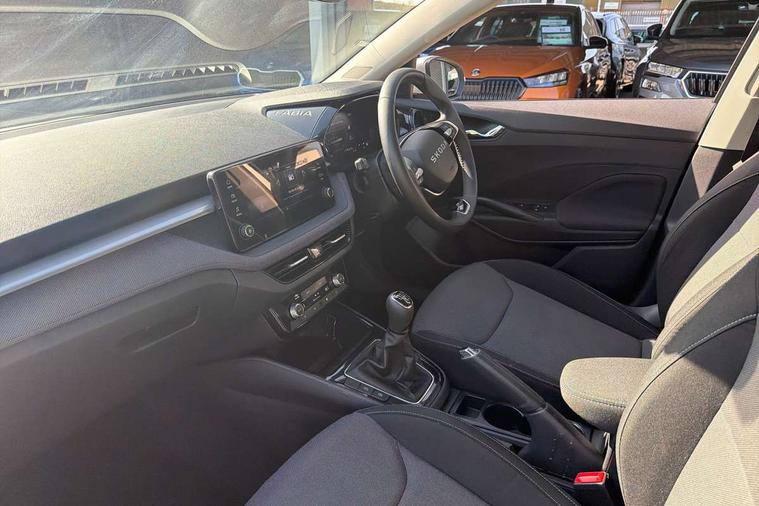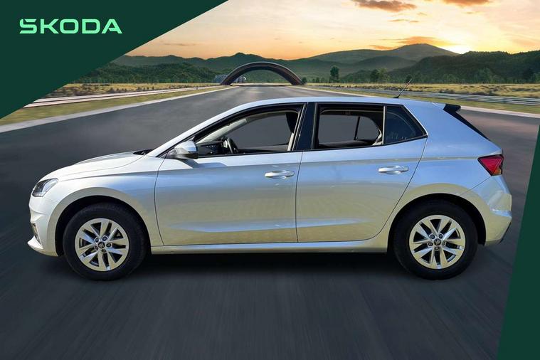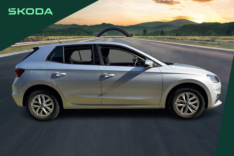 8" Digital instrument display, Advanced driver attention and drowsiness monitor, Bluetooth connection, Driver alert system, Electromechanical power steering, Exterior temperature gauge, Service interval indicator, Traffic sign recognition, Wireless SmartLink for Apple CarPlay and Android Auto, 6 Speakers (4 in front and 2 in rear), 8.25" Skoda infotainment touchscreen display, Auxiliary socket for external MP3 player, DAB digital radio reception, Auto dimming rear view mirror, Body colour door mirrors, Body coloured bumpers, Door mirror integrated indicators, Front and rear electric windows, Front window wiper intermittent control, Headlight range control - Automatic, Ice scraper in fuel cap, LED 3rd brake light, LED daytime running lights with coming and leaving home feature, LED rear lights, Rear LED fog light, Rear side wing doors, Rear window wiper with washing nozzles, Roof mounted spoiler, SKODA tailgate lettering in chrome, Unique dark chrome design logo on alloy wheels, 2 reading lights in front and 2 reading lights in rear, 3 rear headrests, Backrest split and folding, Central console with removable cup holder and storage box, Chrome handbrake release button, Dual zone air conditioning with climatronic electronic control, Fabric upholstery, Front centre armrest, Gearshift knob/handle in leather, Grain satin black interior door handles, Hand brake lever handle in leather, Height adjustable front headrests, Height adjustable front seats, Height adjustable steering wheel, ISOFIX and TopTether anchorage points to the outer rear seats, ISOFIX and TopTether on the front passenger seat, Luggage compartment lighting, Manually adjustable lumbar support in front seats, Pollen filter, Rear seat bench unsplit, Single front passenger seat, Skoda lettering on steering wheel, Storm grey headlining, Sun visors with mirror and airbag label on passenger side, Textile floor mats, Ticket holder, Umbrella in drivers door, Ambient lighting pack - Fabia Hatchback, 3-point height adjustable front seats belts with pretensioner and force limiter, Automatic warning lights in case of crash, Driver and passengers airbag with switch off function, e-Call+, ESC including ABS, MSR, ASR, EDS, HBA and XDS, Front and rear seat belt warning, FRONT ASSIST (AEB City and AEB Inter Urban), Front side airbags, Head airbags, One tone horn, Pedestrian protection, Three rear 3-points safety seat belts with pretensioner and force limiter including stop function for outer rear seat belts, Tyre pressure monitoring system, Anti-theft alarm system including immobiliser, interior monitoring, backup horn, and towing protection, Central locking with radio remote control, interior controls, SAFE function and 2 foldable keys, Black painted air vents, Grain satin black central console cover, Metallic grey upper decorative trim, Satin black door and side trim panel in front, Textile Kota grey lower decorative inserts, Anti-theft wheel bolts protection, Super-low rolling resistance tyres,
