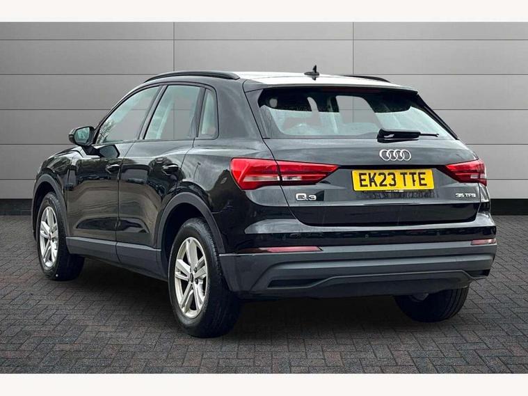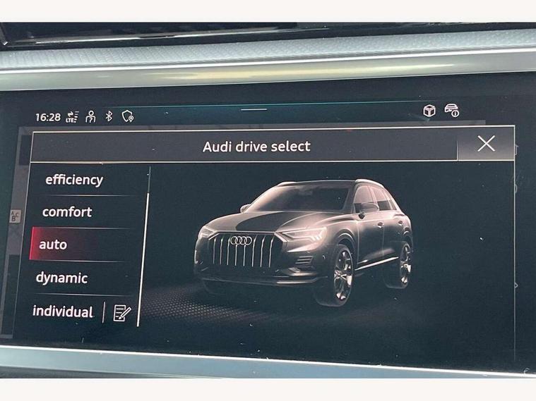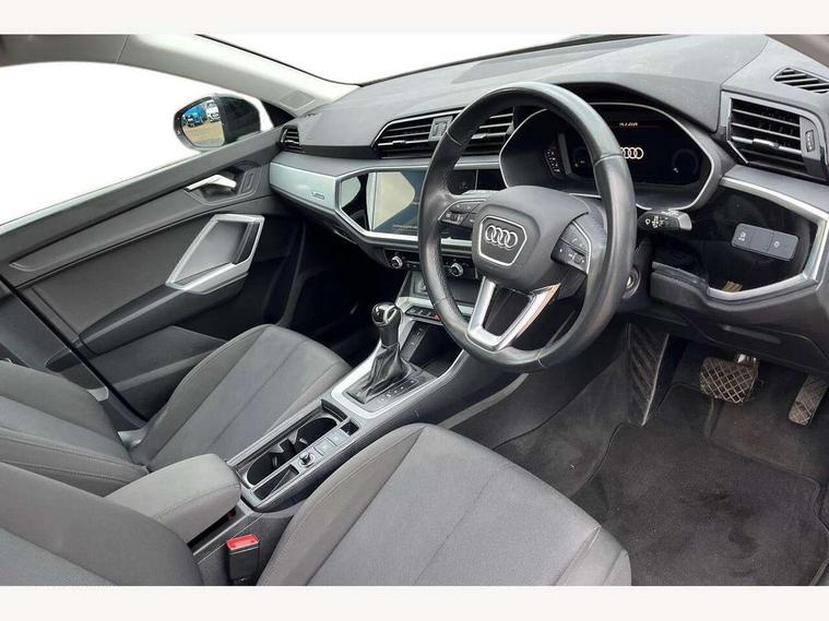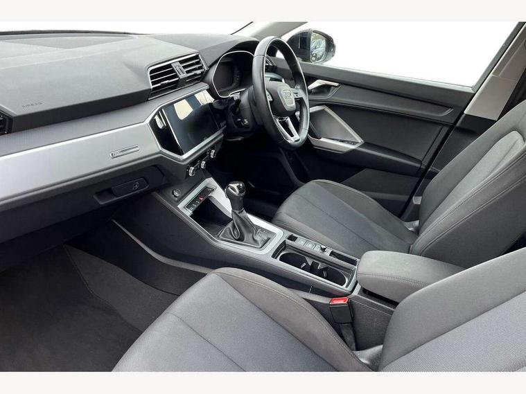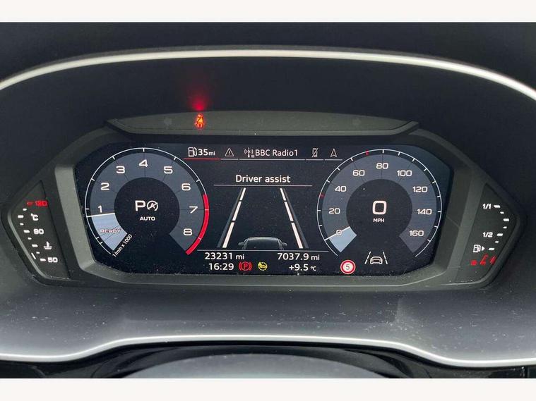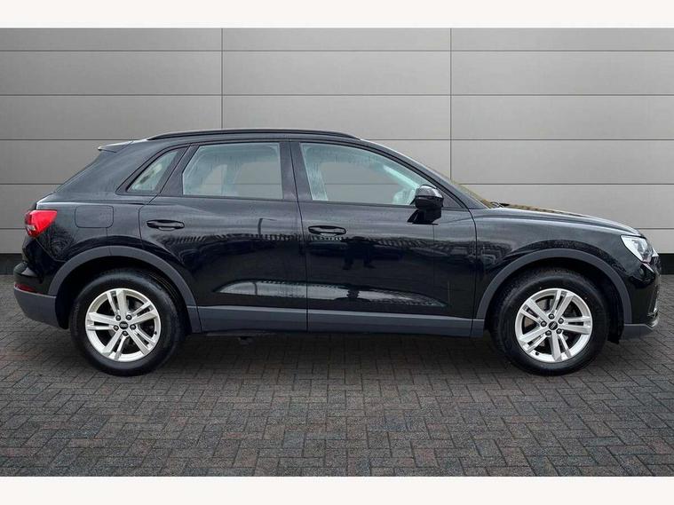 Amazon alexa Integration, Audi drive select, Audi lane departure warning, Audi Virtual Cockpit - 10.25" display, Bluetooth interface, Camera based traffic sign recognition, Legal emergency call, MMI Navigation Plus with high resolution 10.1 inch touchscreen colour display, Power operated tailgate, Progressive steering, Service interval indicator, Smartphone interface includes wireless Apple carplay/Android Auto, Start stop system with recuperation, Voice control system with natural language interaction, Standard suspension, 2 USB-C ports with charge and data functions, 6 passive loudspeakers, DAB digital radio module, Acoustic windscreen, Auto dimming frameless rear view mirror, Black roof rails, Body colour door mirrors, Diffuser in grained anthracite, Electrically folding, adjustable and heated door mirrors with integrated LED side indicators and kerb view function for passenger side, Exterior bumper with wheel arch trims and side sill trims in grained black matt, Front and rear electric windows, Grained radiator protective grille, Halogen rear lights, LED headlights with LED daytime running lights, Rain and light sensors, Rear side wing doors, Rear wiper, Third brake light, Variable front intermittent wipers, 12V socket in rear centre console, 3 seat bench in 2nd row, 3 spoke multi-function leather steering wheel, 40:20:40 folding with manual adjustment for 60:40 forwards/backwards position and backrest angle, Dual zone electronic climate control, Front and rear floor mats, Front and rear headrests, Front and rear roof module including reading lights, Front centre armrest, Glove compartment lighting, Height and reach adjustable steering wheel, ISOFIX child seat mounting for front passenger with airbag deactivation and outer rear seat including top tether attachment point for outer rear seats, Luggage compartment light, Lunar silver cloth headlining, Manual front seats with height adjustment, Single front passenger seat, Stainless steel luggage compartment sill finisher, Non smoking pack - Q3, 3x3 point rear seatbelts, 6 airbags - Driver, front passenger, curtain and side windows, Audi pre-sense front with pedestrain and cyclist recognition, Electrically operated child locks on rear doors, Electromechanical parking brake, Electronic stabilisation control including ABS, ASR and EDL, Front seatbelt reminder, Hill descent control, Hill hold assist, Pre sense basic, Seatbelt monitoring, Tyre pressure warning, Warning triangle and first aid kit, Anti theft alarm, Anti theft wheel bolts, Immobiliser, Remote central locking, Detail dashboard around MMI touch colour display in glass look, black with surround in aluminium look, Micrometallic silver inlay, 17" 5 twin spoke design alloy wheels,