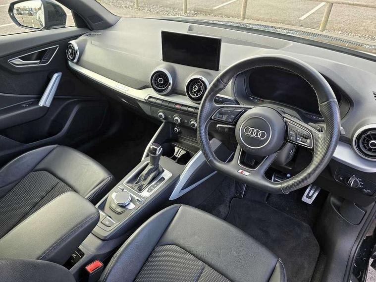 Audi connect navigation and infotainment includes innovative services, Audi connect remote and control connects your vehicle to your smartphone, Audi drive select - Power steering assistance + engine + gearshift, Audi drive select with efficiency, Audi smartphone interface, Audi virtual cockpit, Automatic start/stop system with recuperation, Bluetooth interface includes bluetooth audio streaming, Cruise control, E-call, MMI navigation plus with MMI touch, Power operated tailgate, Progressive steering, Rear parking sensors, 2 x SDXC card reader, 6 passive loudspeakers, DAB Digital radio, DVD Drive, Auto dimming rear view mirror, Black window trims, Bumper in full body colour paint finish, Electrically adjustable, folding, auto dimming and heated door mirrors with integrated LED side indicators, Front windscreen with grey tinted sunband, LED daytime running lights, LED headlights with LED rear lights, LED third brake light, Privacy glass - dark tinted rear and rear side windows from B-pillar backwards, Rear side wing doors, Rear wiper, Variable front intermittent wipers, Wheel arch trims in manhattan grey, 12V socket in front, 3 seat bench in 2nd row, 3 spoke flat bottomed multi-function leather sport steering wheel with gear shift paddles, 4-way electric lumbar support for front seats including seat height adjustment for both front seat, 60/40 split folding rear seat bench, Black cloth headlining, Front and rear head restraints, Front centre armrest, Front/rear floor mats, Height/reach adjust steering wheel, Illuminated door sill trims with S logo, Single front passenger seat, Stainless steel pedals, Black styling pack - Q2, 3x3 point rear seatbelts, 6 airbags - Front, curtain and front side airbags, Electromechanical parking brake, Electronic stabilisation control including ABS, ASR and EDL, Front passenger airbag deactivation, Hill hold assist, Pre-sense front with pedestrian recognition, Seatbelt monitoring, Tyre pressure warning light, Warning triangle and first aid kit, Anti theft alarm, Anti theft wheel bolts, Manual child locks, Remote central door locking, Aluminium interior element, Matt brushed aluminium trim inlays, Tool kit,