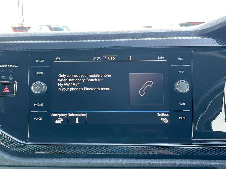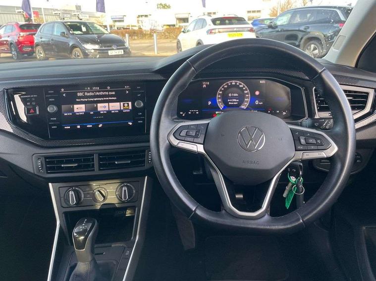 Advanced driver attention and drowsiness monitor, Bluetooth mobile phone interface, Dynamic road sign display, Emergency call service, Multifunction front facing camera for distance control, Park distance control, Power assisted speed sensitive steering, Predictive adaptive cruise control without follow-to-stop and speed limiter, Preparation for navigation system with media and internet package, Preparation for We connect and We connect plus, Rear view camera, Speedo and rev counter, electronic odometer, trip, service interval display and exterior temperature gauge, Standard rear axle, Travel Assist - Lane keeping system and traffic jam assist, Travel assist including emergency assist, Trip computer, Warning signal and warning light for front and rear seatbelts not fastened, Washer fluid level indicator, Wireless app connect, Front wheel drive, Rear shock absorpion, Start-stop system with battery regeneration (recuperation - energy recovery during braking), DAB Digital radio, Diversity antenna for FM reception, Front and rear 6 speakers, Automatic dimming interior rear view mirror, Automatic headlight control with LED separate daytime running lights with coming/leaving home function, Body colour bumpers with chrome inserts, Body colour door handles, Body colour door mirrors, Electric front windows, Engine badge deletion, Headlight range adjustment, Heat insulating and laminated safety glass windshield, LED Headlights, LED rear combination lamps, Power folding adjustable/heated exterior mirrors and front passenger exterior mirror lowering function, Rain sensor, Rear electric windows, Rear fog light, Rear side wing doors, Rear tinted glass from B-pillar backwards approx 65% tinted, Rear windscreen washer and wiper with interval delay, Third brake light, 12V power socket in centre console, 2 front and 2 rear reading lights with switch off delay and dimmer, 2 USB-C ports in the front, 2 USB-C charging sockets on the center console in the rear, 3 rear head restraints, 60/40 split folding rear seat and rear seat bench not split, Ceramique roof lining, Chrome plated radiator grille inserts, air vent surrounds and light switch surrounds, Door and side trim panel, Driver and front passenger seat height adjustment, Driver/passenger sunvisors with illuminated vanity mirrors, Front centre armrest, Front seat backrest storage pockets, Front standard seats, Handbrake lever handle in leather, Hartley/Thomas cloth upholstery, Headliner in recycled material, Isofix child seat preparation easy-fit (for two outer rear seats, and front passenger seat) compatible with I-size, Leather trimmed gear knob, Luggage compartment cover, Luggage compartment lighting, Removable luggage compartment floor, Single front passenger seat, Standard climatic zones, Standard pedal cluster, Three spoke leather wrapped multifunction steering wheel with shifting paddles, Light and vision pack - Polo, 3 point height adj front seatbelts + pretensioners, 3 point seat belt for centre rear seat, 3 point seatbelts, outer rear with ECE lable, ABS, Driver and front passenger airbag with front passenger airbag deactivation, Drivers and front passengers safety optimised head restraints, ESC (Electronic stability control) + EDL (Electronic Differntial lock) and ASR (Traction control), Extended and predictive pedestrian/ cyclist protection, Front assist with autonomous emergency braking (for Adaptive Cruise Control ACC up to 130 mph), Front curtain and side airbags with center airbag, Front disc brakes, Hill hold control, Manual child lock in rear doors, Rear drum brakes, Single tone horn, Tyre pressure loss indicator, Alarm with interior protection, Anti-theft alarm system with interior monitoring, backup horn, and towing protection, Anti-theft wheel bolts, Electronic engine immobiliser, Lava stone black gloss/matt decorative inserts in dash and front door panels, 16" Torsby alloy wheels, Low rolling resistance tyres,