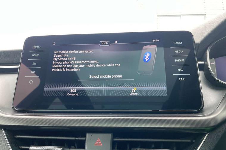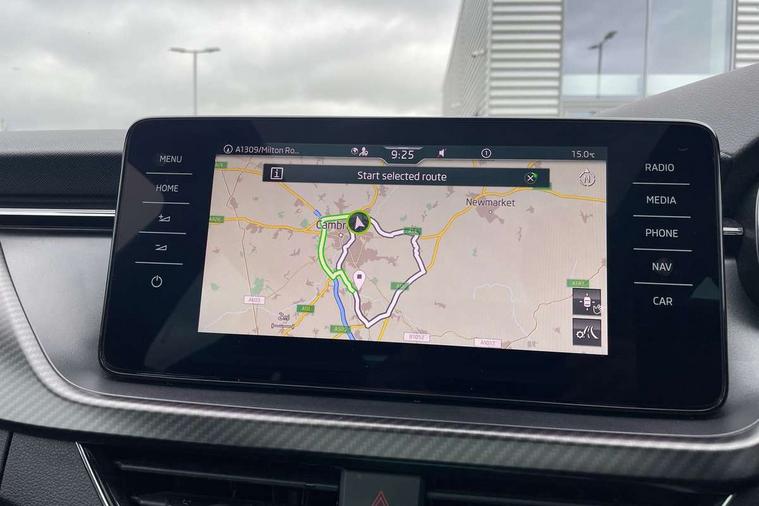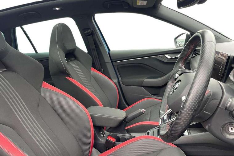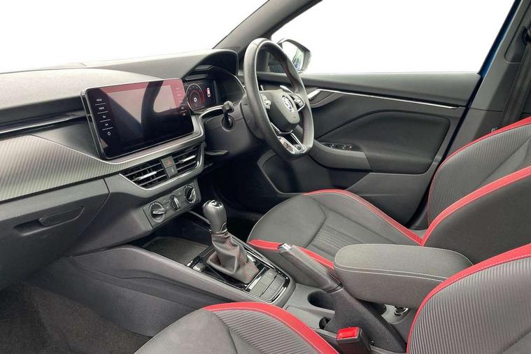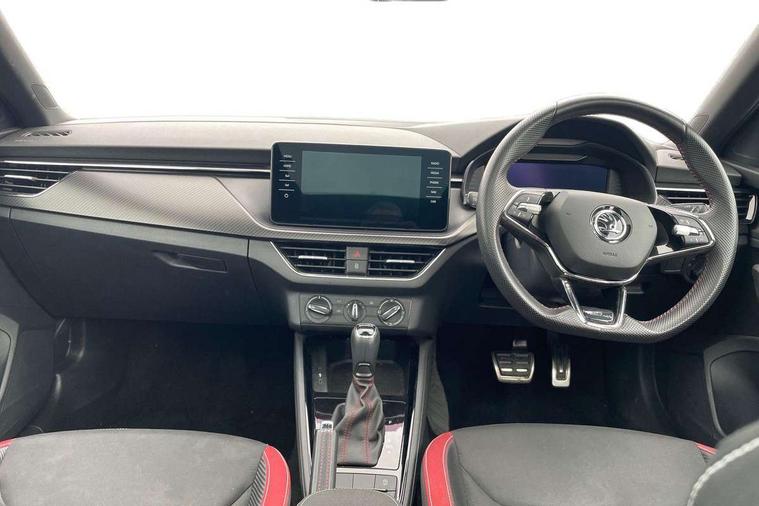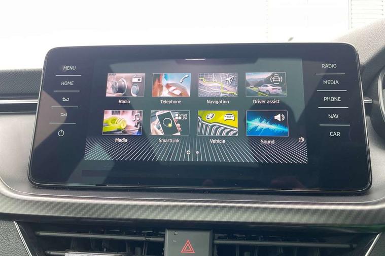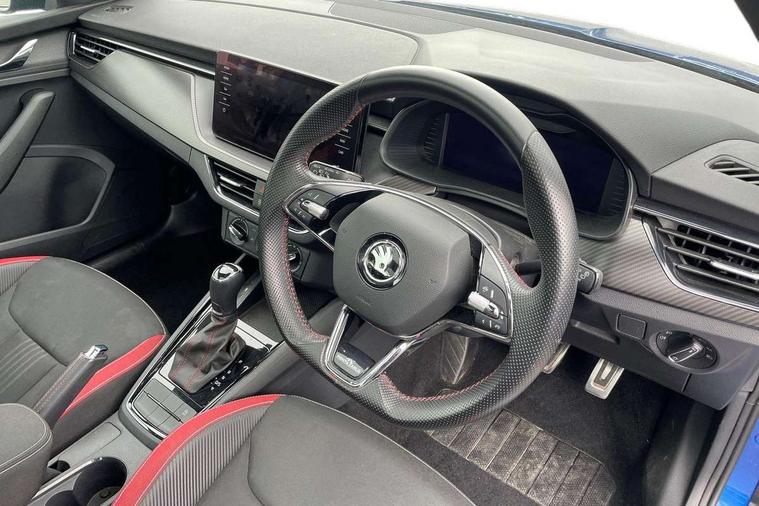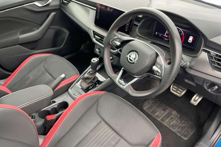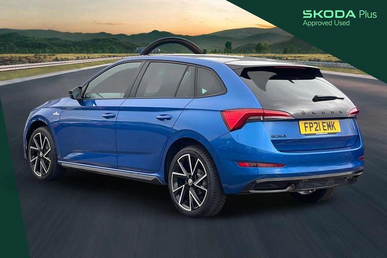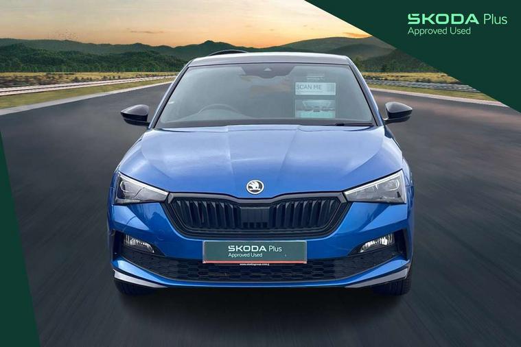 Amundsen satellite navigation with 9.2" glass colour touchscreen with virtual cockpit, web radio and traffic sign recognition, Bluetooth system, Easy light assist, Front assist system, Lane assist, Monte carlo instrument cluster, PAS, Rain and light assist with auto dimming rear view mirror, Speed limiter, 2 USB - C ports, 8 loudspeakers, DAB Digital radio, Black door mirrors, Black radiator grille, Black rear diffuser, Black roof spoiler, Black sill cover, Body colour door handles, Boot lettering in black, Electric folding door mirrors, Electrically adjustable and heated door mirrors, Front and rear electric windows, Front fog lights, Front sport bumper, LED daytime running lights, Monte carlo plaque, Privacy glass, Skoda across tailgate in black, Tinted windows, 12V Accessory socket in centre console, Aluminium pedals, Black roof lining, Chrome inner door handles, Cloth upholstery, Decor strip on dashboard and door panel, Door sills with lettering, Front centre armrest with stitching, Front gesture control, Front head restraints, Front sport seats, Glasses storage in roof liner, Height adjustable passenger seat, ISOFIX for rear passenger seat, Leather gearknob and handbrake lever, Manual lumbar support for front seats, Reading lights for driver and front passenger, Sun visor with make up mirror for front passenger, Textile floor mats, Third rear headrest, Umbrella, Exterior design pack - Scala, 3x3 point rear seatbelts, Curtain airbags, Emergency call and proactive services, Front head and side airbags, Hill hold control, One tone horn, Passenger airbag switch off function, Seat belt reminder for all seats, Alarm, Anti-theft wheel bolts, Remote central locking with 2 remote folding keys, SAFE function for remote central locking, Chrome air vent surrounds, 18" Vega alloy wheels in black, Temporary space saver wheel,