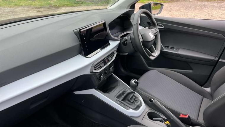 'Lights On' Reminder warning buzzer, 8" Digital cockpit, Cruise control and speed limiter, Digital clock, E-call, Electric speed sensitive power steering, Full link smartphone integration with mirror link, wireless apple carplay, Google android auto + USB Type C cable for apple and android devices, Lane keeping system, Low fuel warning light, Outside temperature display, RPM counter, Trip computer, Wireless phone charger, 9.2" colour touchscreen with navigation system, voice control and USB port (type c), Bluetooth interface for hands free and audio streaming, DAB digital radio and AM/FM radio, Steering wheel mounted audio controls, Anti theft roof antenna, Automatic activation of hazard warning lights, Black roof rails and window surrounds, Body coloured bumpers, Body coloured door handle inserts, Body coloured door mirrors, Dimming rear view mirror, ECO LED automatic headlights and LED daytime running lights, Electric adjustable door mirrors, Electric front/rear windows, Hidden exhaust pipe, LED rear tail lights and licence plate lights, Licence plate lights, Protective side mouldings, Rain sensing wipers, Rear fog lights, Rear side wing doors, Rear spoiler, Rear window wash/wipe, Third brake light, Visible VIN plate, 2 cupholders, 3 seat bench in 2nd row, 60/40 split folding rear seat, Air conditioning, Cloth upholstery, Double boot floor, Driver sunvisor with covered mirror + card holder, Dust/pollen filter, Gear shift indicator, Grey interior air vents, Grey interior roof, Height adjustable front seats, Height/reach adjustable steering column, Illuminated boot, Instrument lighting with brightness control, ISOFIX points in outer rear seats with top tether anchorage points, Leather steering wheel/gear knob/handbrake, Passenger sunvisor with vanity mirror, Potentiometer, Single front passenger seat, Two front and three rear height adjustable headrests, Interior chrome pack - Arona, Safe and driving pack (S) - Arona, 3 point seatbelts on all rear seats, ABS, Active front headrests, Child locks on rear doors, Driver and front passenger airbags with front passenger airbag de activation, front side and curtain airbags, Emergency Brake Assist (EBA) and front assist, Forward collision warning and autonomous emergency braking, Front and rear seatbelt reminder, Hill hold control, Multi-Collision braking, Tiredness recognition system, Traction control, Tyre pressure monitoring system, Deadlock, Electronic engine immobiliser, Locking wheel bolts, Remote central locking, Titan black dashboard, 17" Dynamic machined alloy wheels,